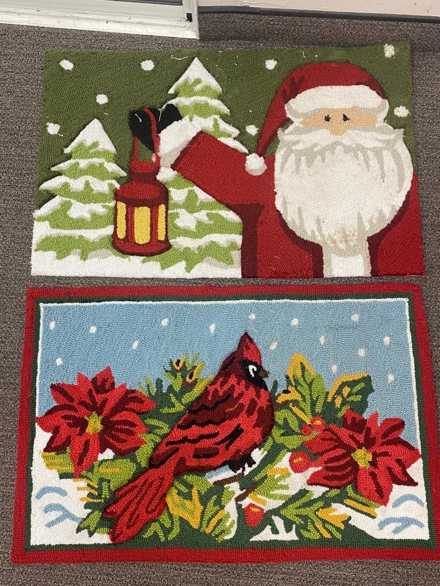 Pair of holiday door mats. Both are in good condition, lightly used, do not look to have stains or spots.