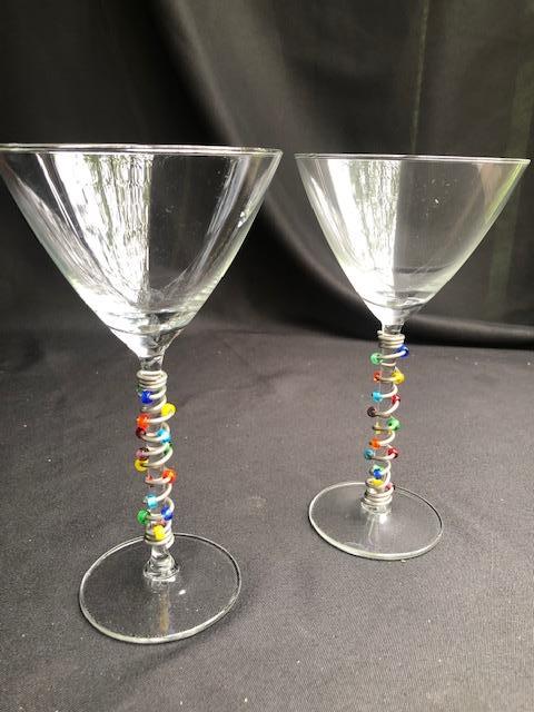 Pair of Wire and Bead Decorated Martini Glasses.