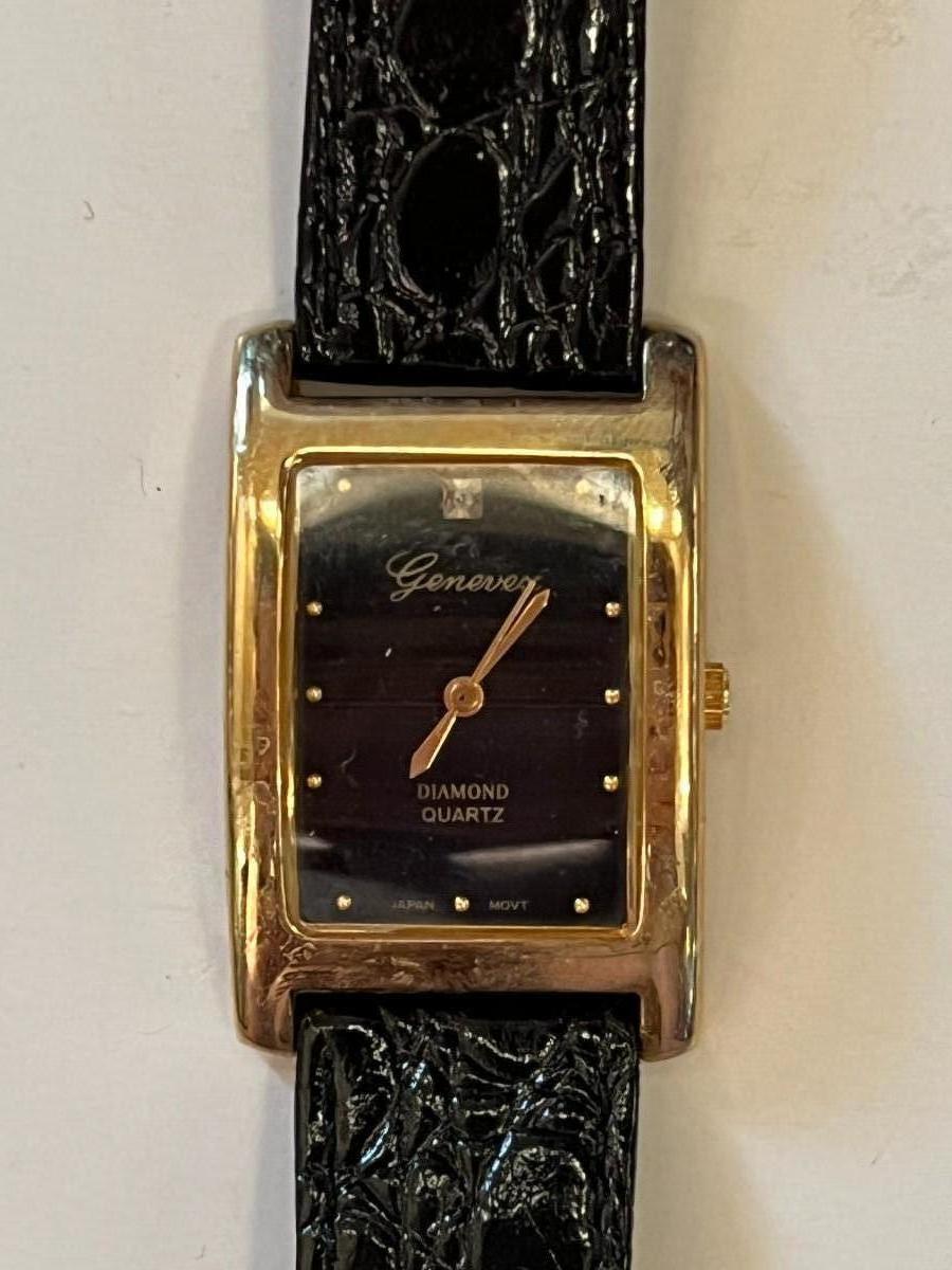 Leather banded Geneva Diamond Quartz vintage watch. Needs new batteries.