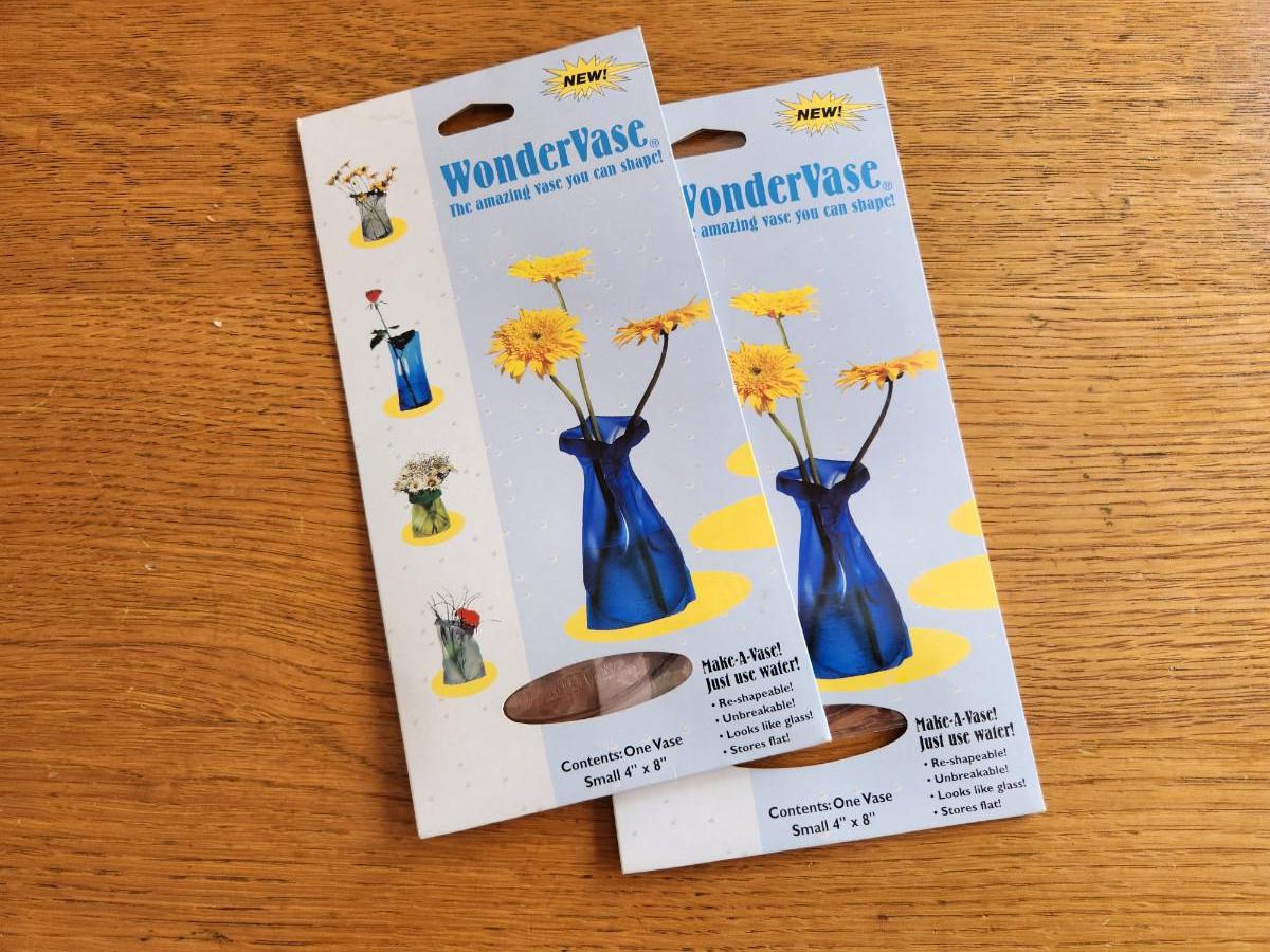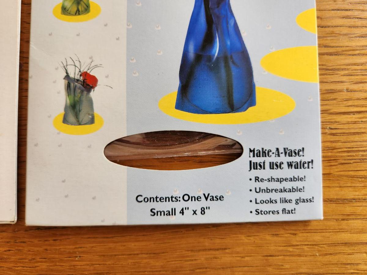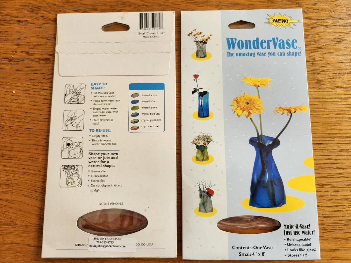 This auction lot is for a most unusual Pair of WonderVase. These totally collapsible vases are really different. These are new in the folder and have not been used. They are clear colored and just ready for a big bunch of posies or a single daisy - your choice.