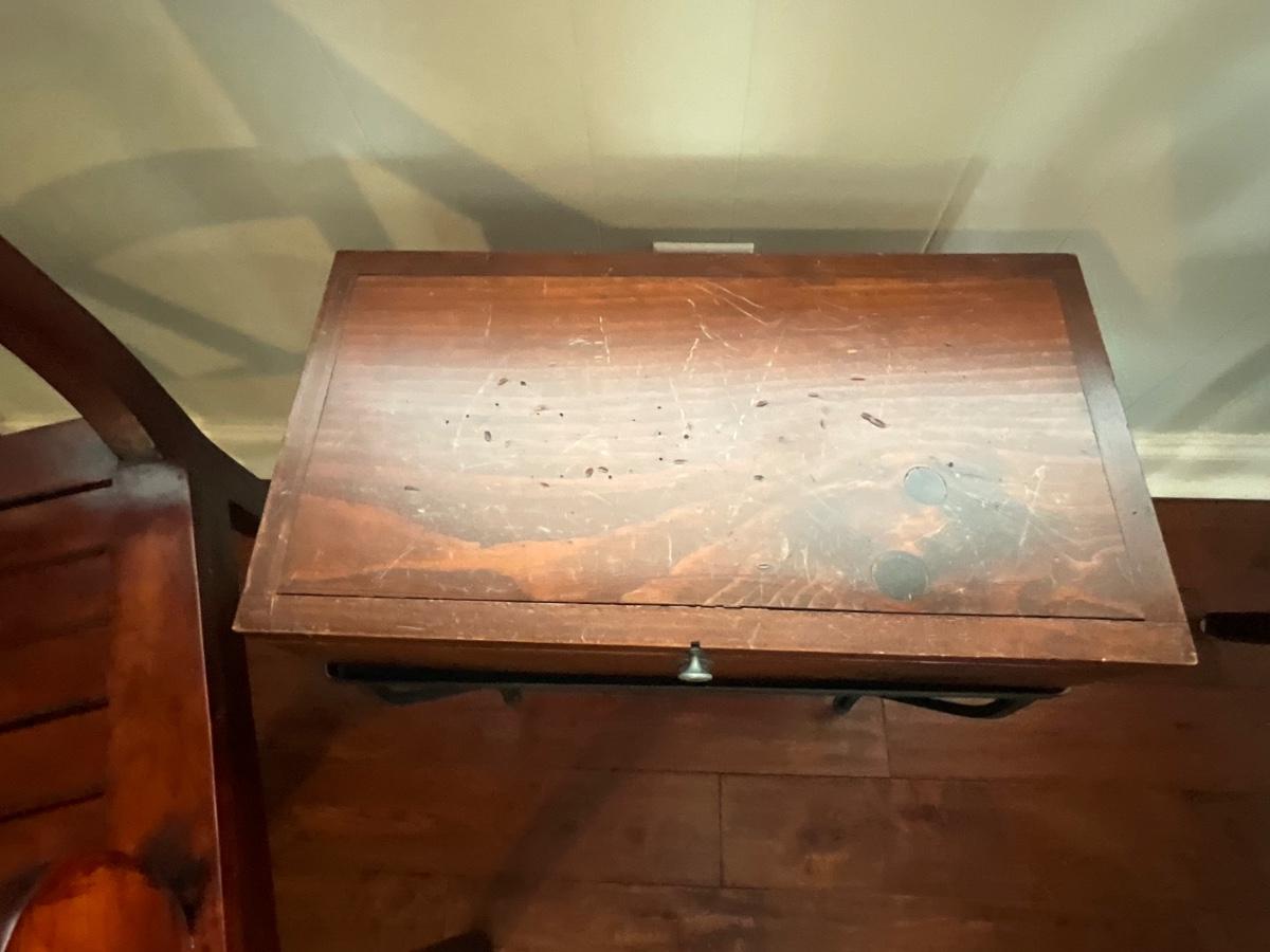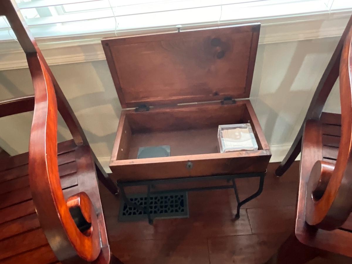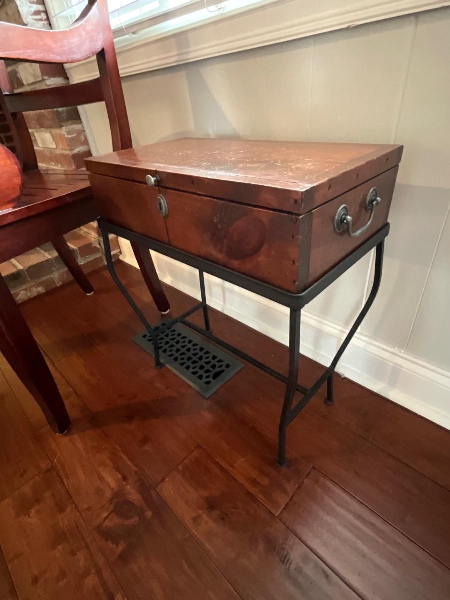 Side table storage box is 18 inches wide 9.5 inches deep 21 inches tall