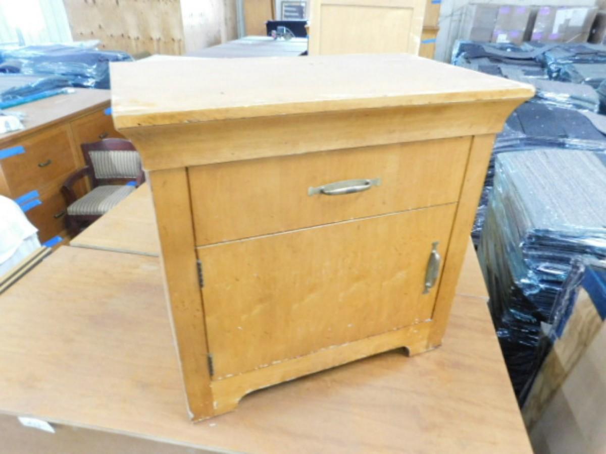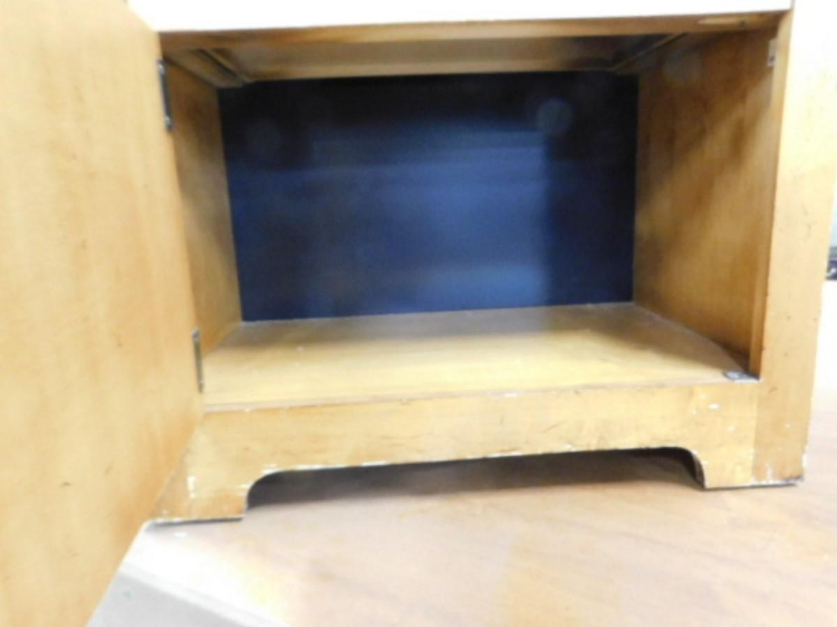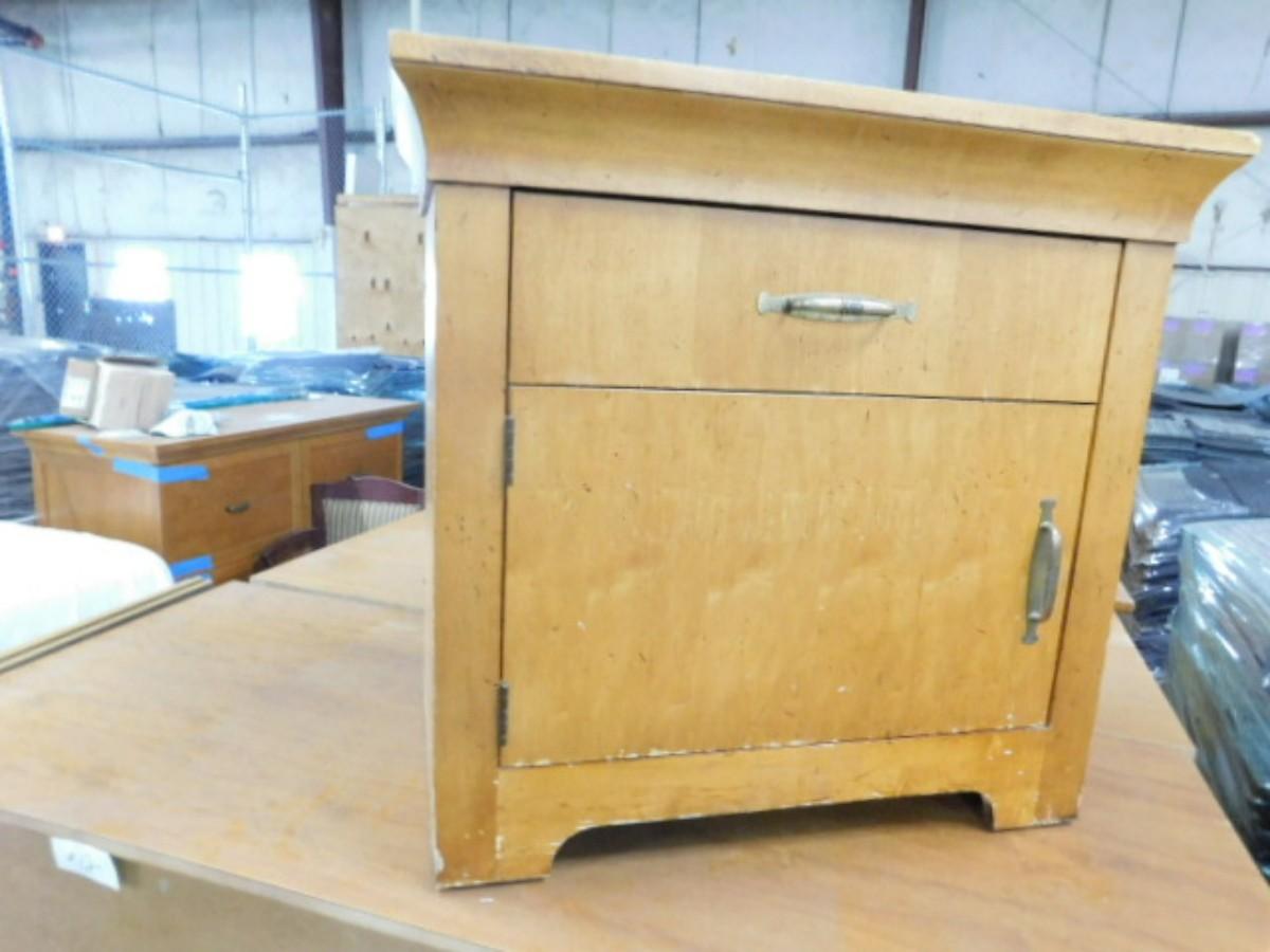 Pair of Wood Finish Bedside Tables with Drawer and Left-Hand Door Choice A expect wear and scratches to the finish