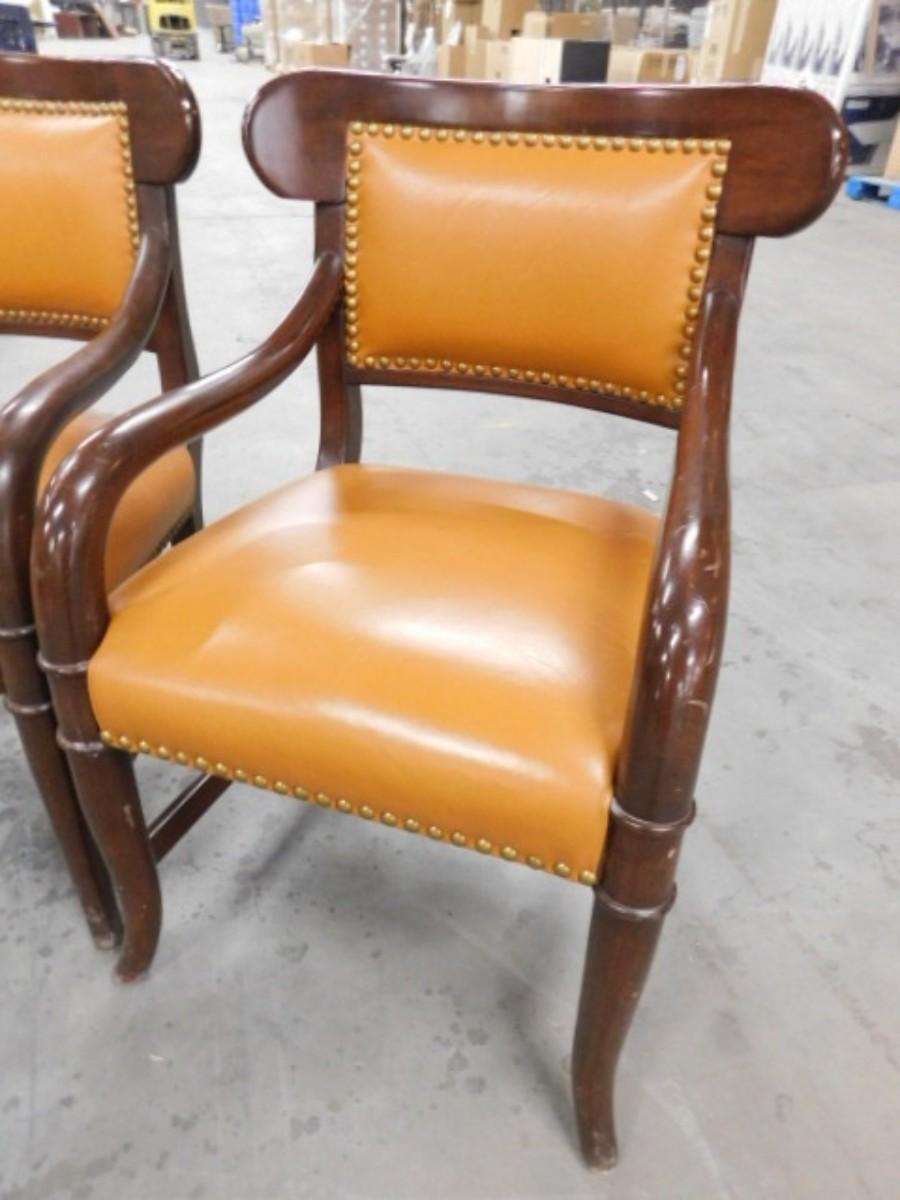 Pair of Wood Frame Chairs with Leather Cushion and Brass Tack Accents Set #3