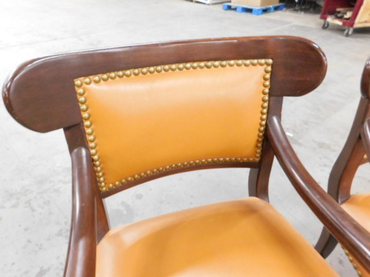 Pair of Wood Frame Chairs with Leather Cushion and Brass Tack Accents Set #4