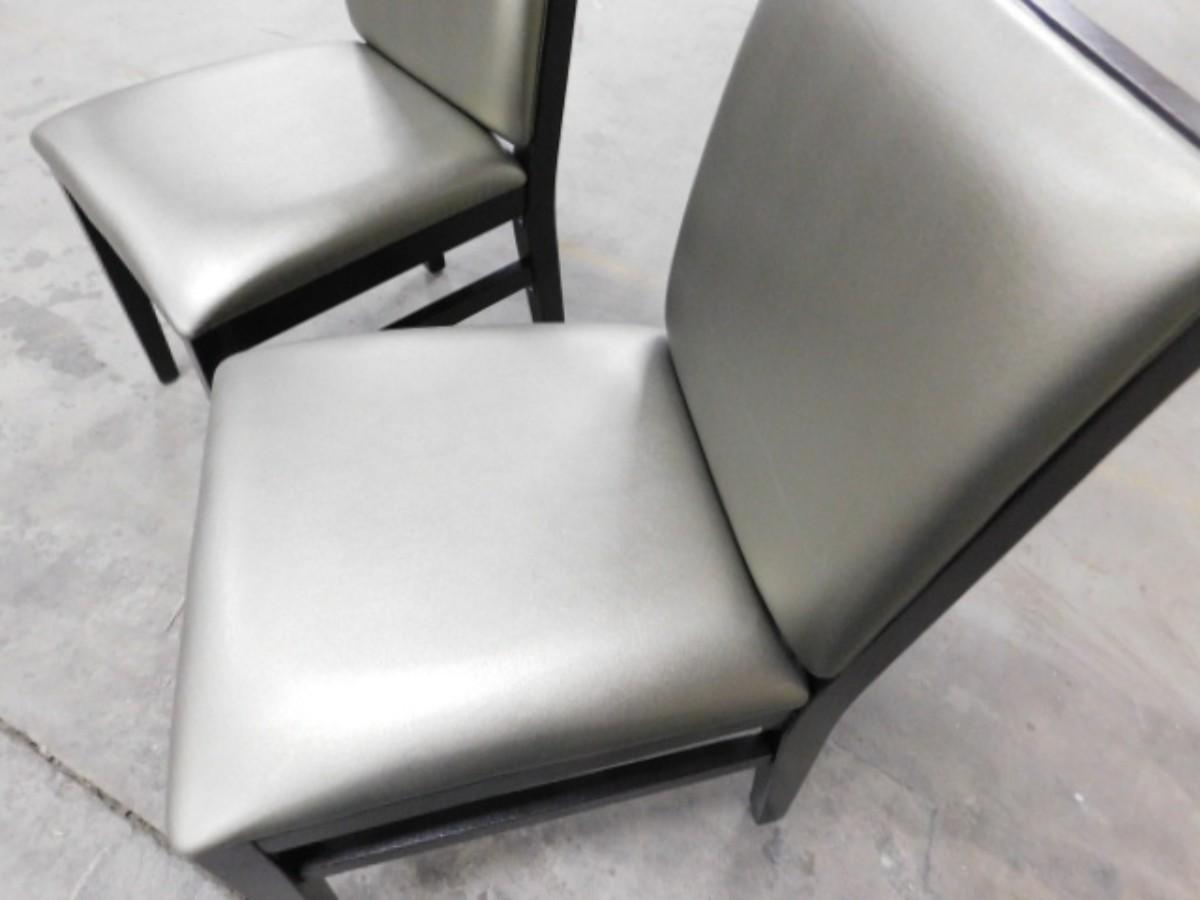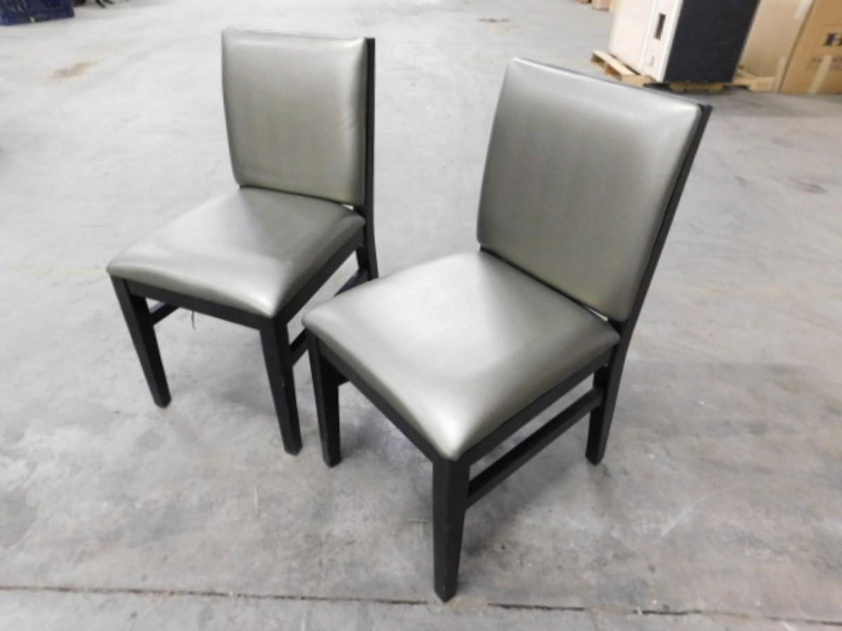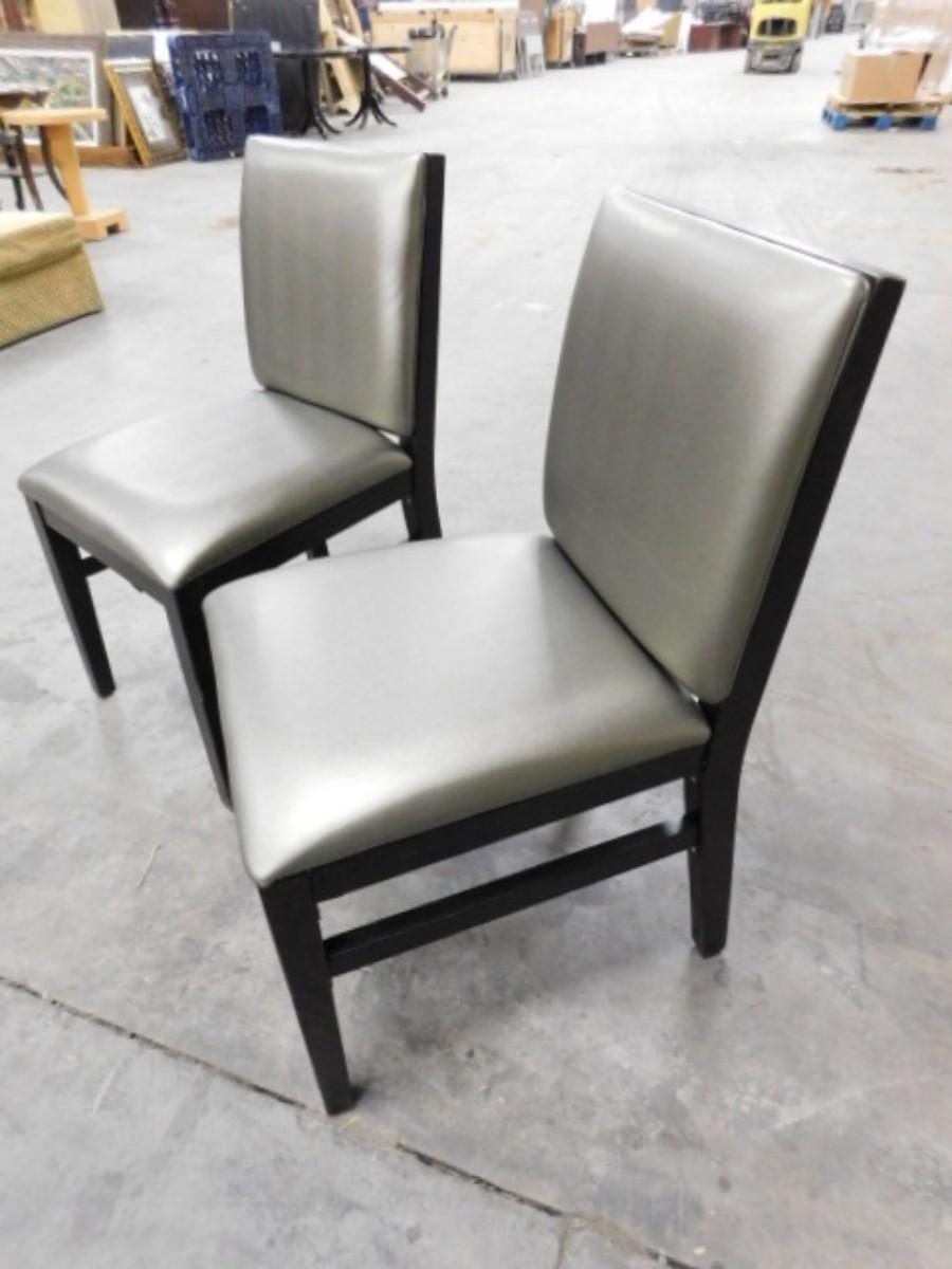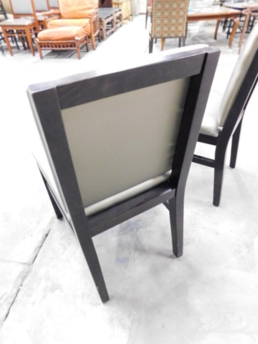Pair of Wood Frame Cushioned Contemporary Casual Chairs. Legs have worn finish in some spots. Expect some wear or scratches to the finish. Shipping option available via freight or local mover at Buyer's expense. Buyer must have all shipping scheduled within the stated dates and times of pickup. Recommended local mover is Beaty Bros. Moving 828-201-2982