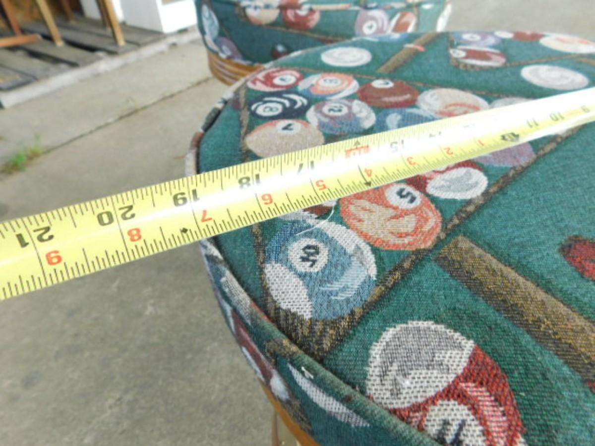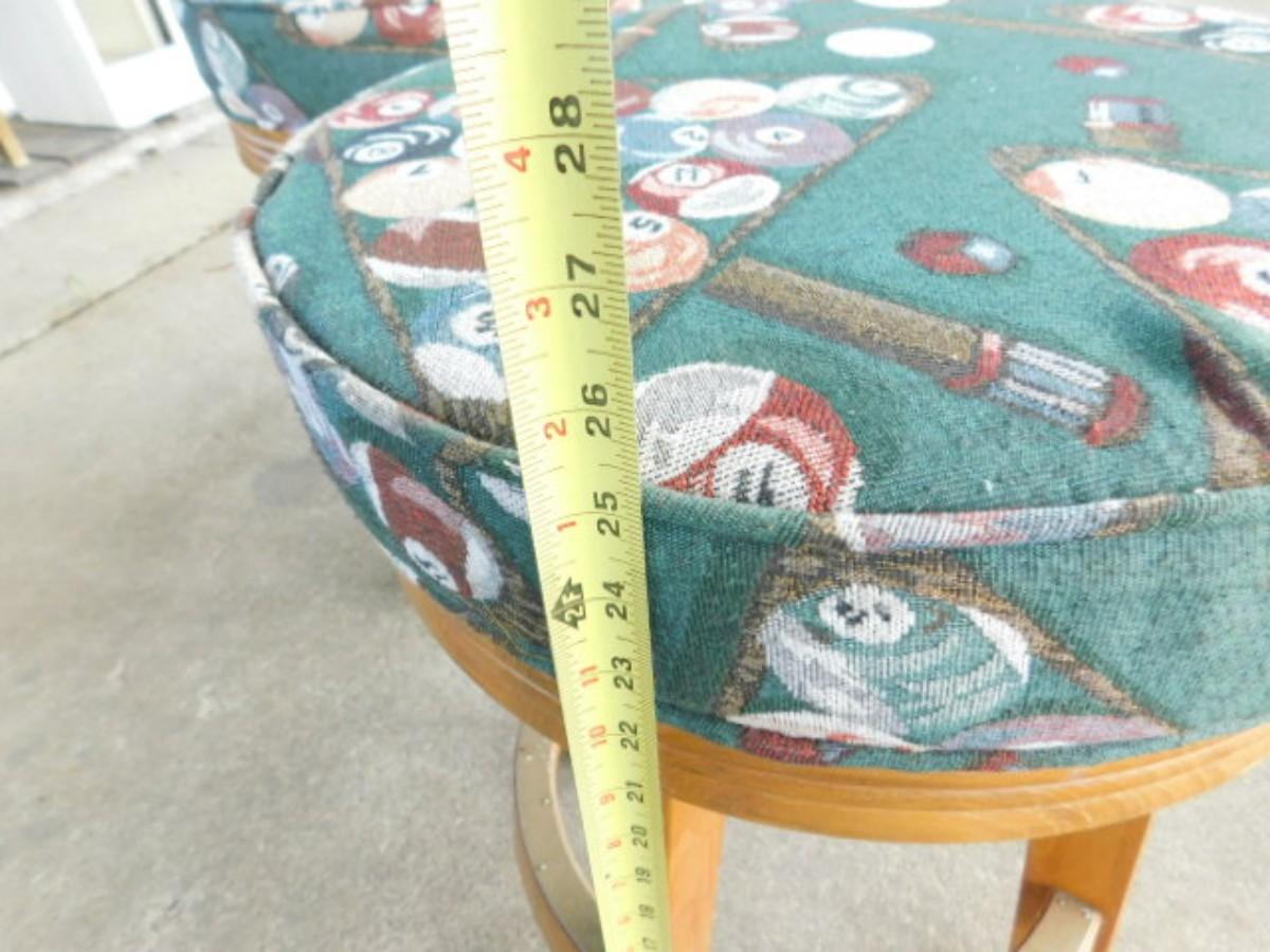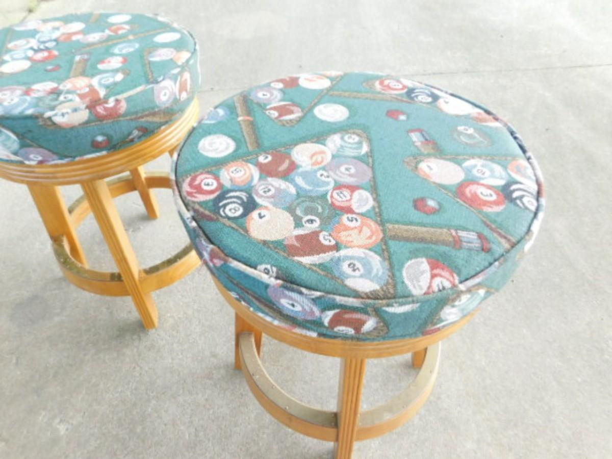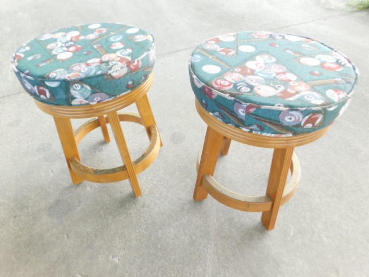 Pair of Wood Frame Stools with Cushioned Billiard Themed Seats