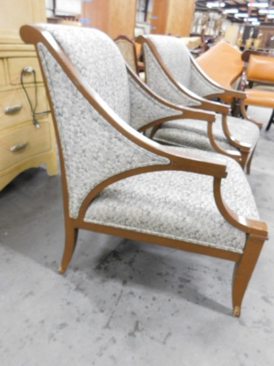 Pair of Wood Frame Upholstered Back and Seat French Country Farmhouse Chairs Set #1 of 2 expect some wear or scratches to the finish. Shipping option available via freight or local mover at Buyer's expense. Buyer must have all shipping scheduled within the stated dates and times of pickup. Recommended local mover is Beaty Bros. Moving 828-201-2982