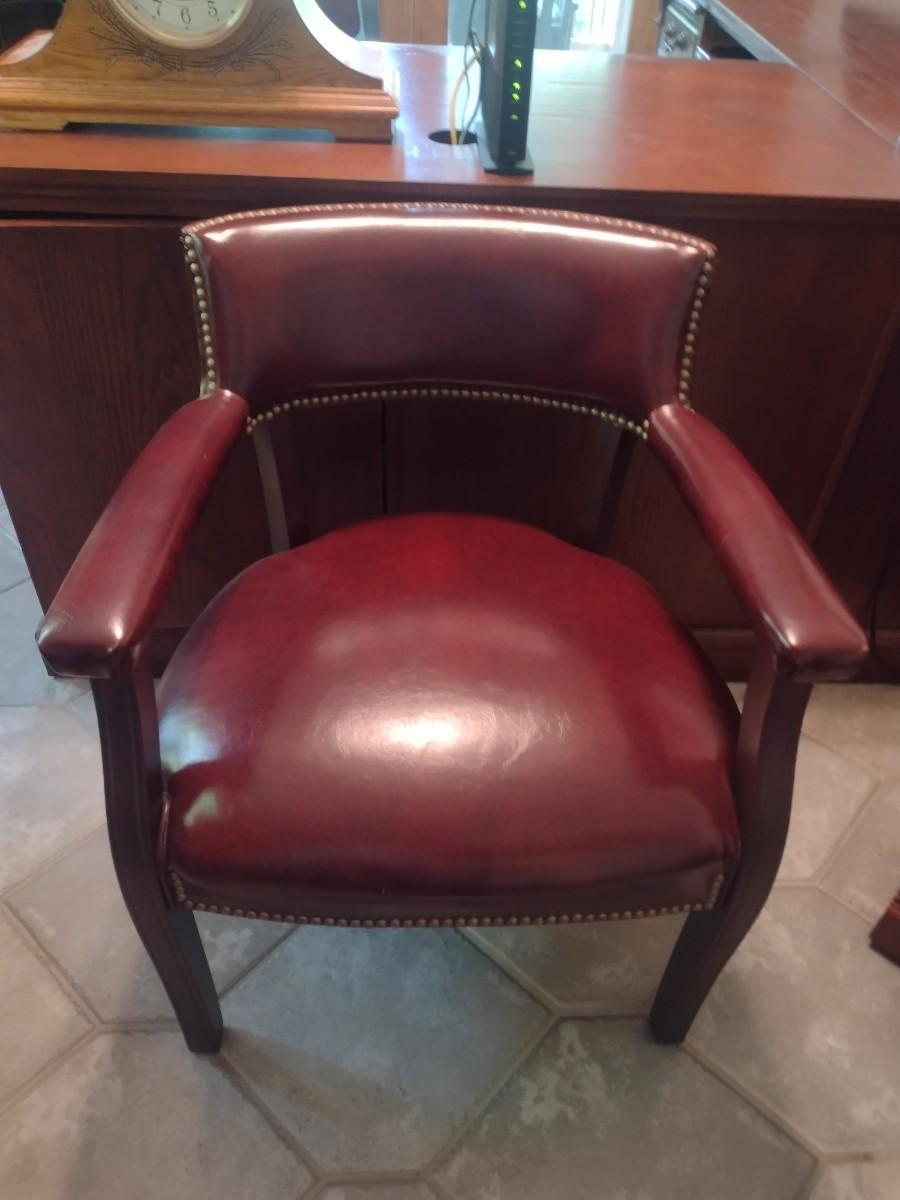 Pair of Wood Framed Faux Leather with Brass Tack Sitting Chairs Choice B