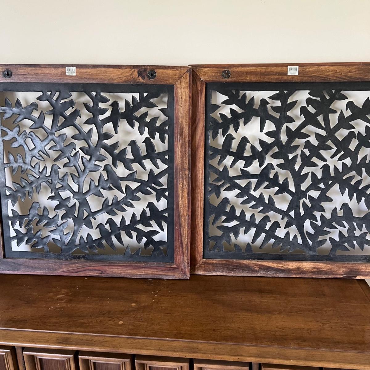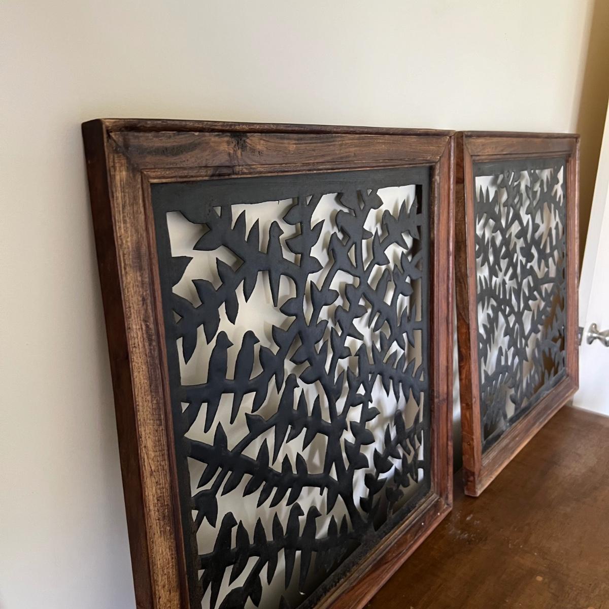 Pair of Wood Framed Metal Wall Art - Three Hands Corp (P-RG)