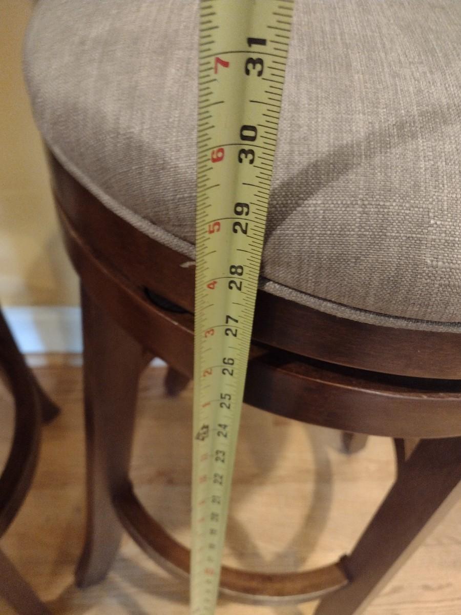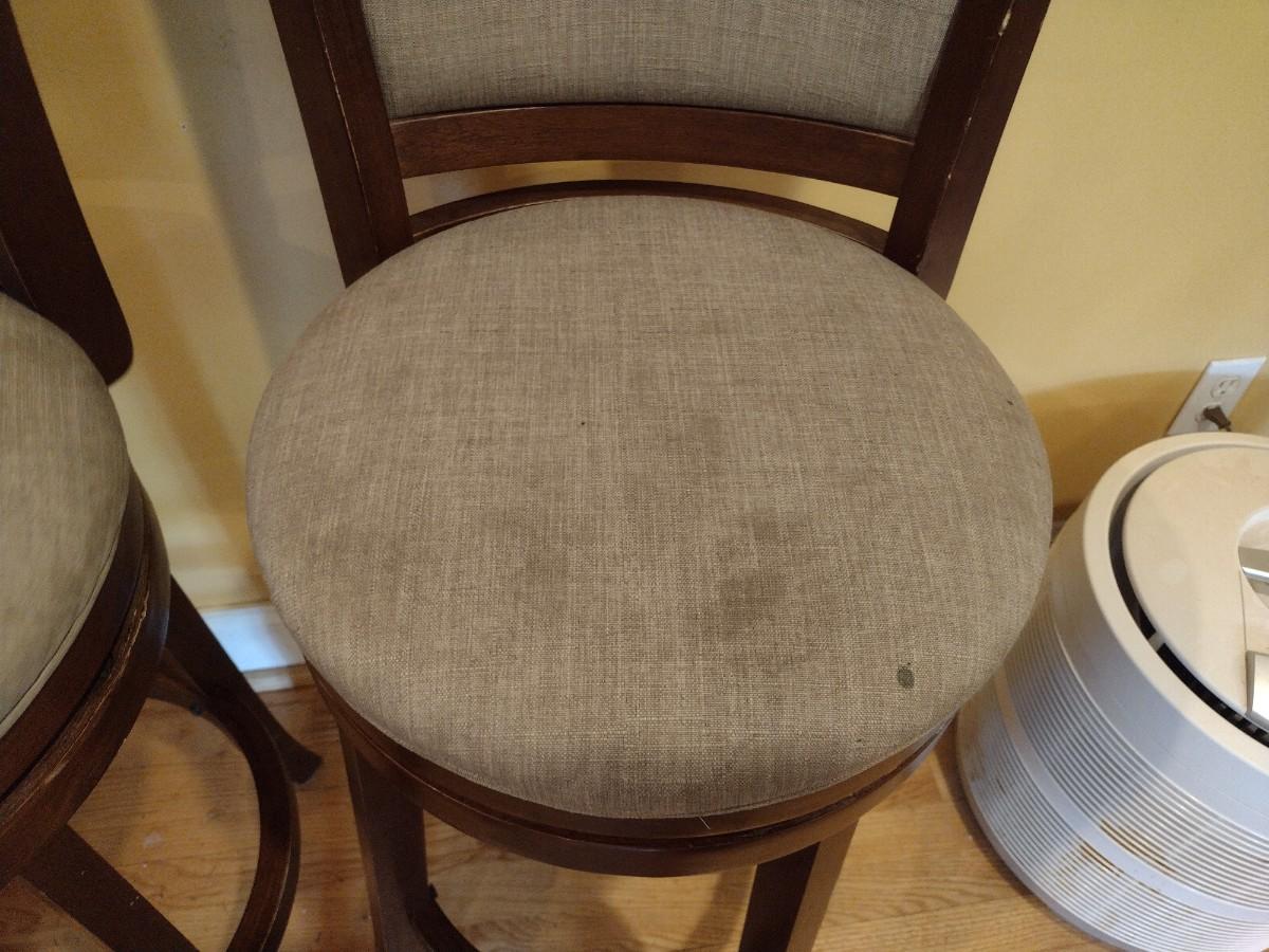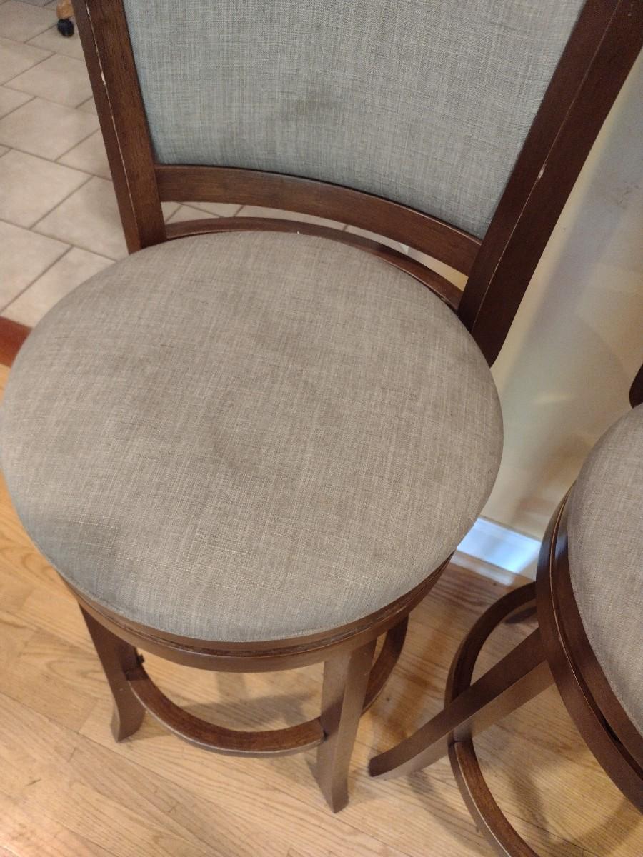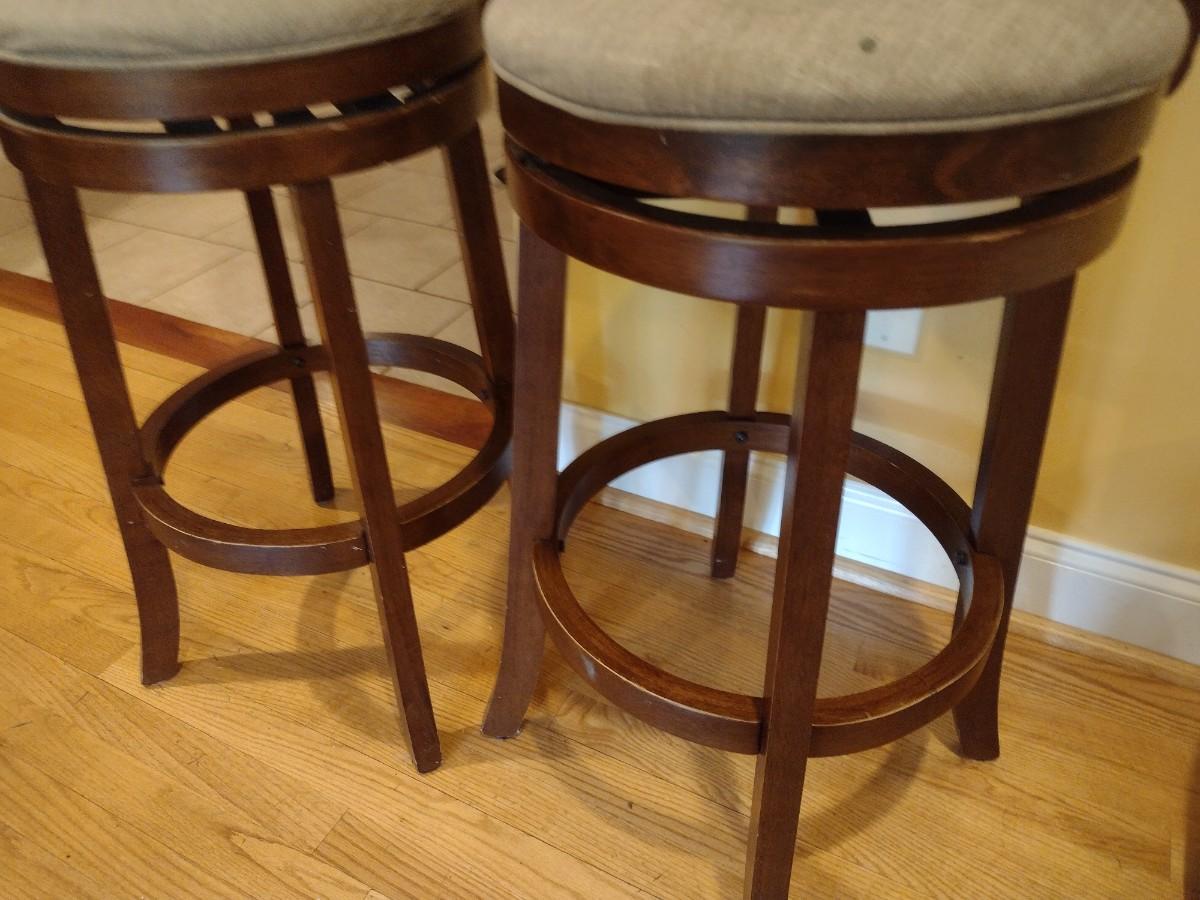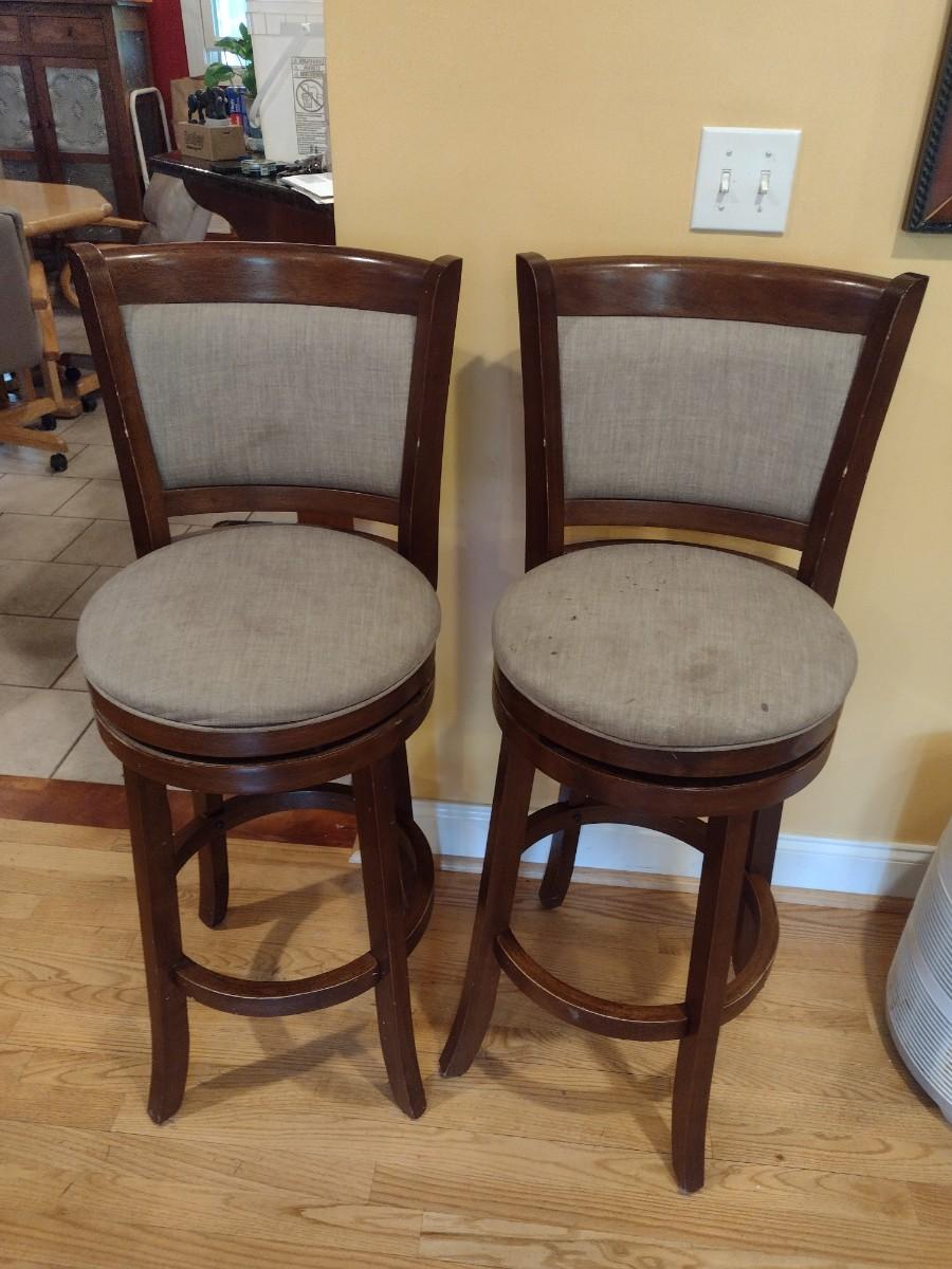 Pair of Wood Framed Swivel Bar Stools with Back. Will need to be cleaned