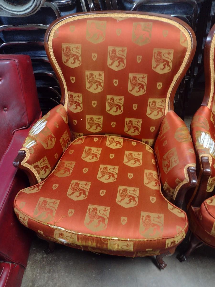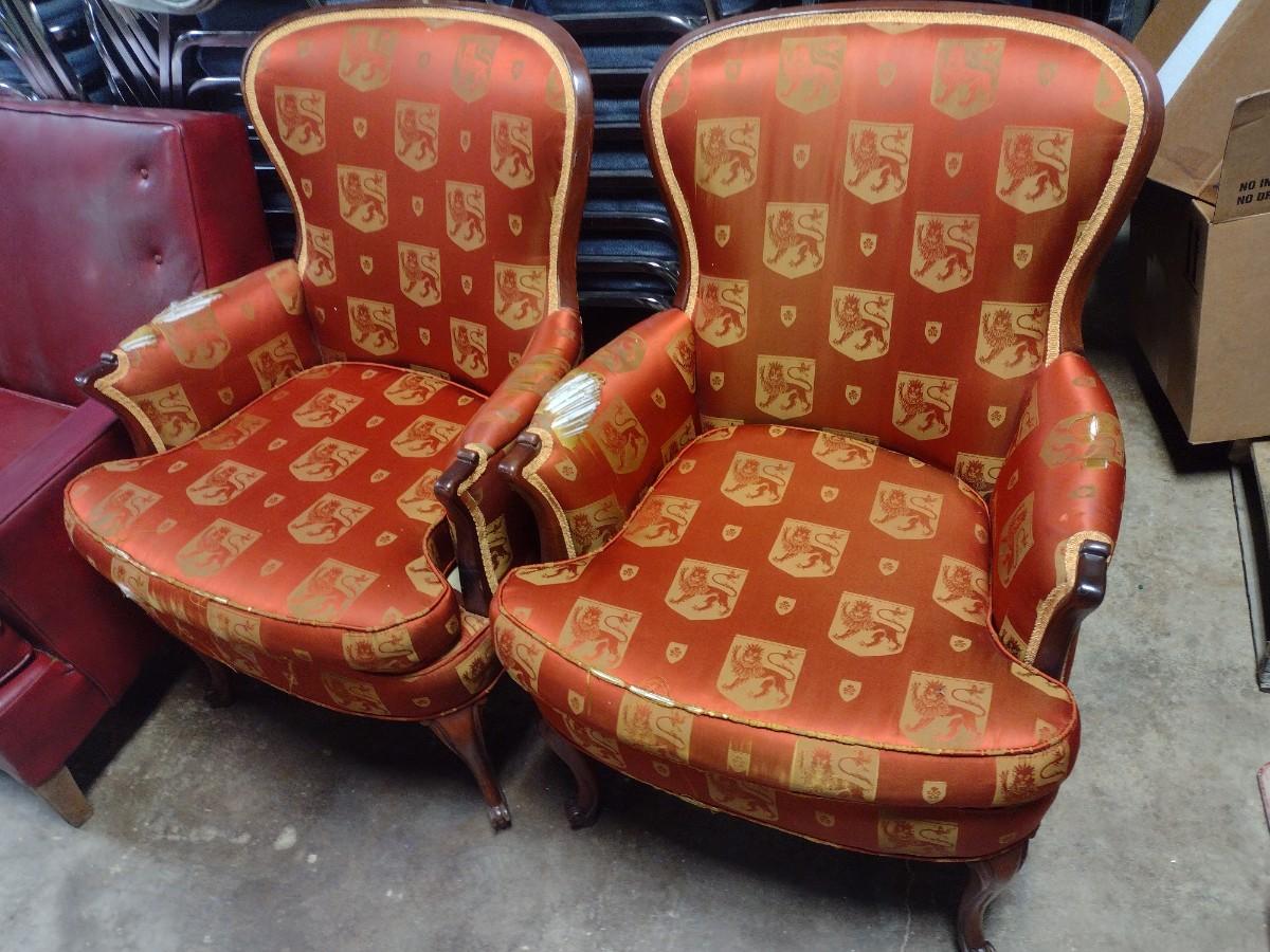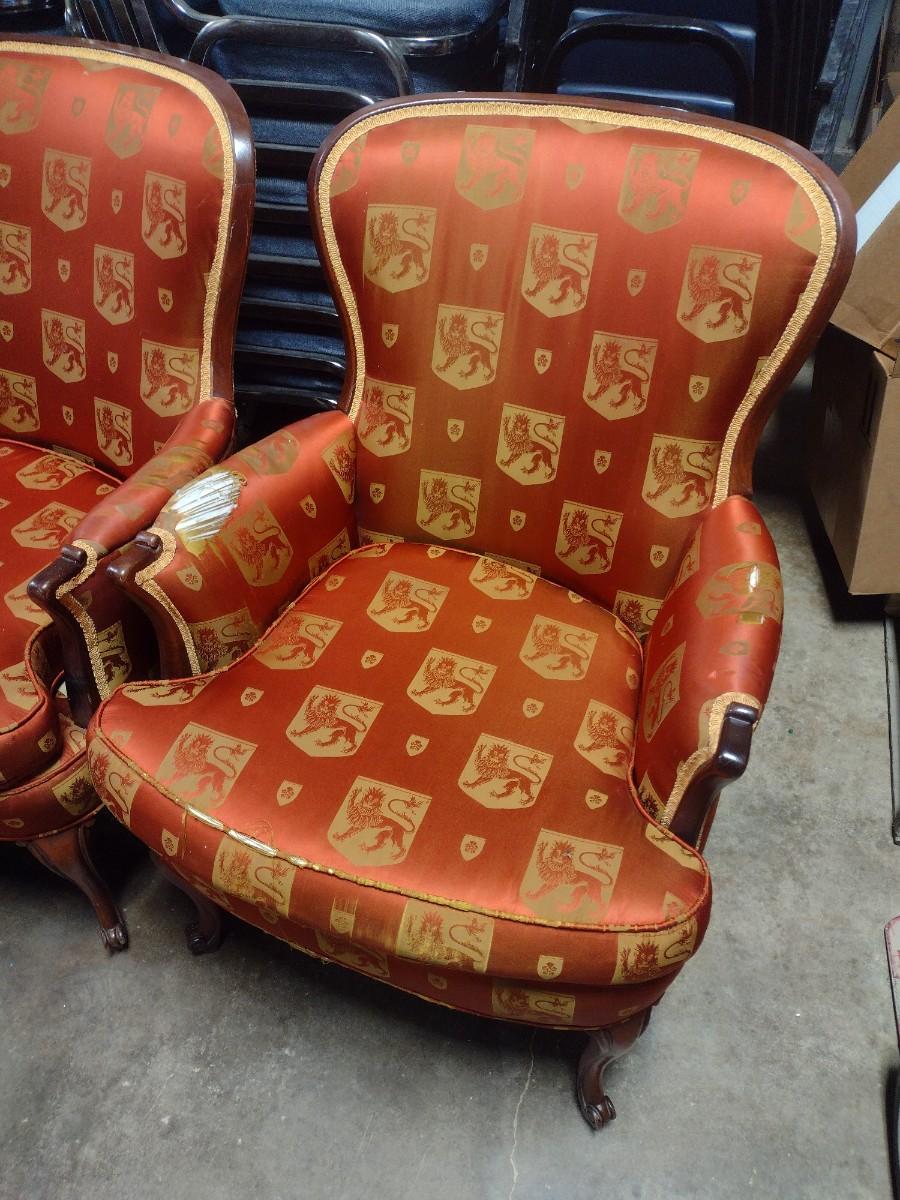 Pair of Wood Framed Upholstered French Country Sitting Chairs. See photos for condition