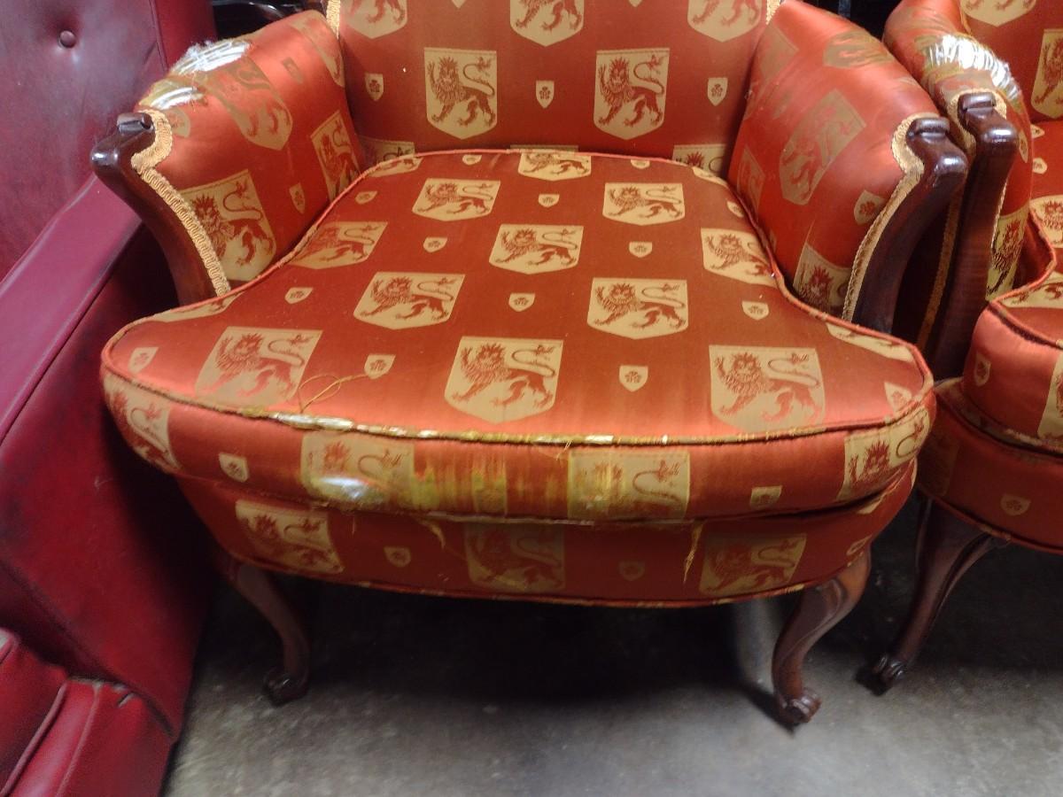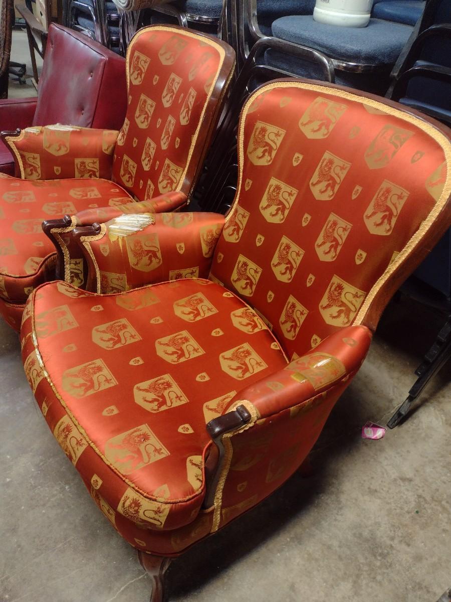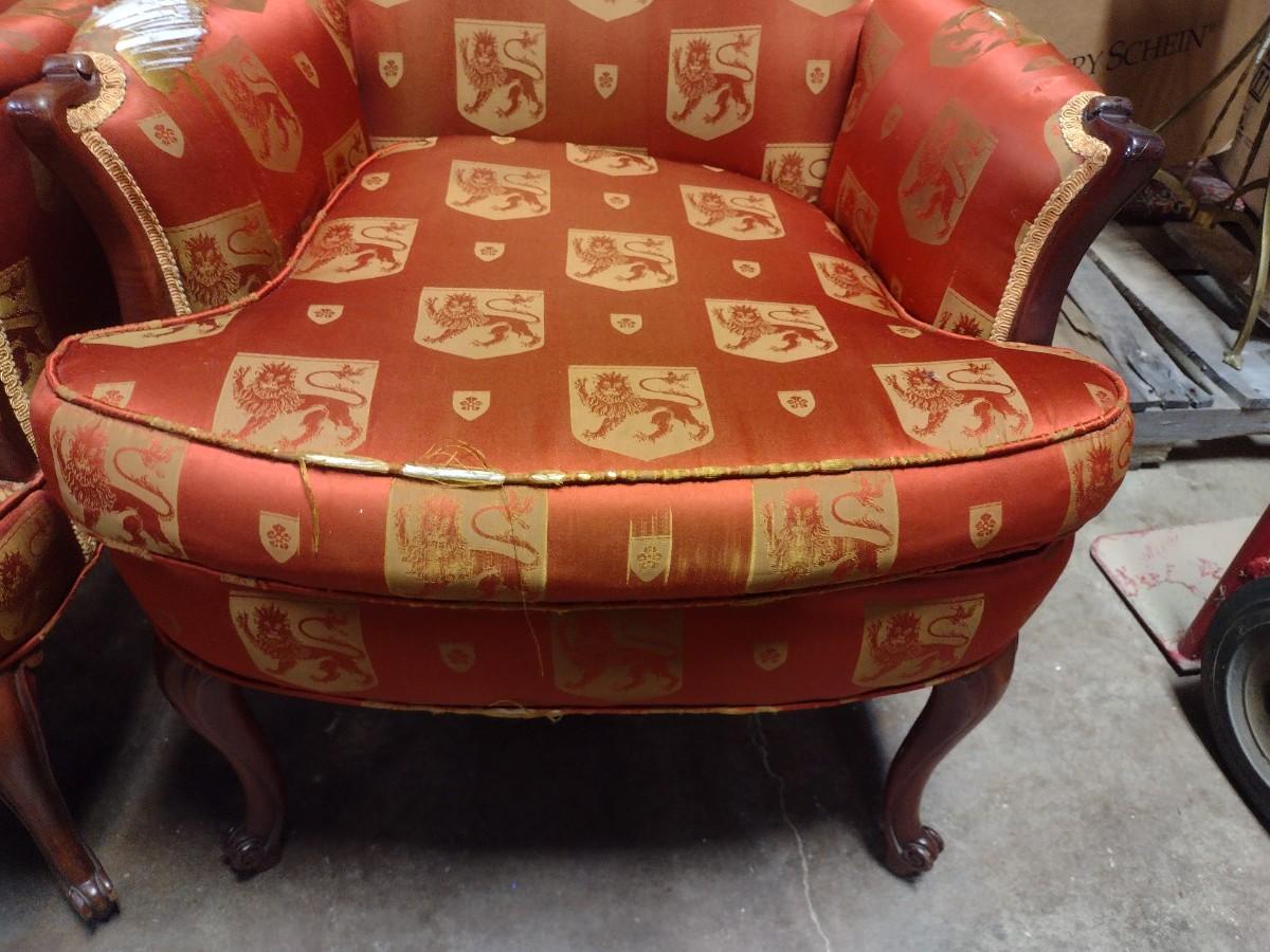 Pair of Wood Framed Upholstered French Country Sitting Chairs. See photos for condition