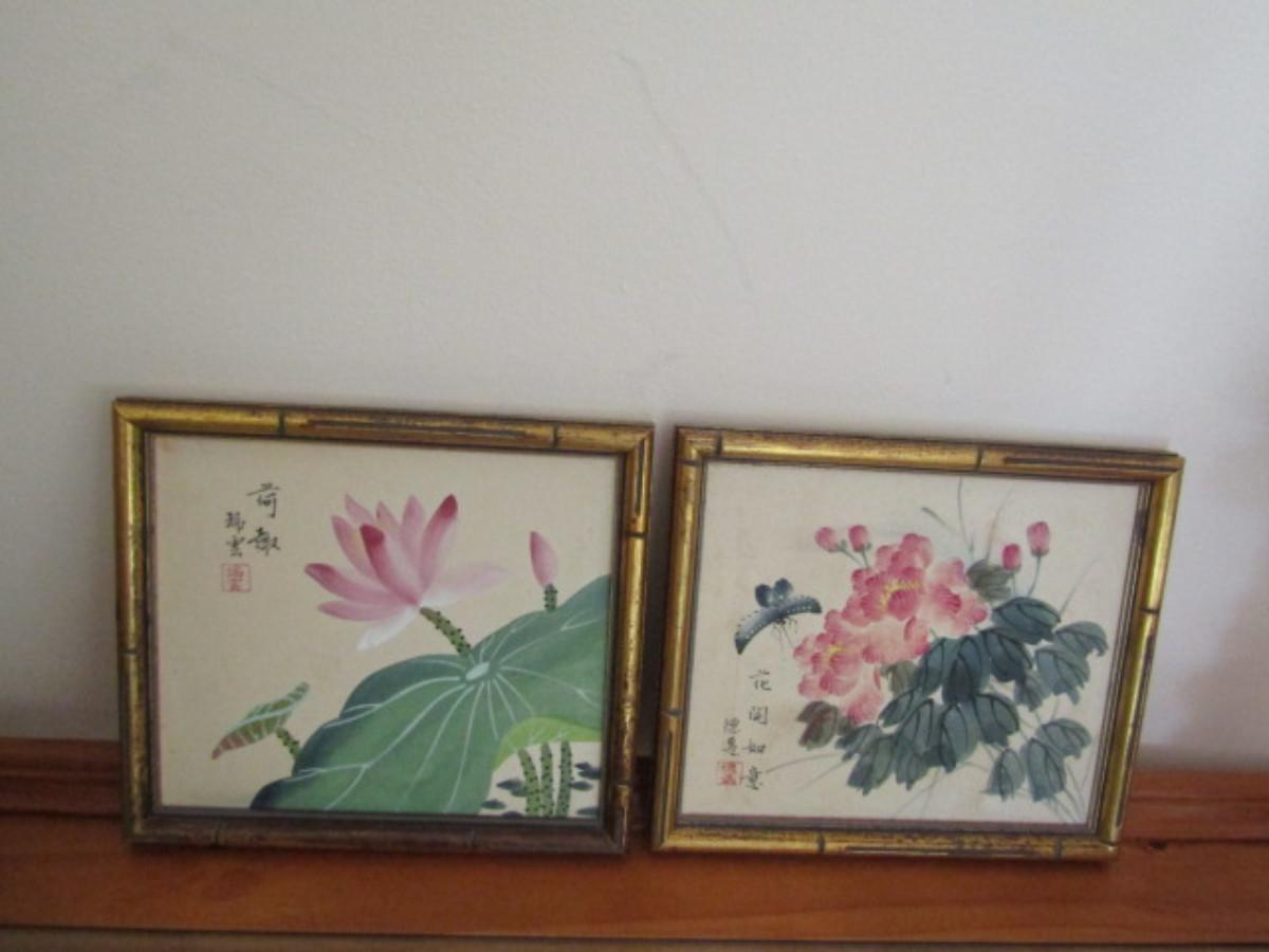 Pair of Wood Framed Watercolor Art Prints by Morikaga Megata