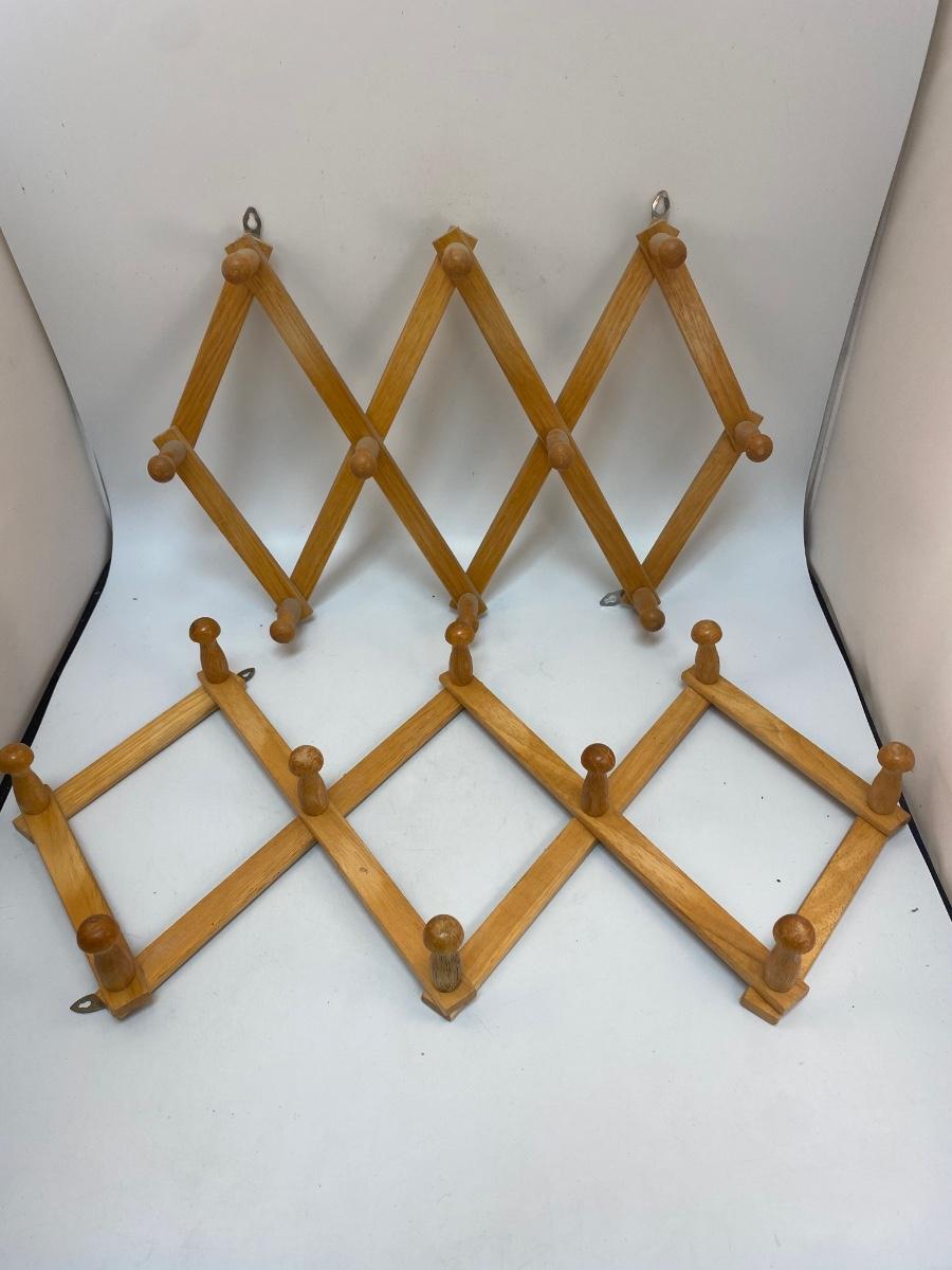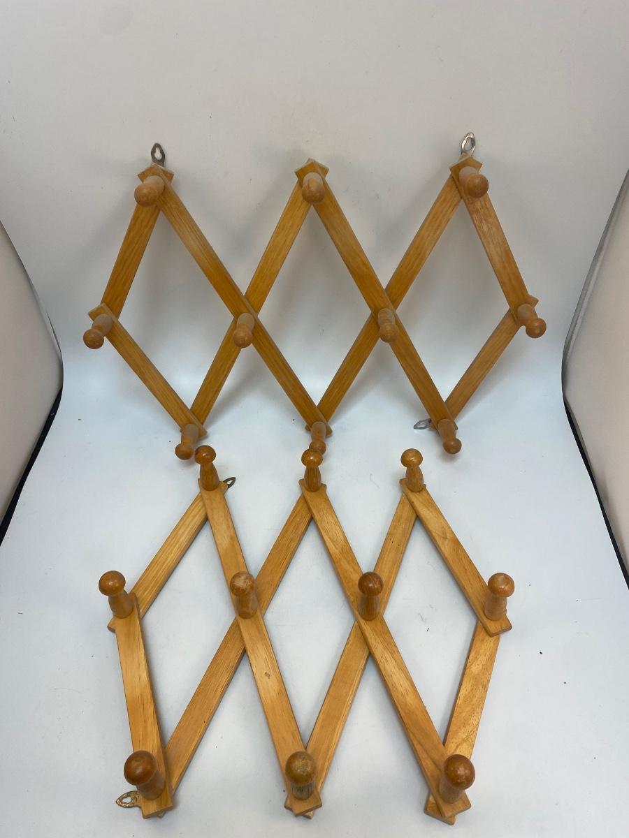 Pair of Wood Scissor Style Wall Coat Hat Hooks. Good condition.