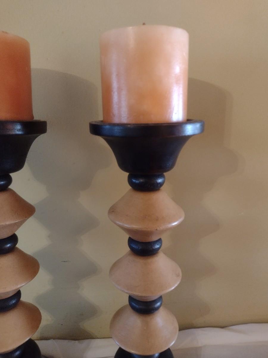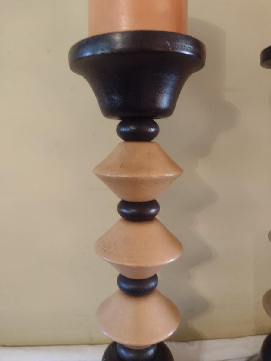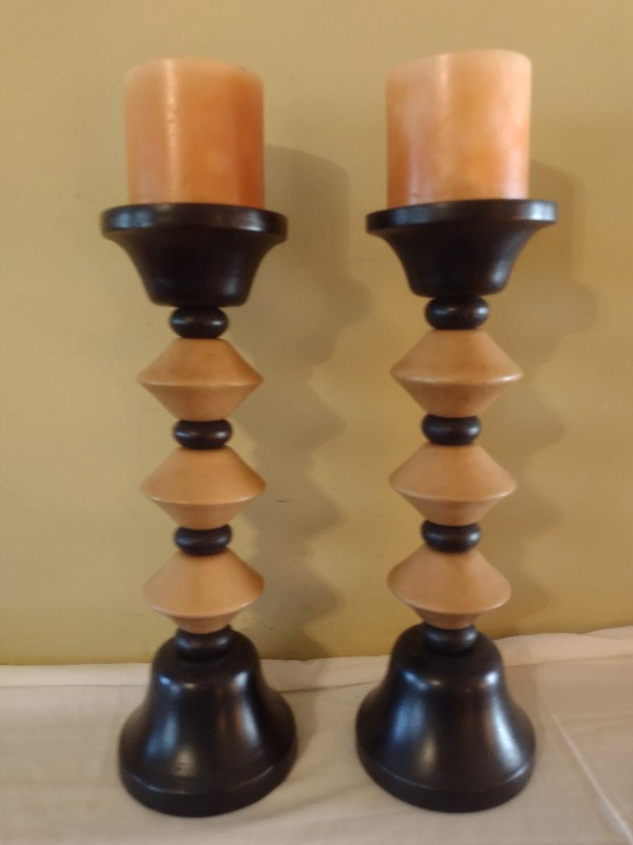 Pair of Wood Turned Candlestick Holders