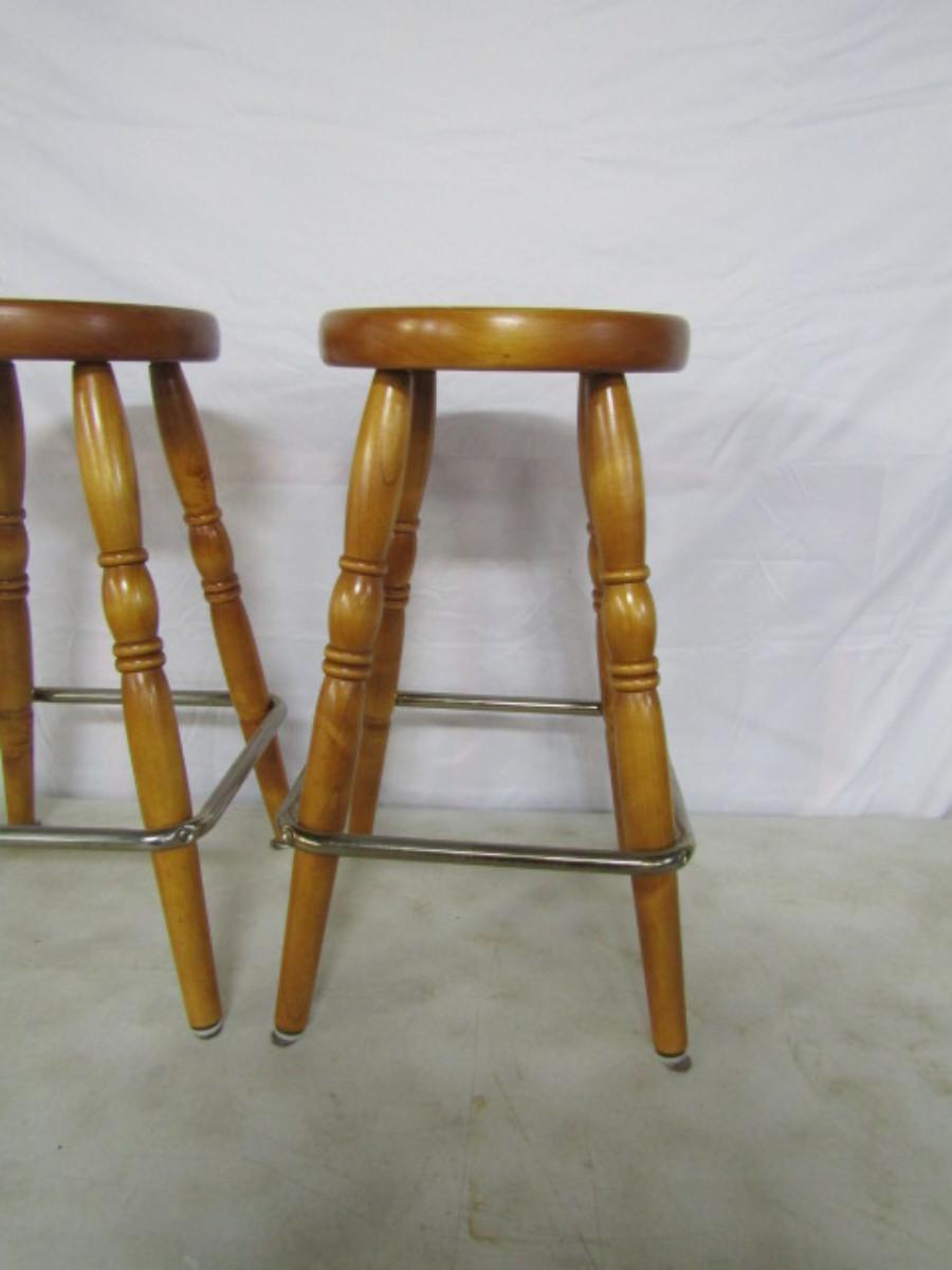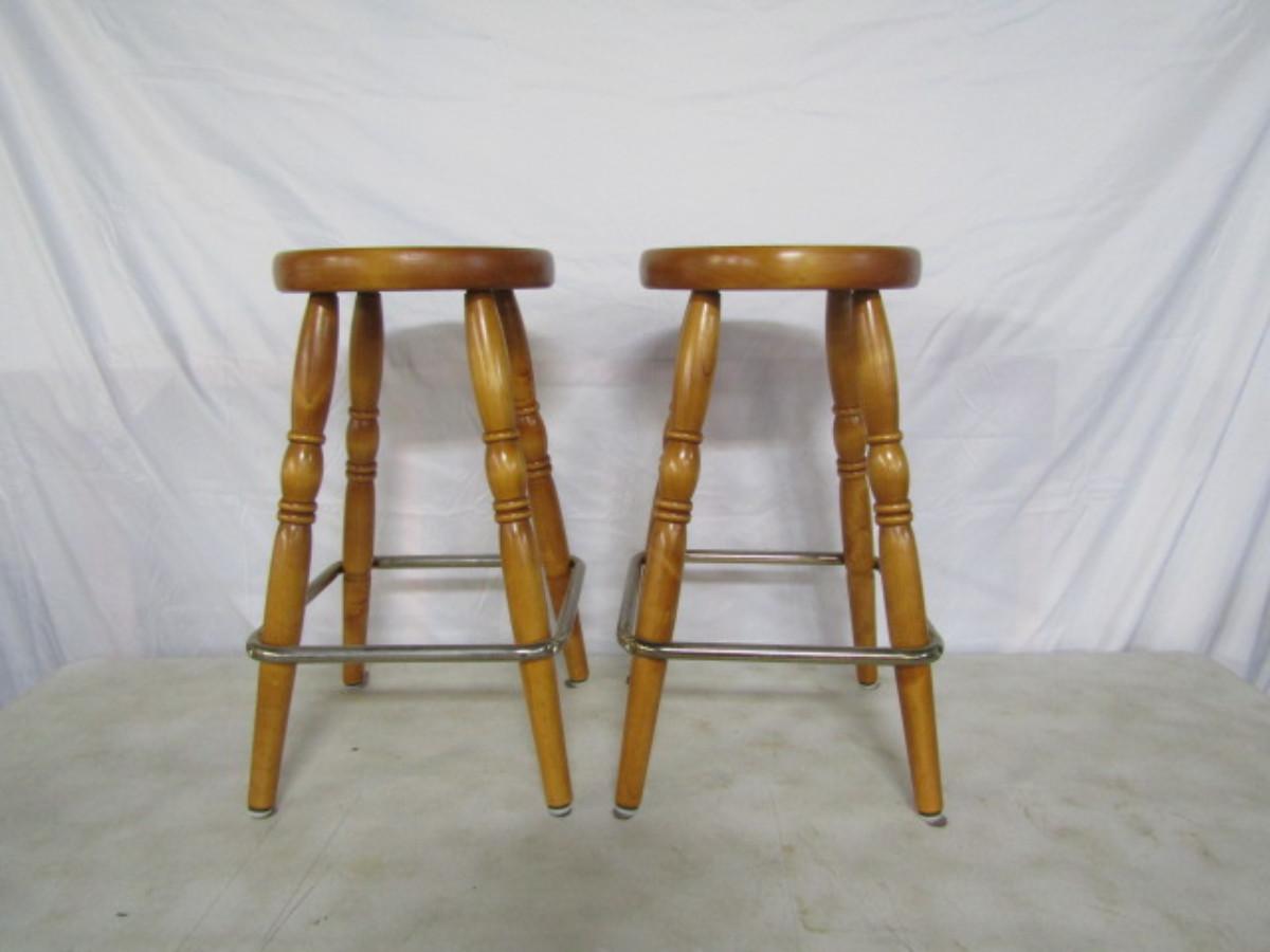 Pair of Wooden Bar Stools with Metal Support Brace/Footrest- Choice A