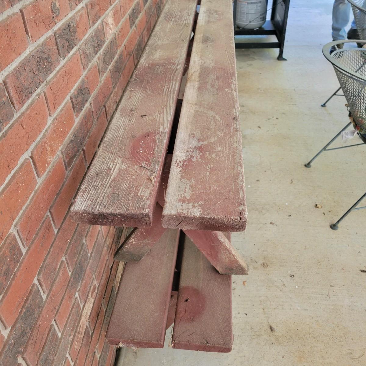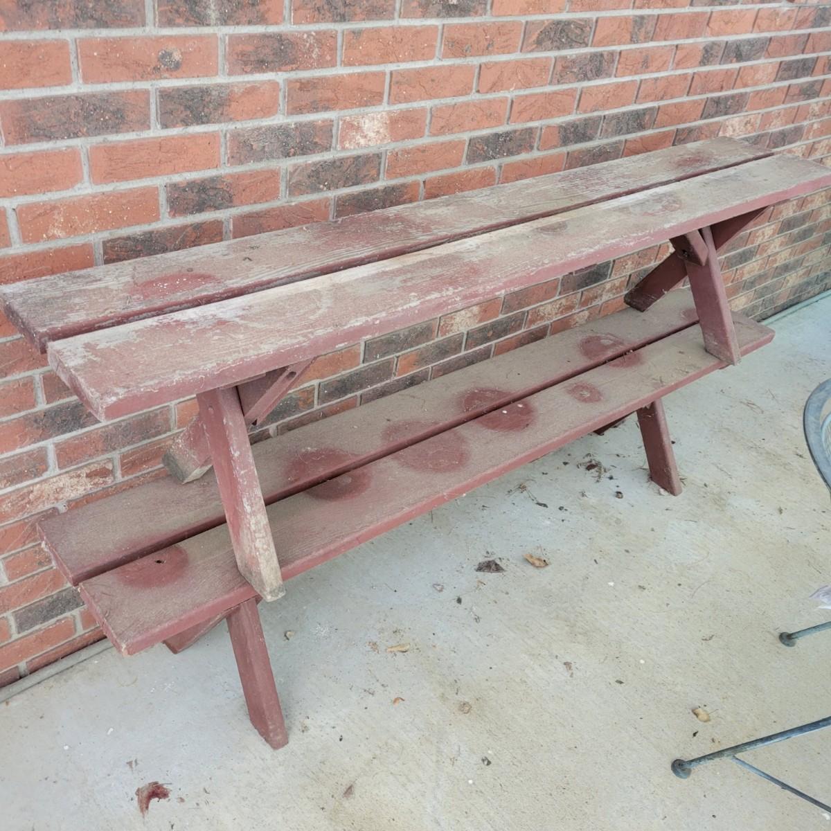 A pair of wooden benches that are painted barn red. They measure approximately 70" x 15" x 16"H. Local pickup only