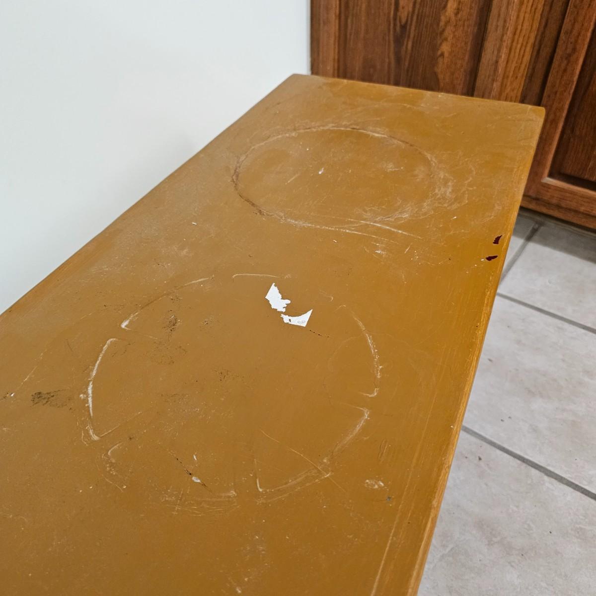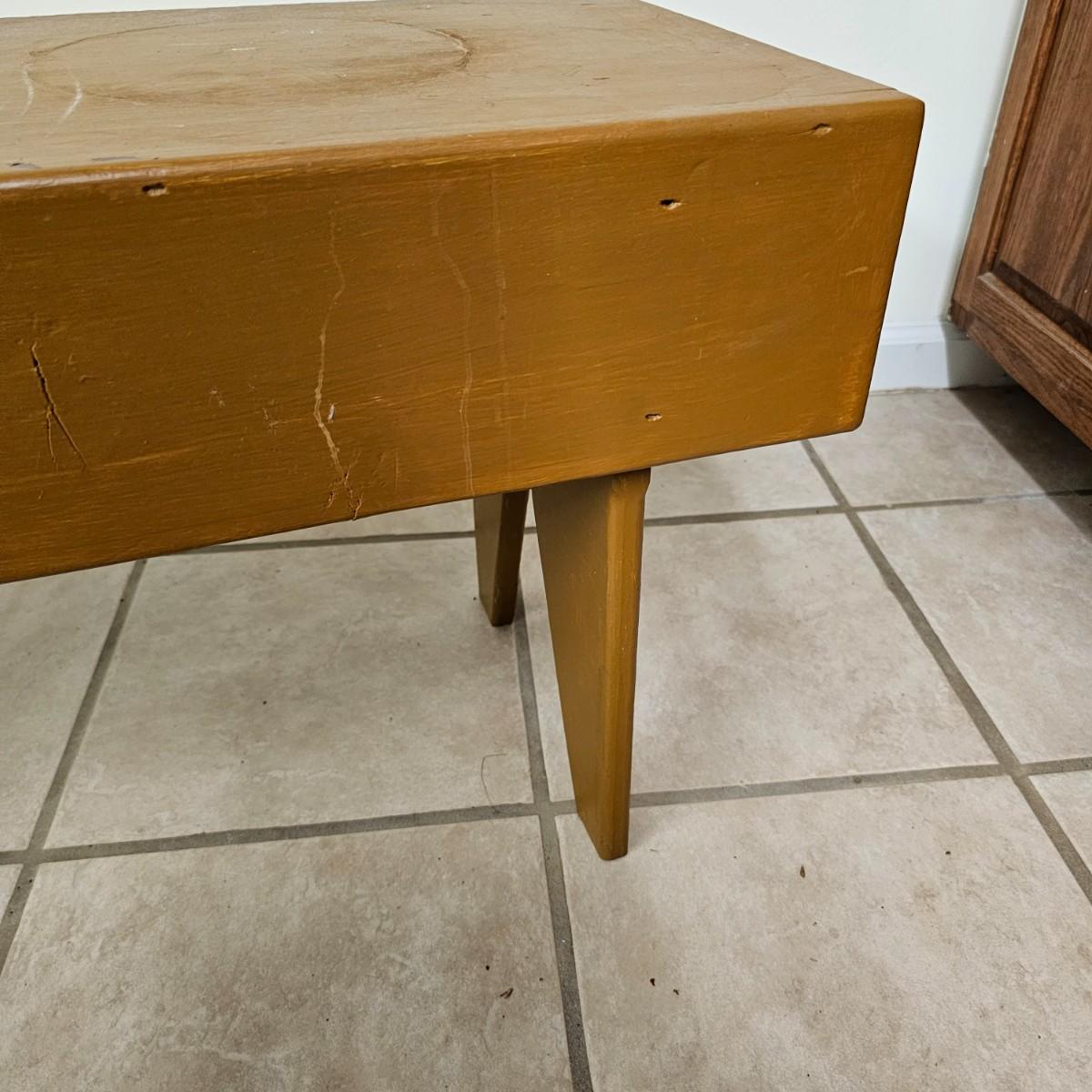 Two wooden deacon style benches. Made from 1-by and 2-by wood, these items are strong and sturdy. Larger item measures 60" x 12" x 18"H, smaller one is 37" x 12" x 17"H. Smaller bench has some ring marks and scratches on it, see photos for details. Local pickup only.