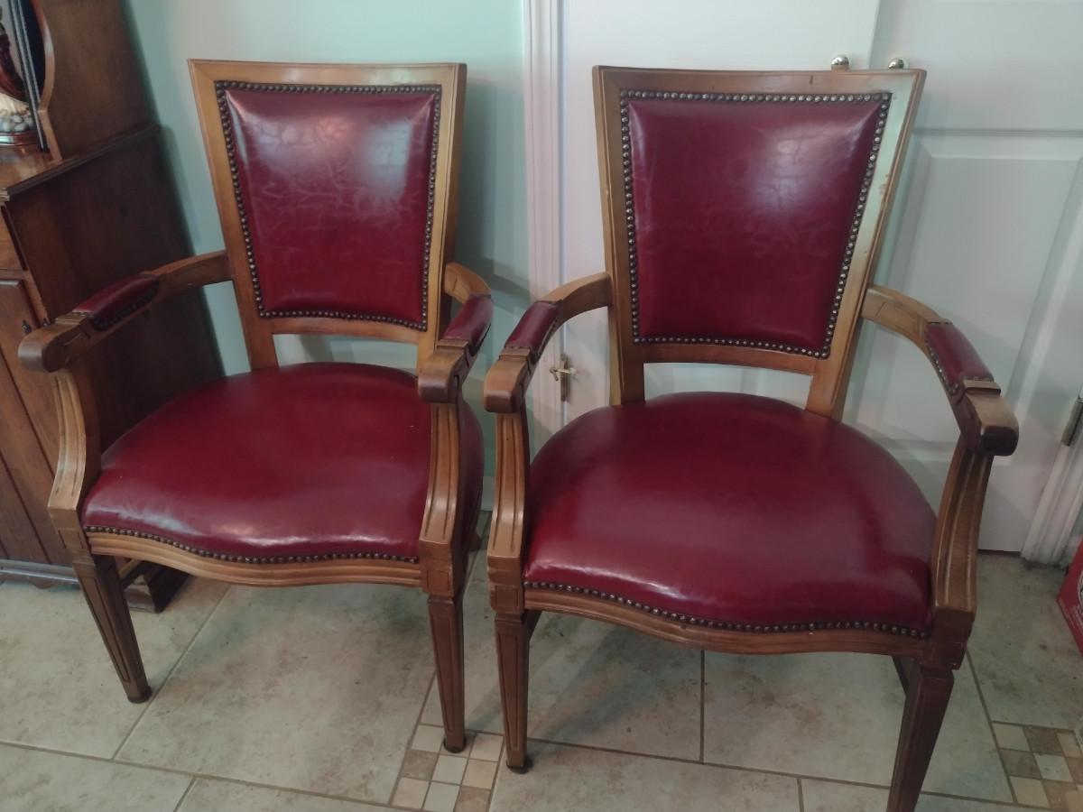 Pair of Wooden Dining Chairs with Tack Accents (Choice B)