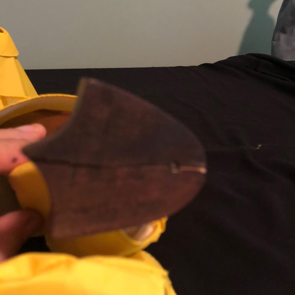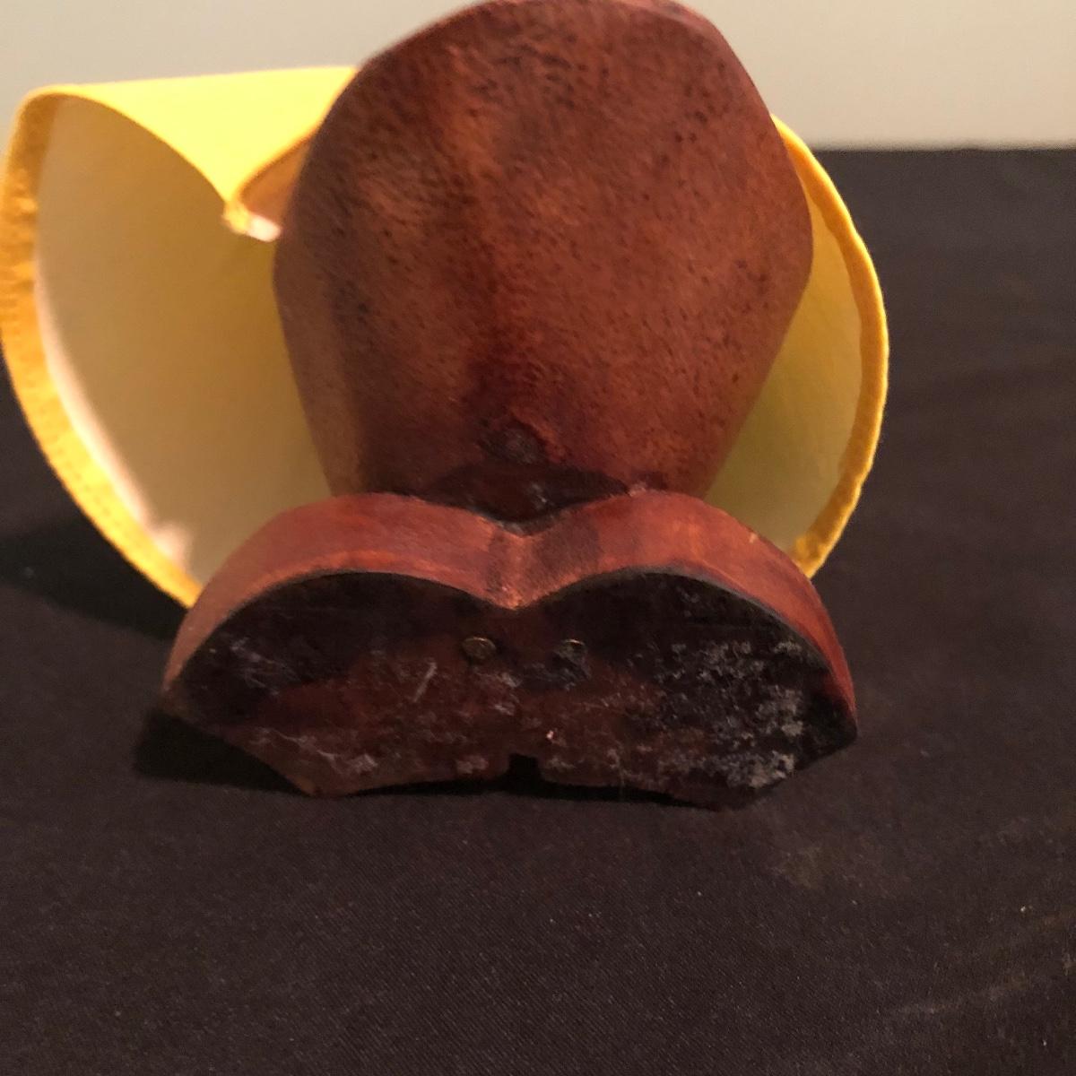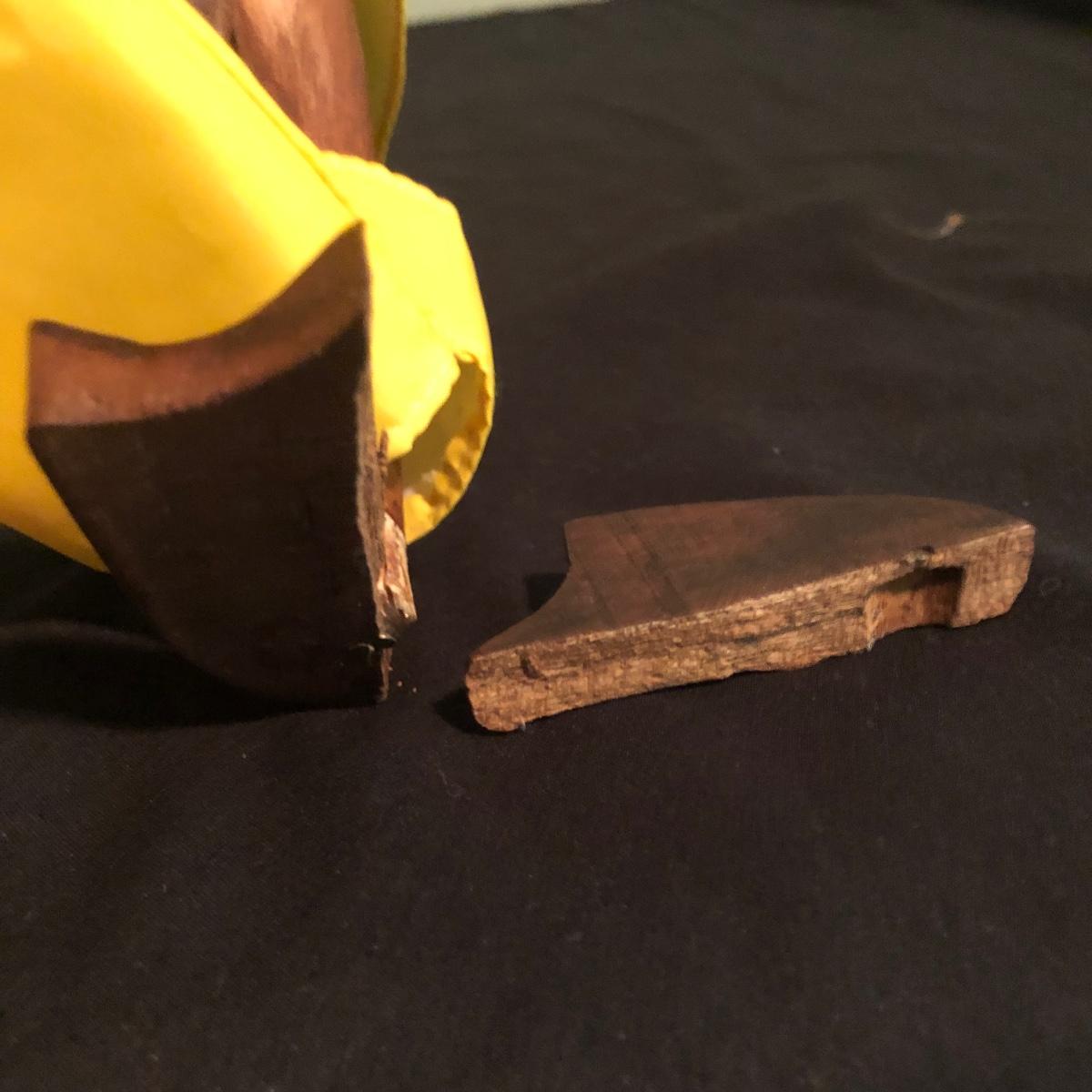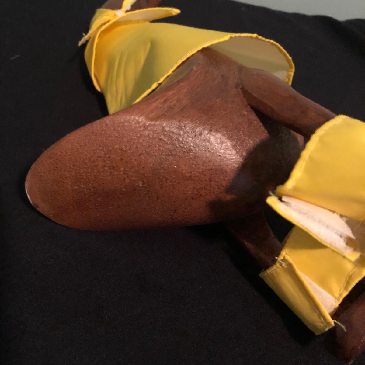 Lot includes two wooden ducks in removable yellow rain slickers. Largest duck has broken foot, see pictures. Both broken pieces are there so It should be a easy fix. Largest duck measures 4.5” x 7” x 12”.