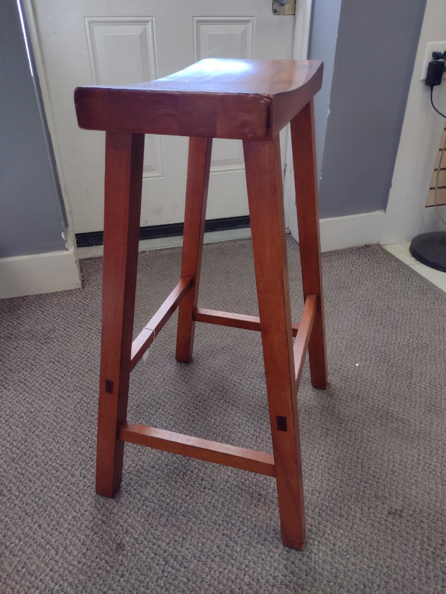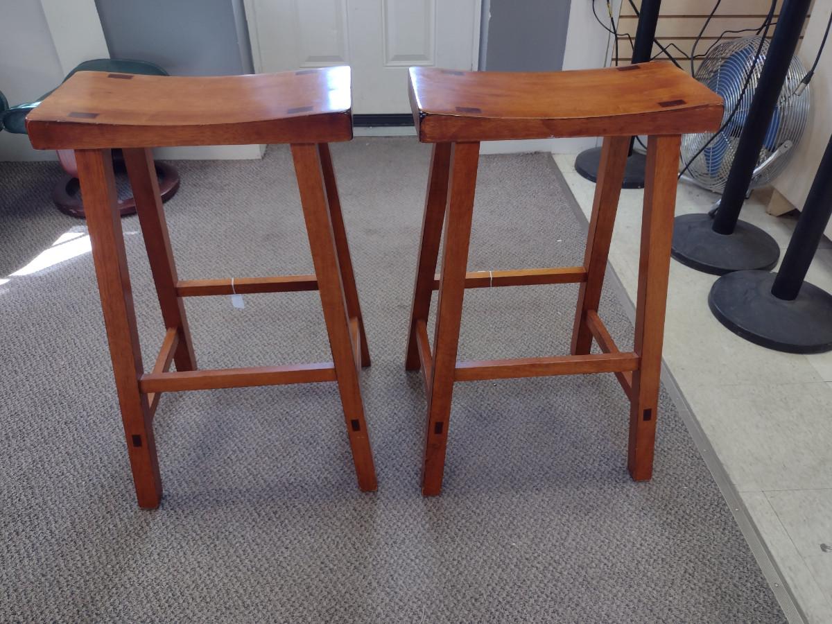 Pair of Wooden Saddleback Design Bar Stools- Approx 29" Tall