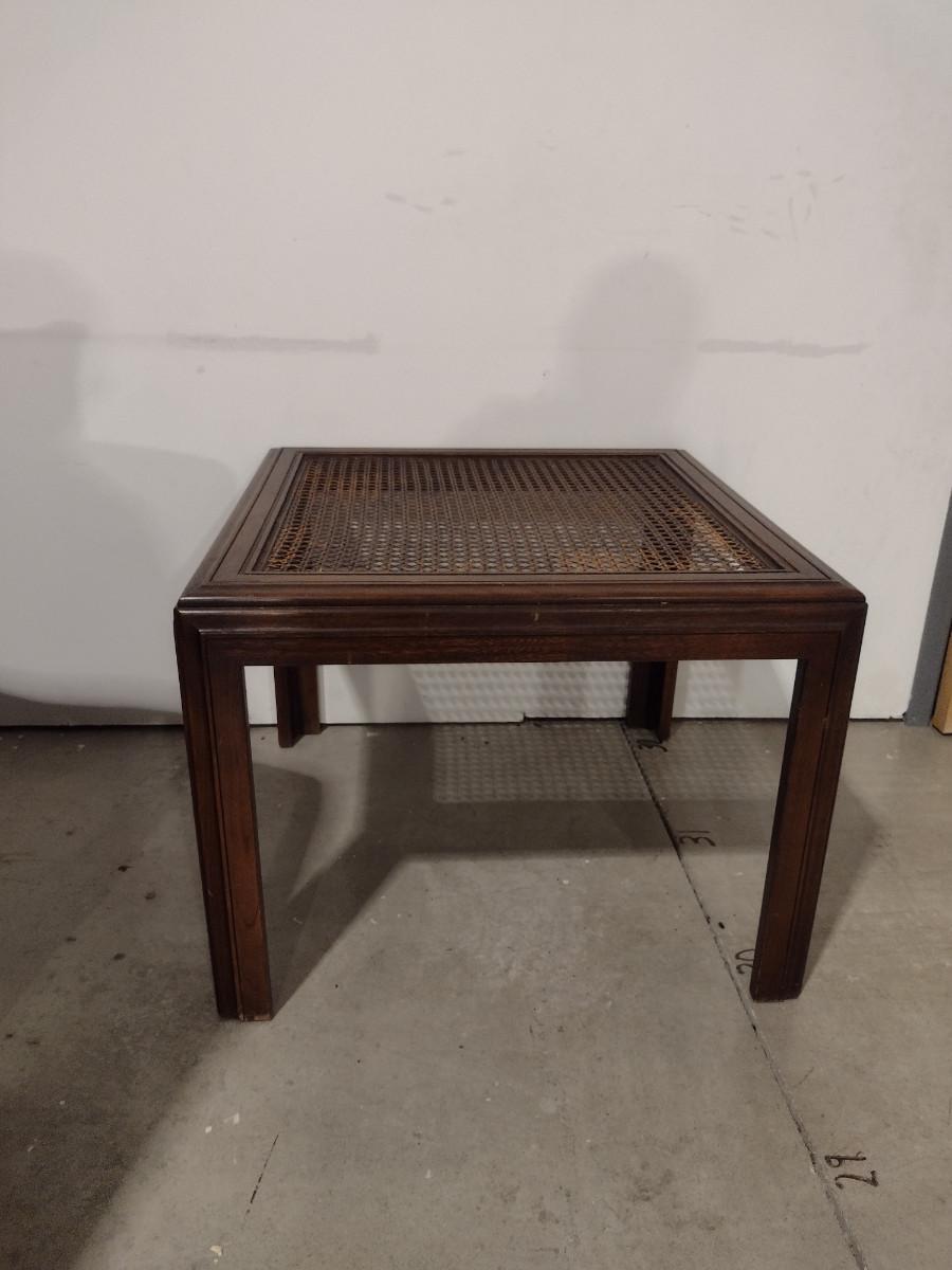 Pair of Wooden Side Tables with Woven Cane Tops