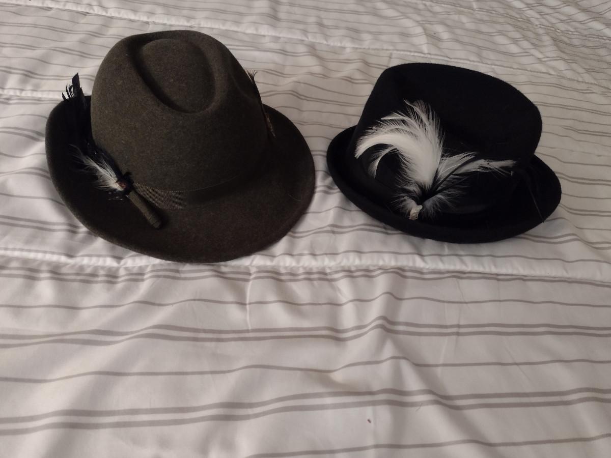 Pair of Wool Hats with Feather Embellishments (Wool Hats #2-F)