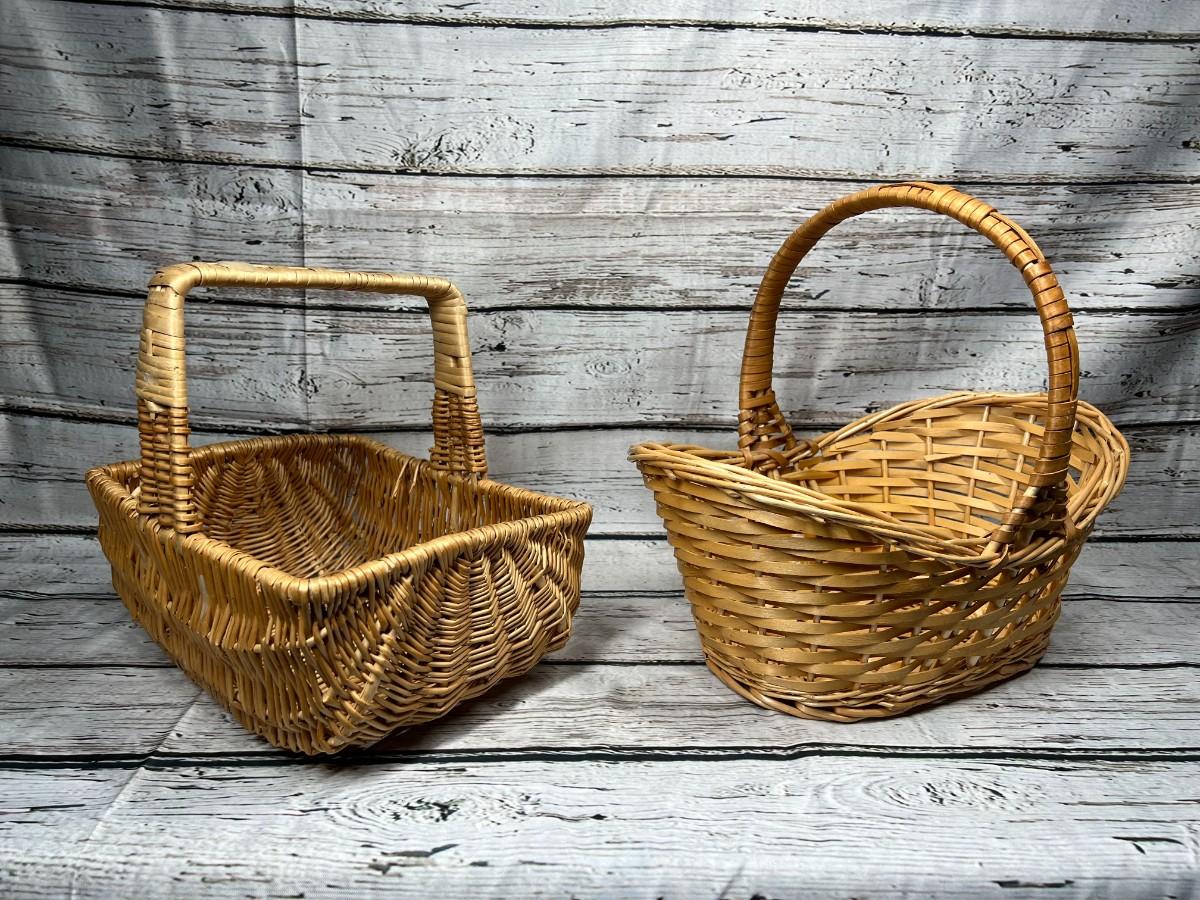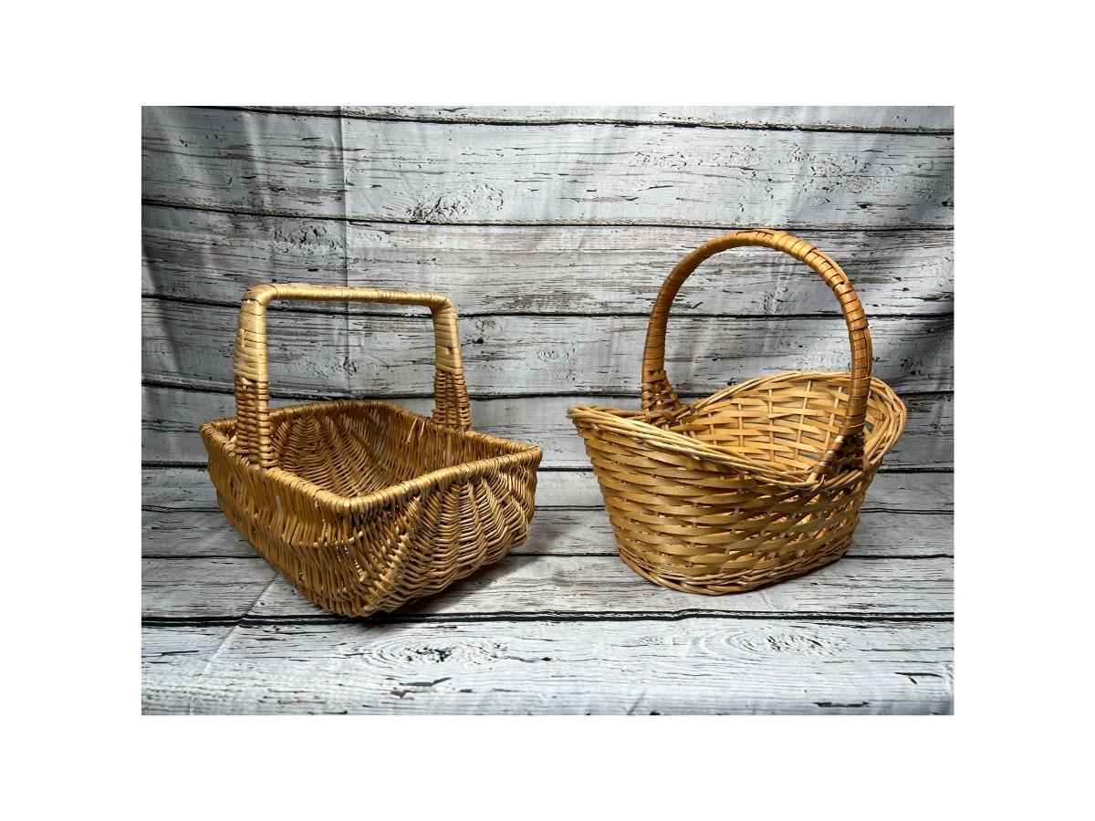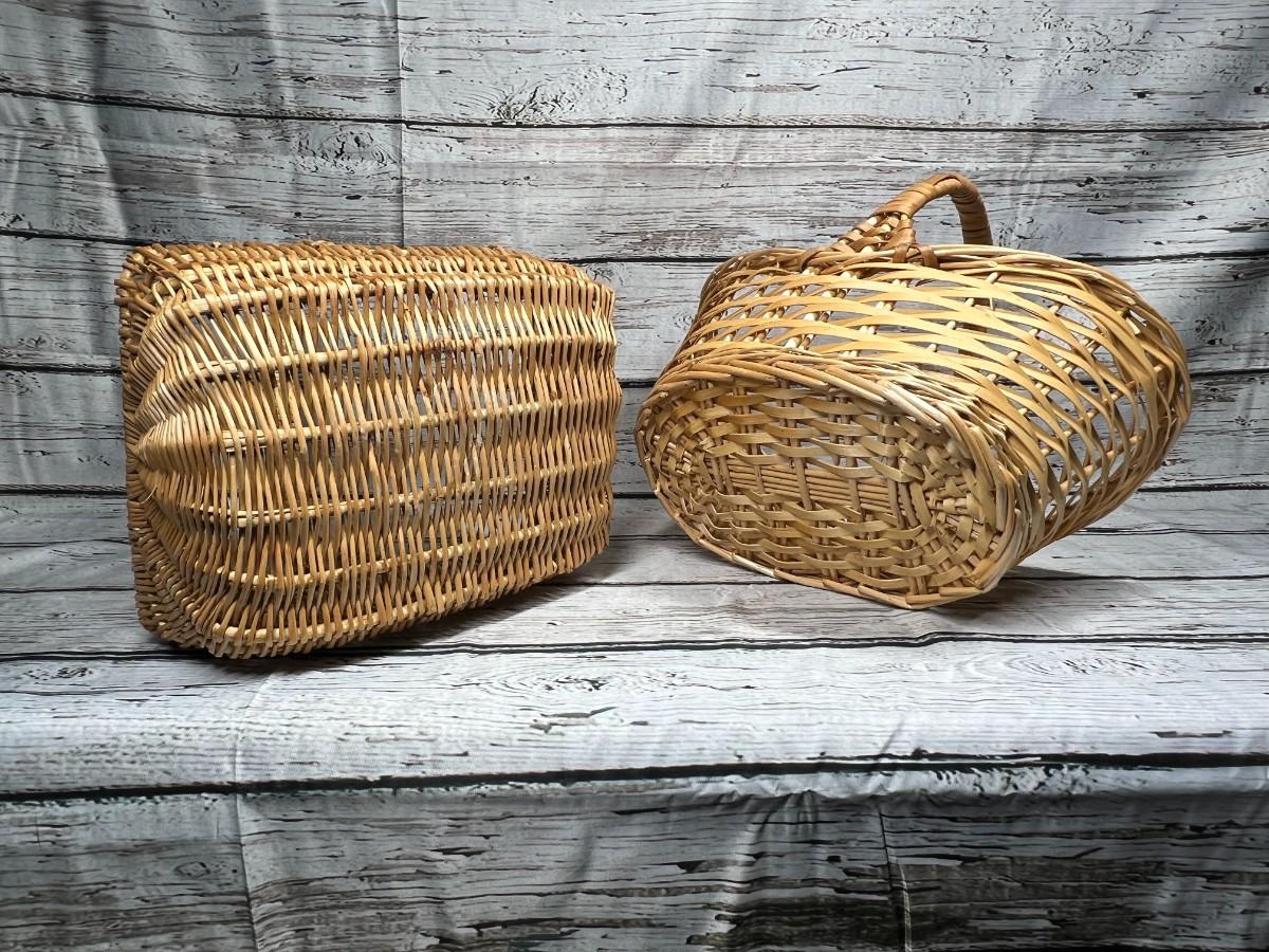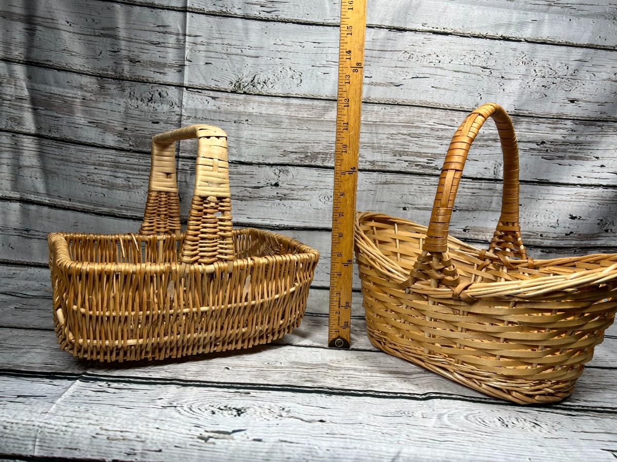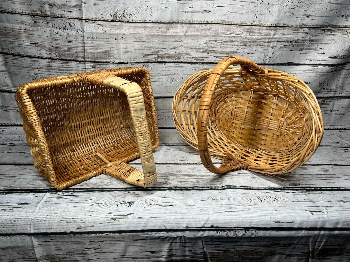 Pair of nice woven baskets. Both with handles, great for display. Nice sized, over 12".