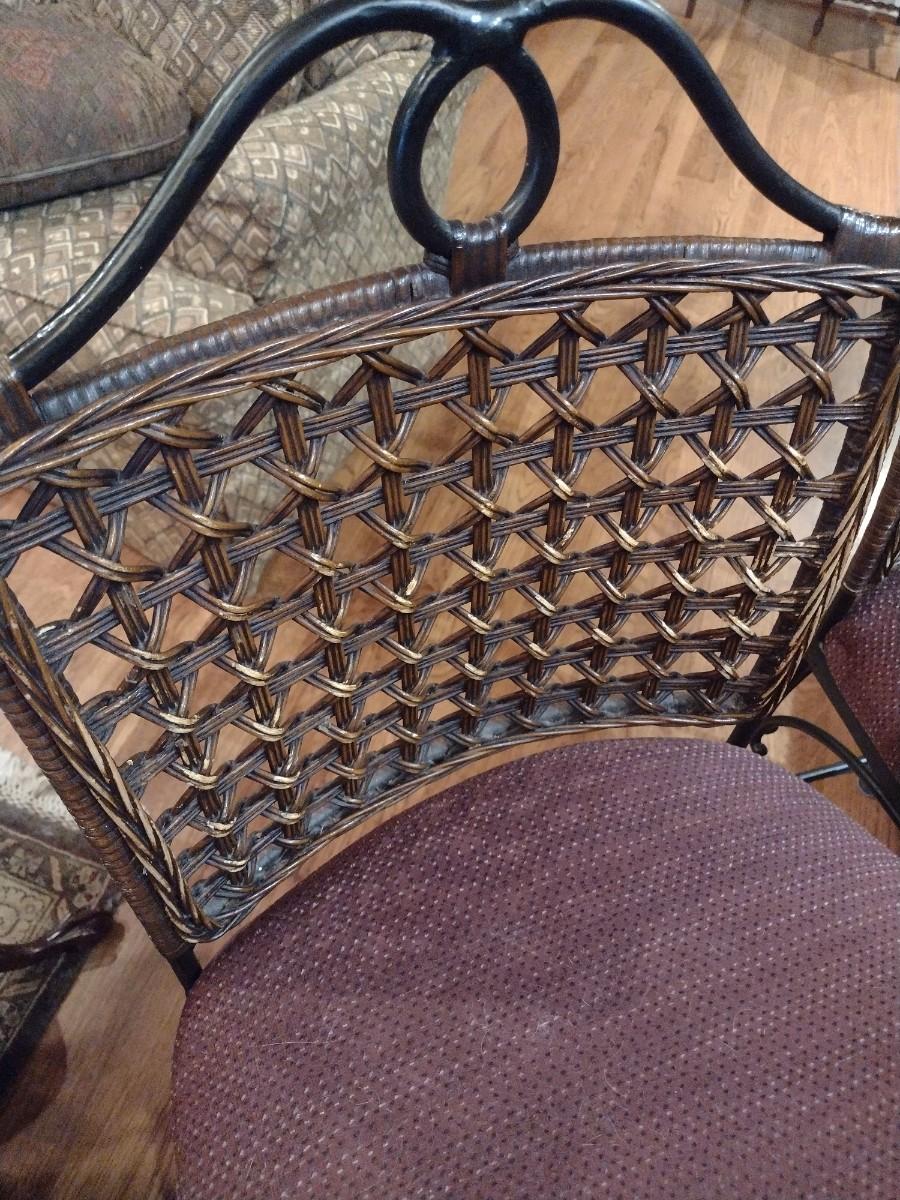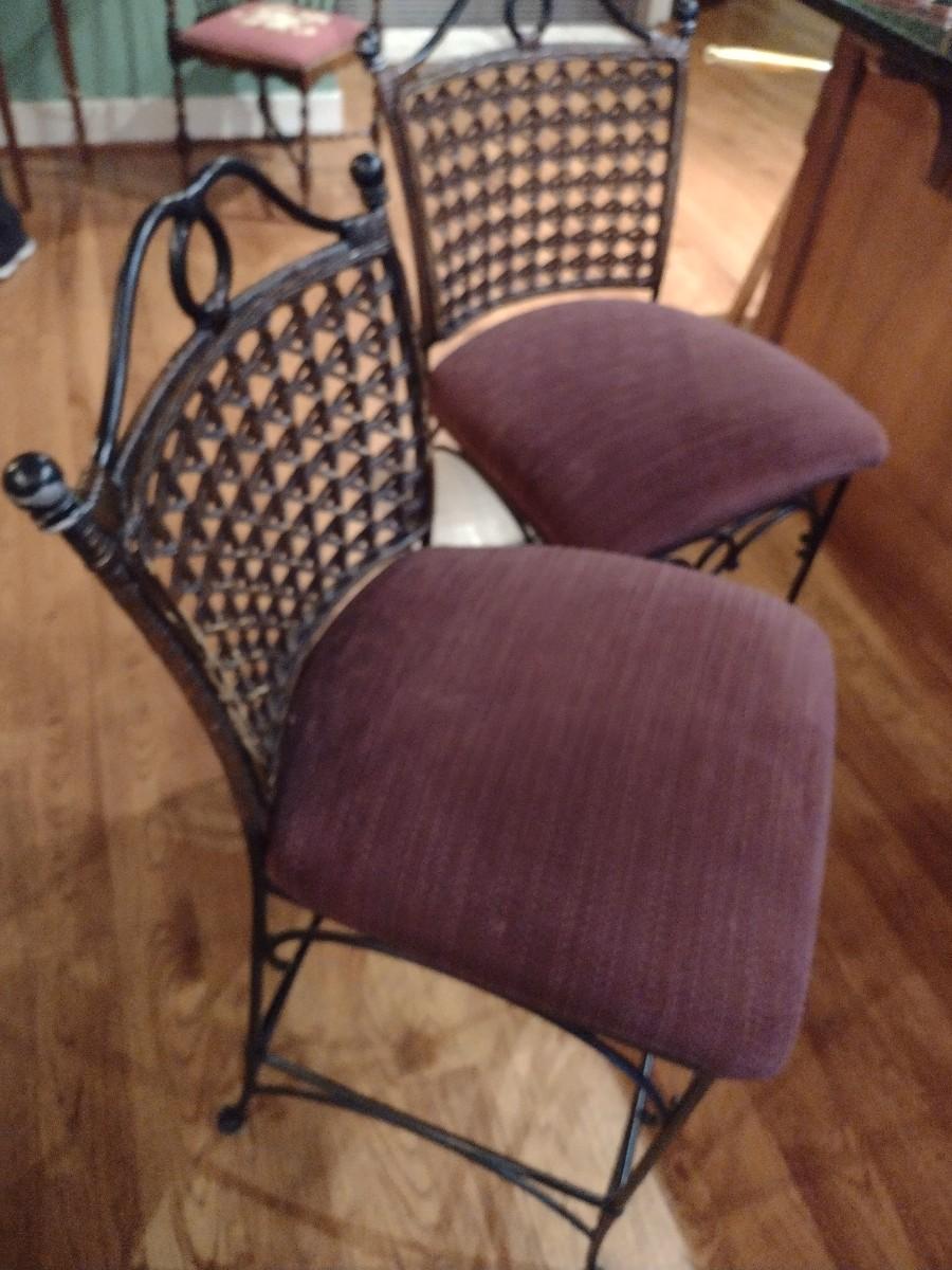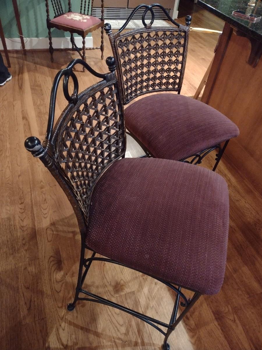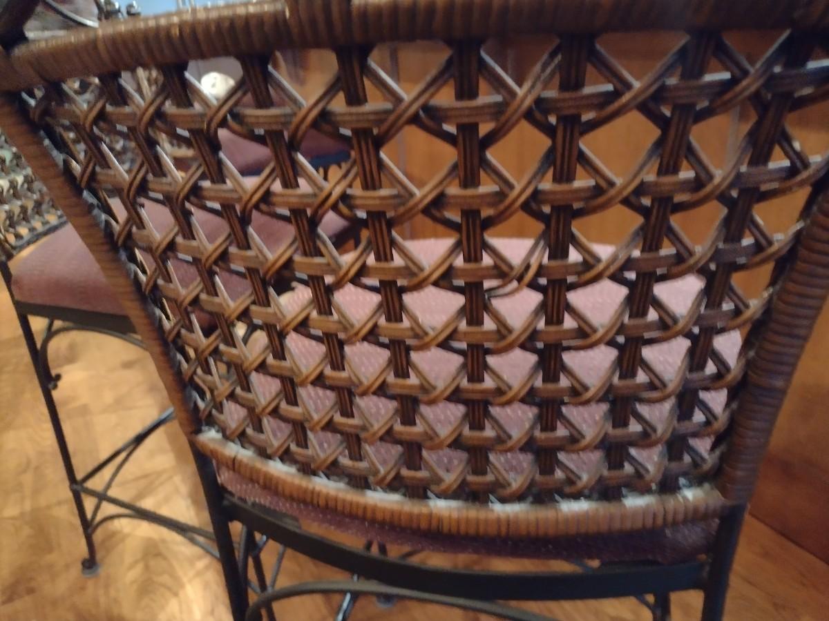 Pair of Wrought Metal Bar Stools with Upholstered Seat and Wicker Back Choice B