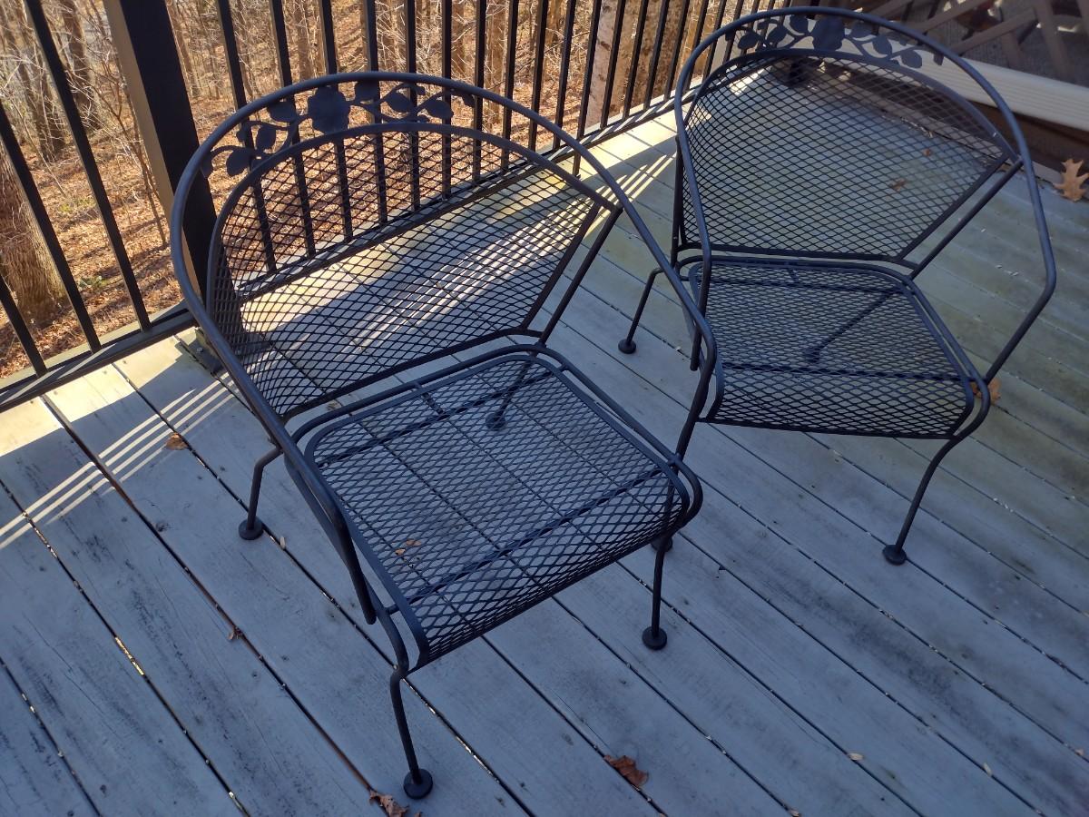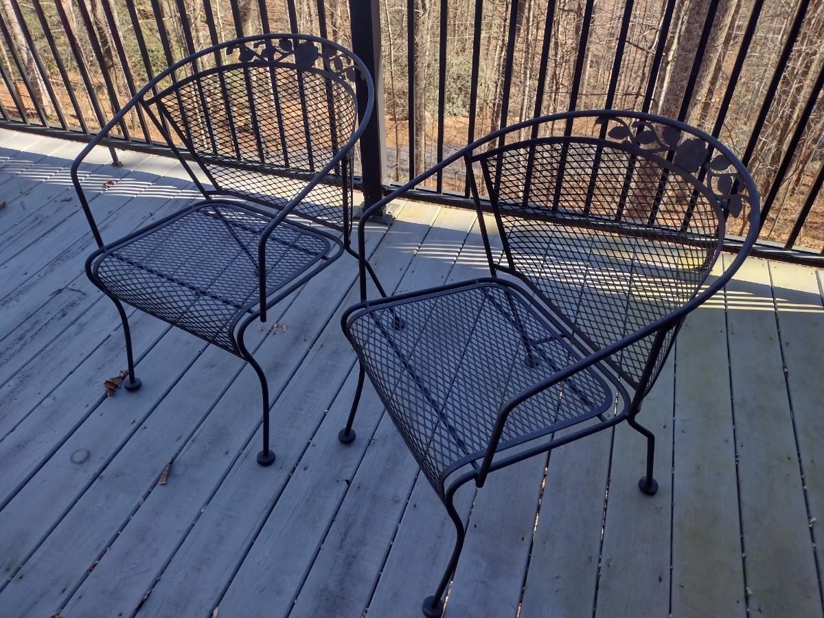 Pair of Wrought Metal Mesh Barrel Patio Chairs Choice A