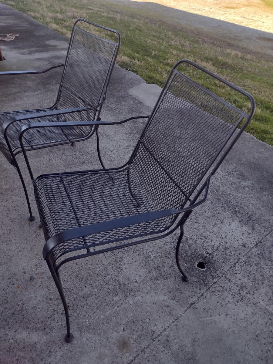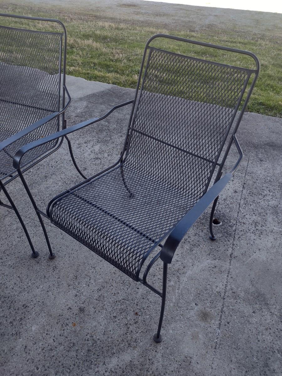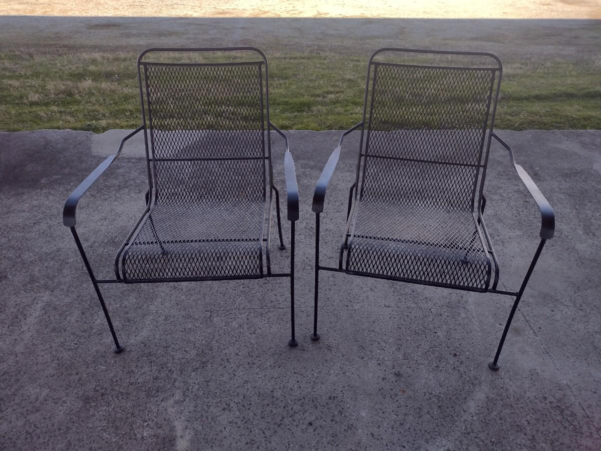 Pair of Wrought Metal Patio Chair with Mesh Seat and Back Solid Arms