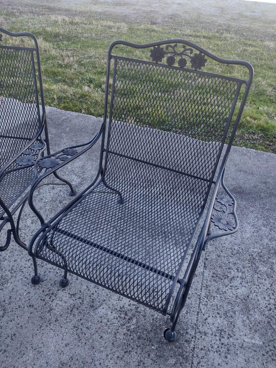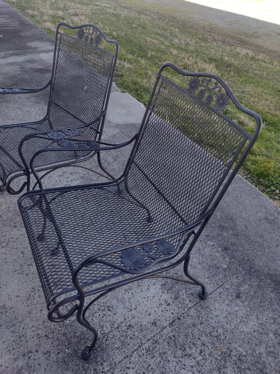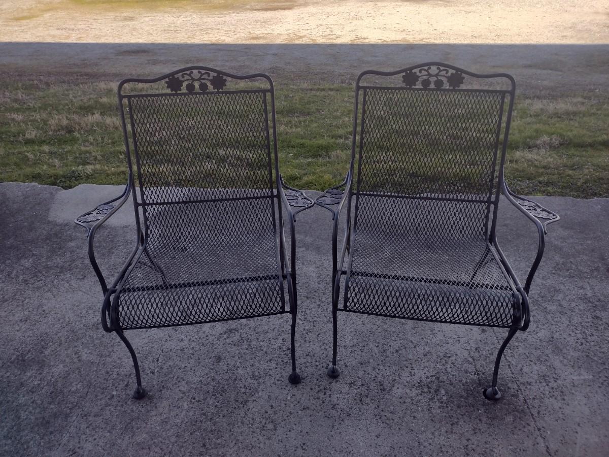 Pair of Wrought Metal Patio Chair with Mesh Seat and Back Open Design Arms and Headrest