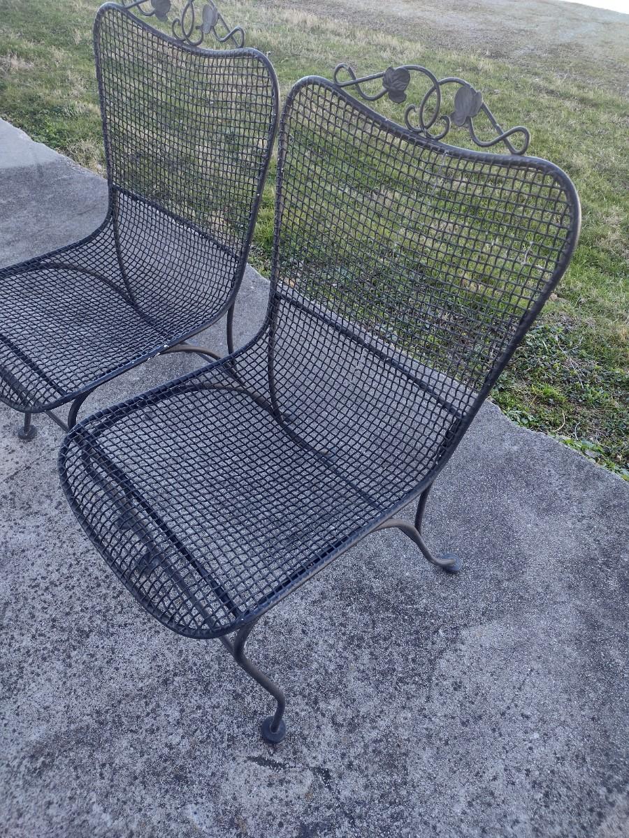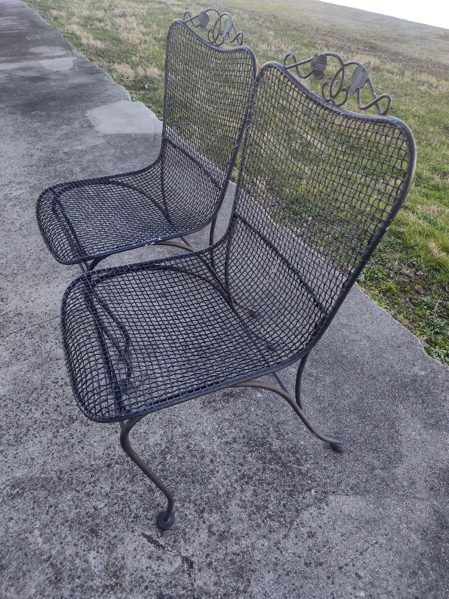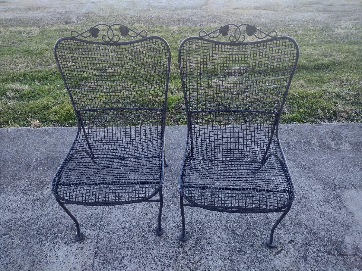 Pair of Wrought Metal Patio Chairs Full Mesh Design No Arms