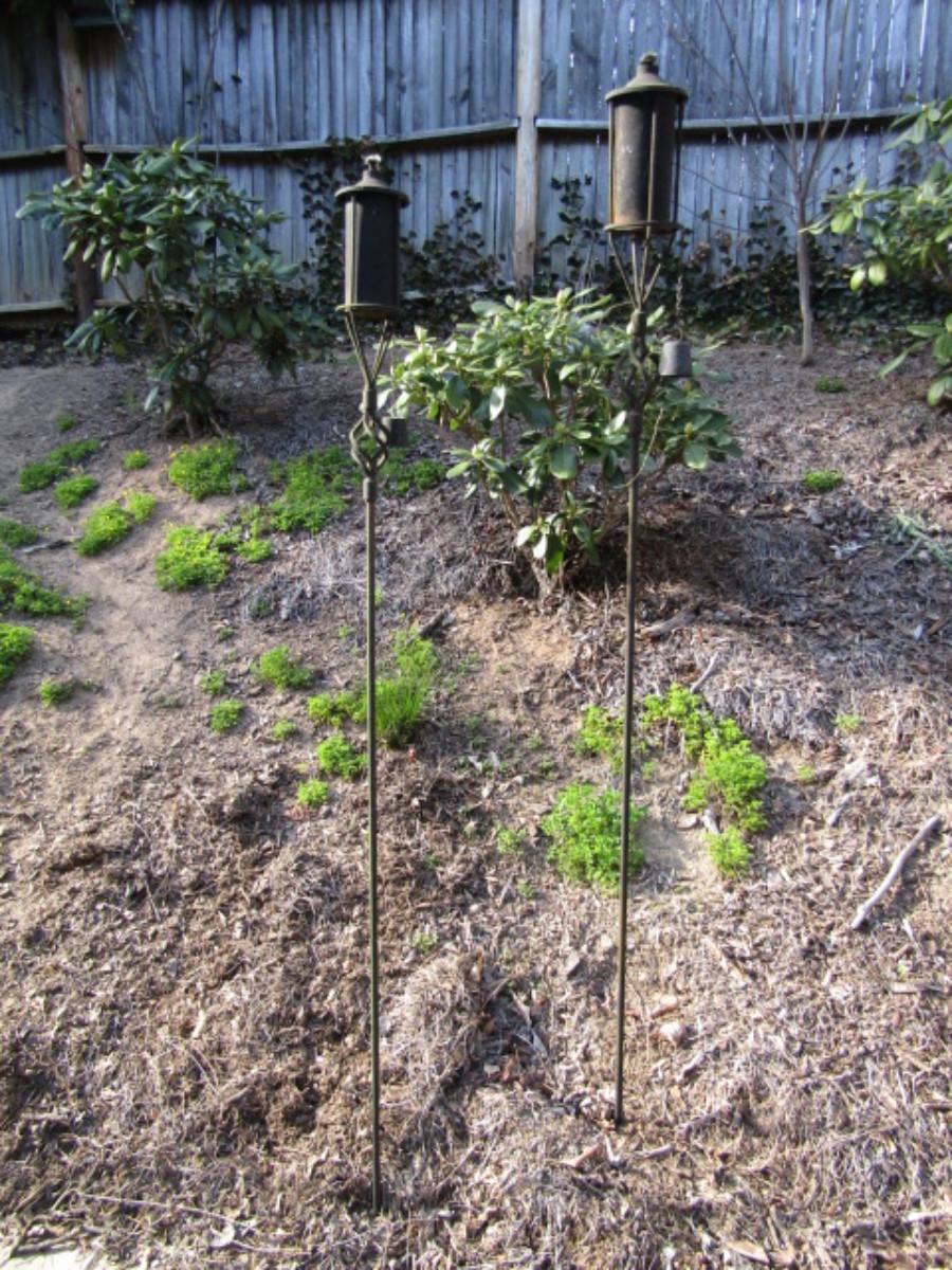 Pair of Wrought Metal Post Garden Torches