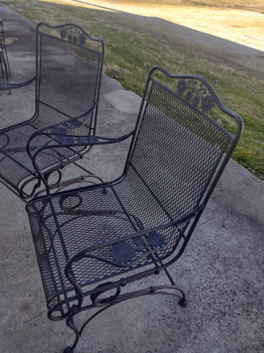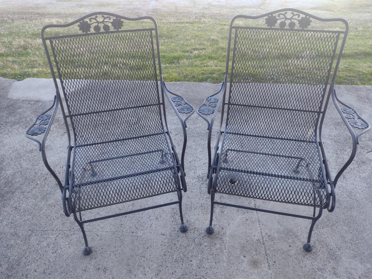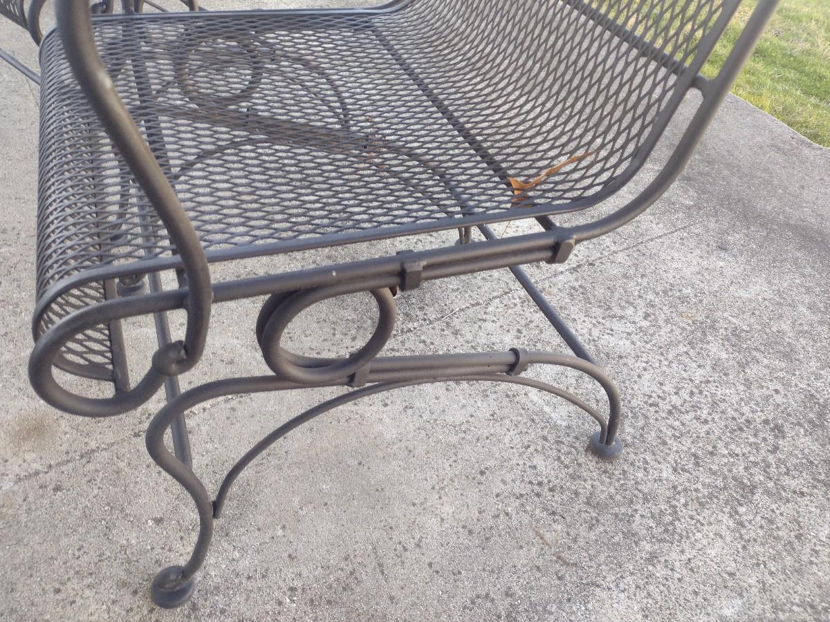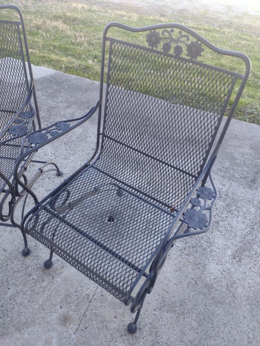 Pair of Wrought Metal Rocker Style Patio Chair with Mesh Seat and Back Open Design Arms and Headrest