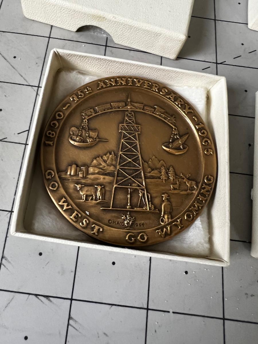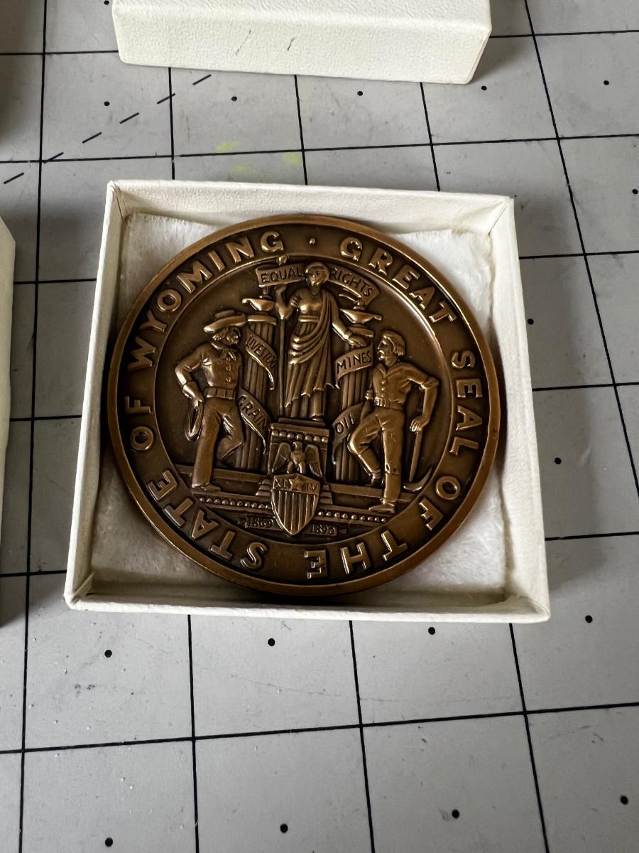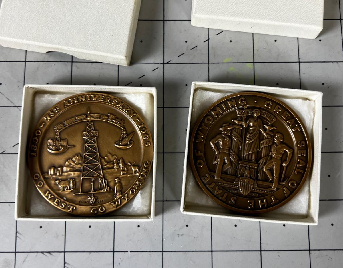 Pair of Wyoming Bronze Paperweight Coins (2)