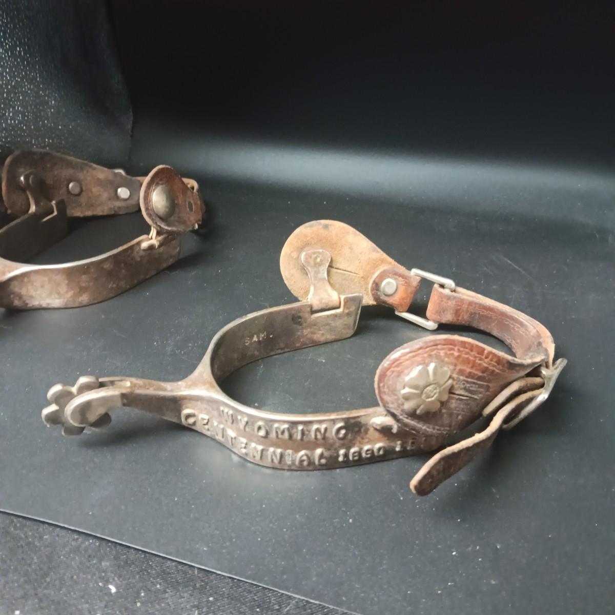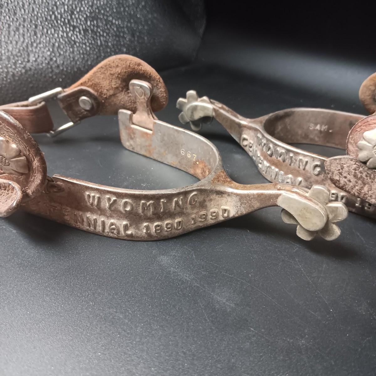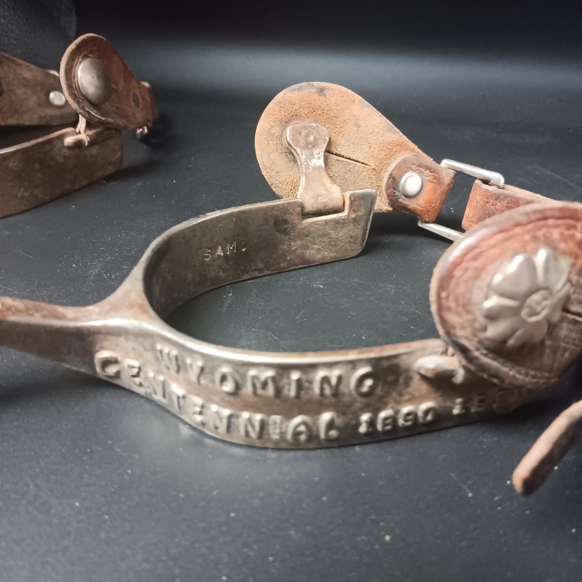PAIR OF WYOMING CENTENNIAL SPURS MARKED "BAM"