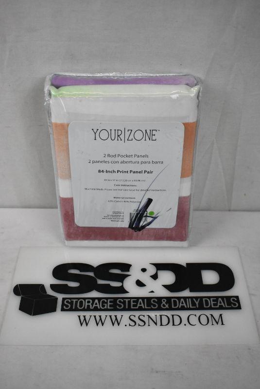 Pair of Your Zone Multi Watercolor Stripe Curtain Window Panels, 84" x 37" - New