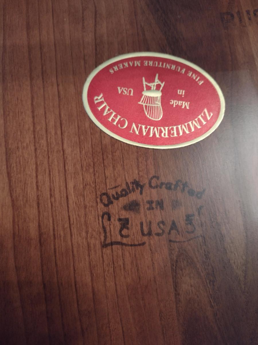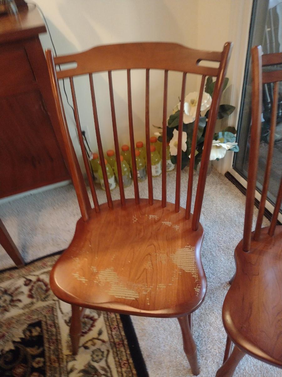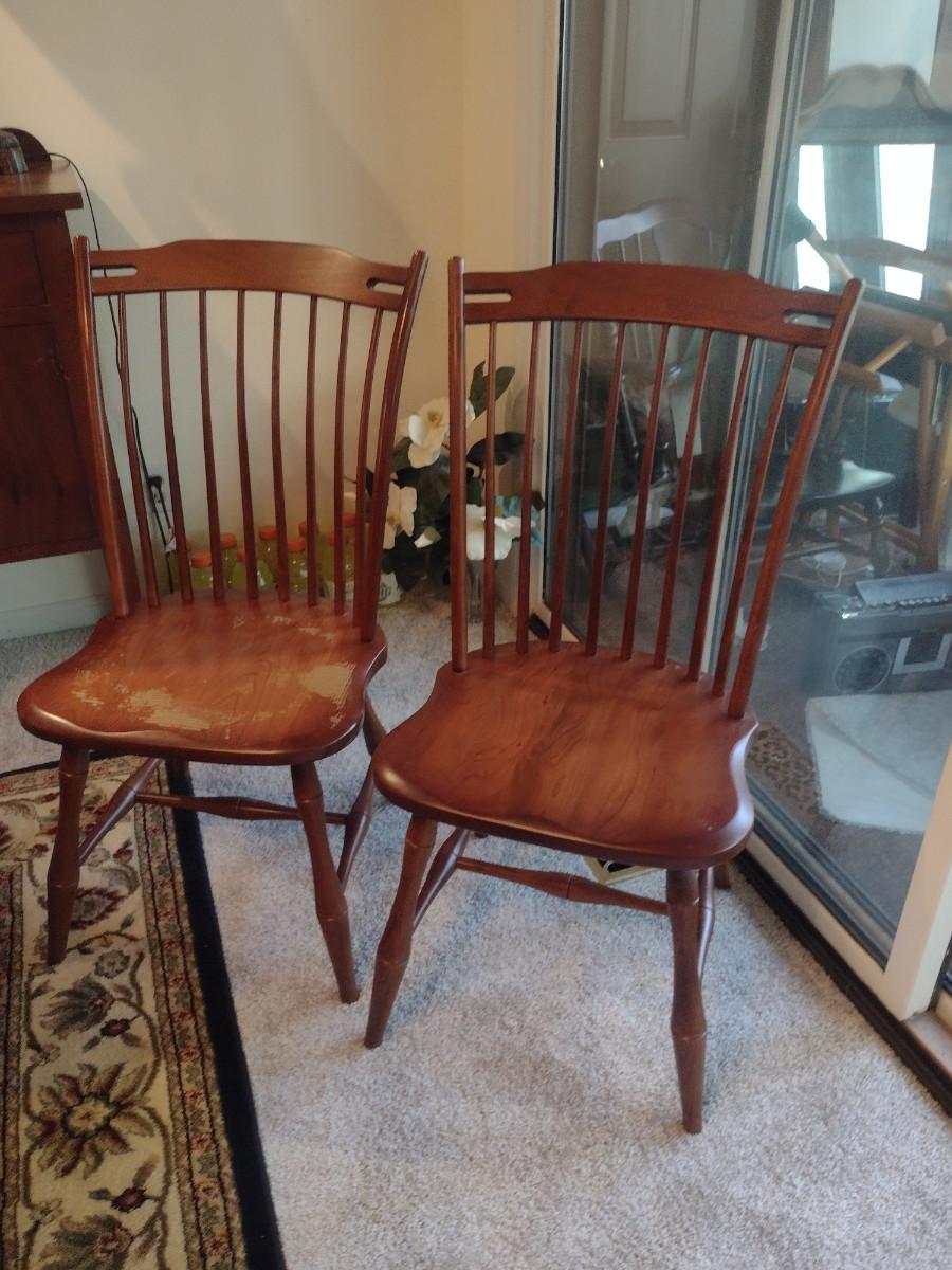 Pair of Zimmerman Thumbback Chairs. One has residue from seat cushion- please see all pictures.