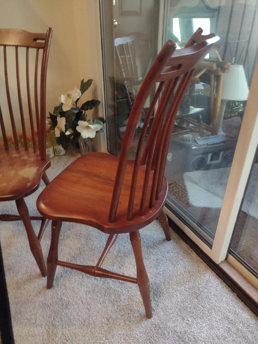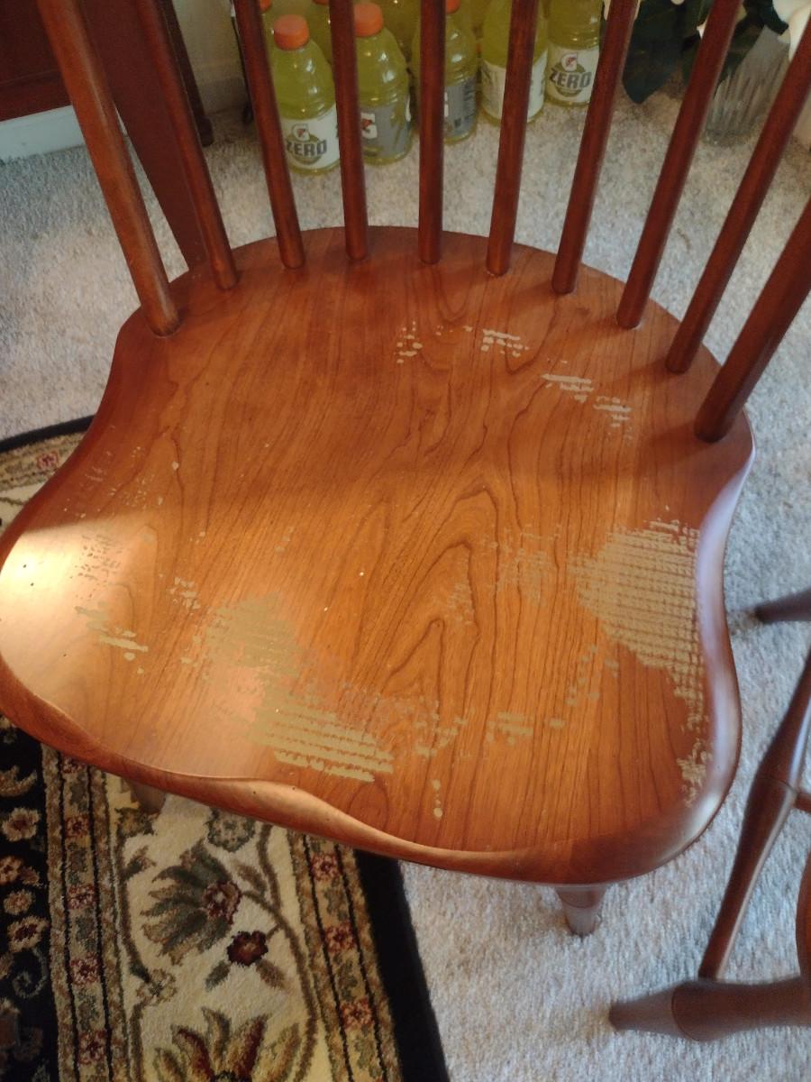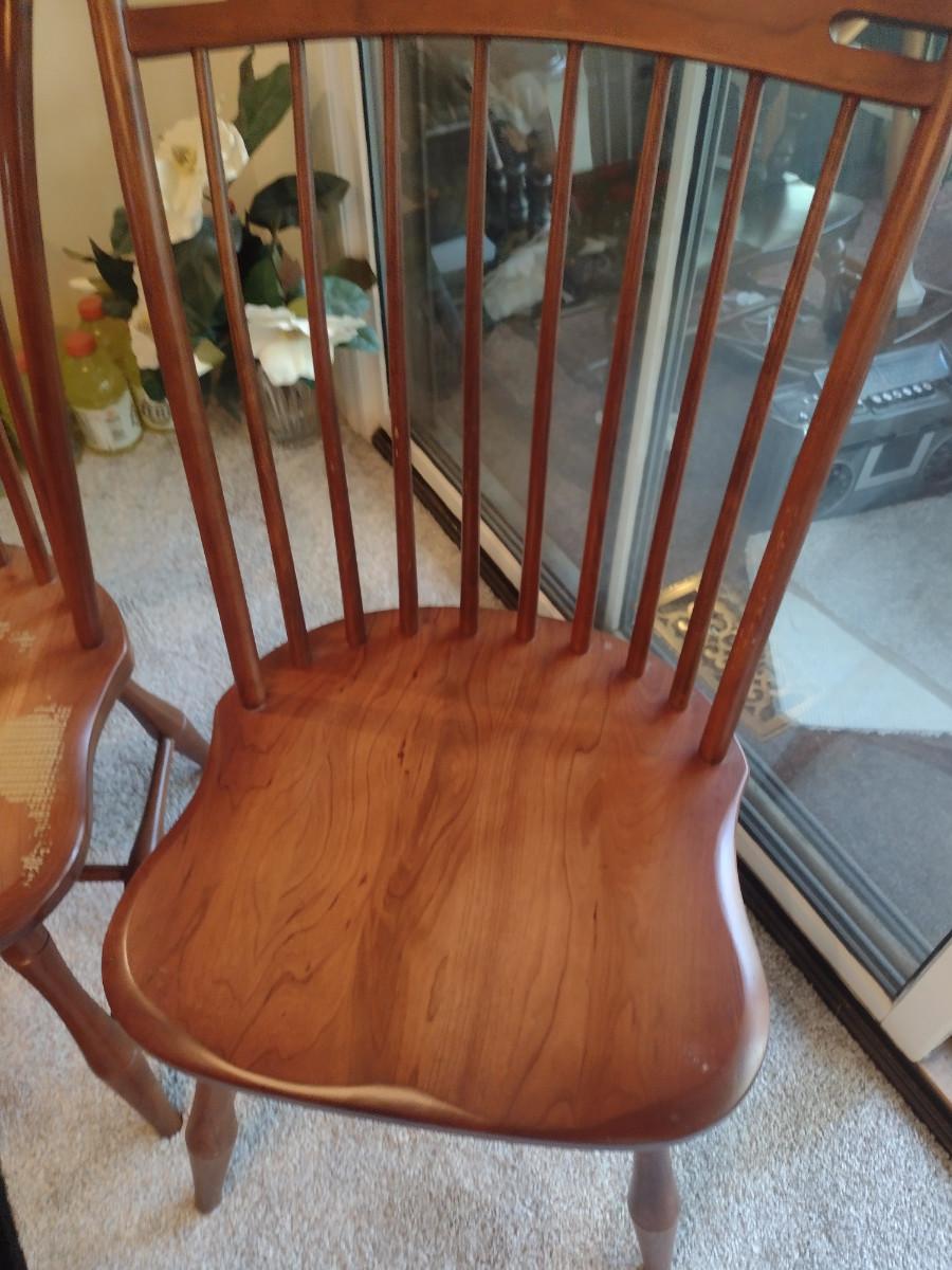 Pair of Zimmerman Thumbback Chairs. One has residue from seat cushion- please see all pictures.