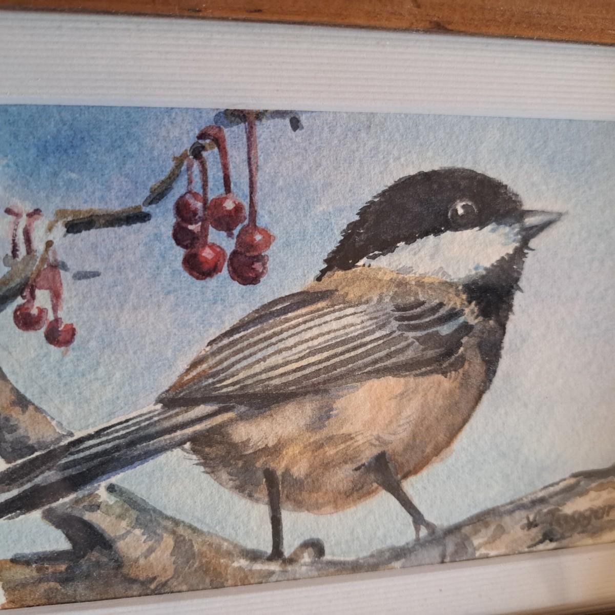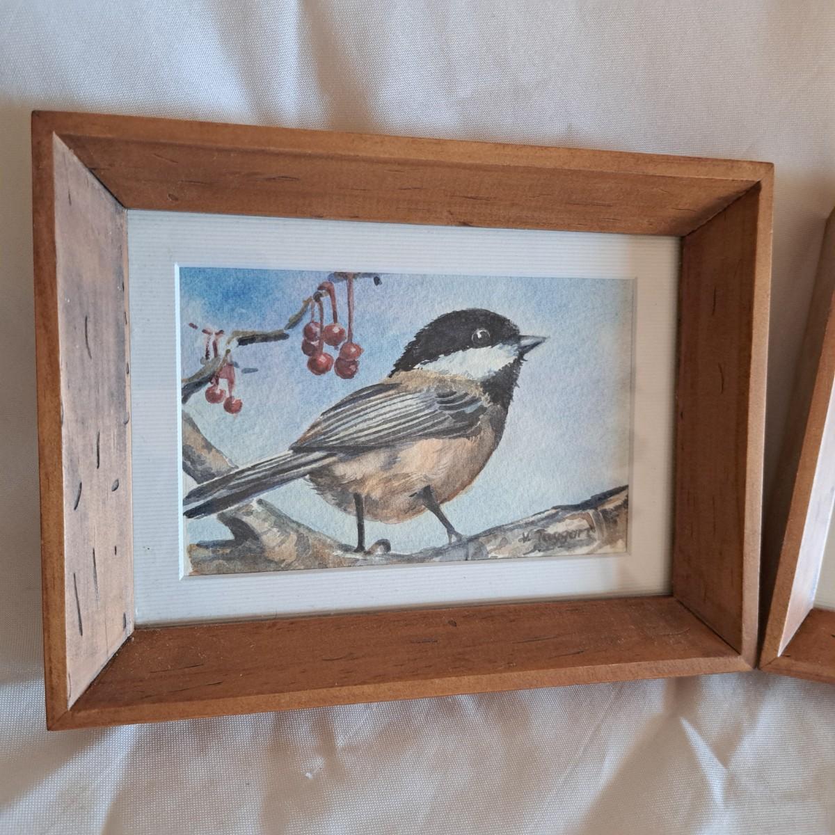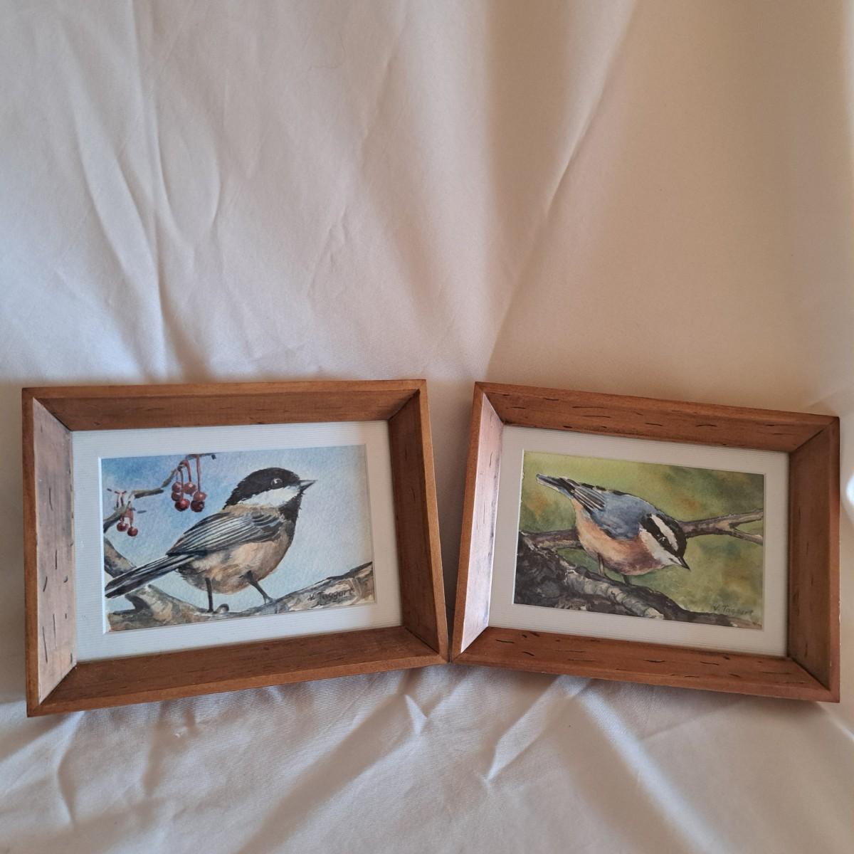Pair Original Valerie Taggart Watercolors - Chickadee & Nuthatch (UL-SD)