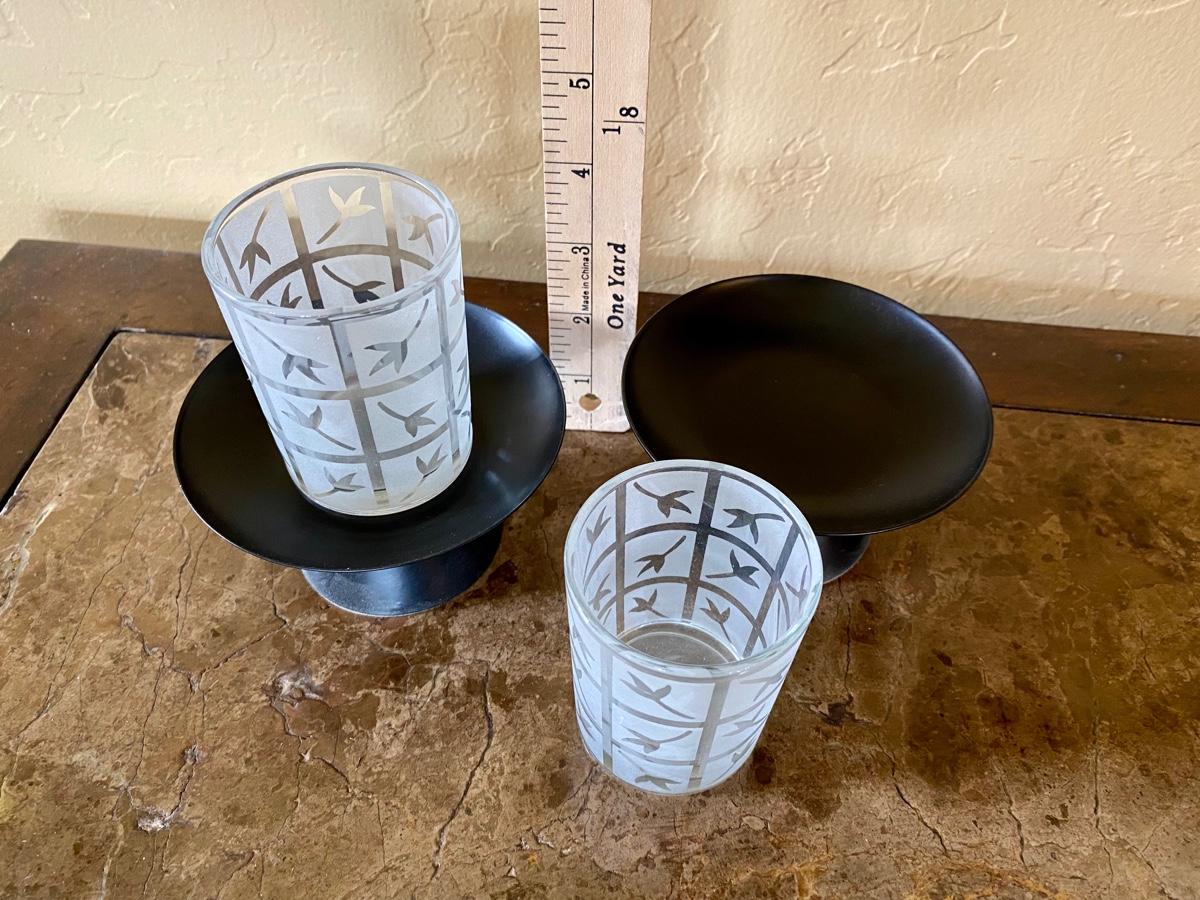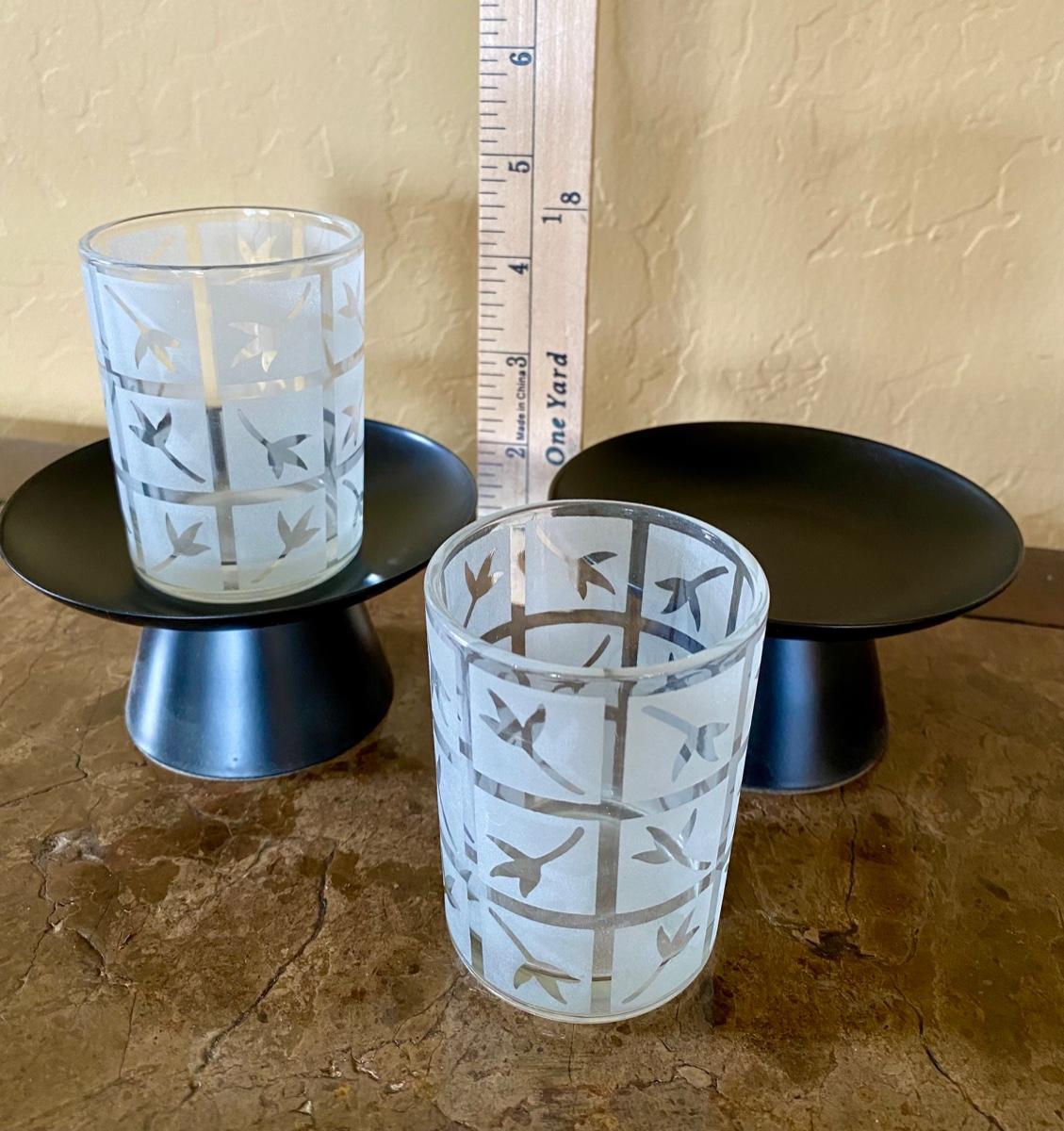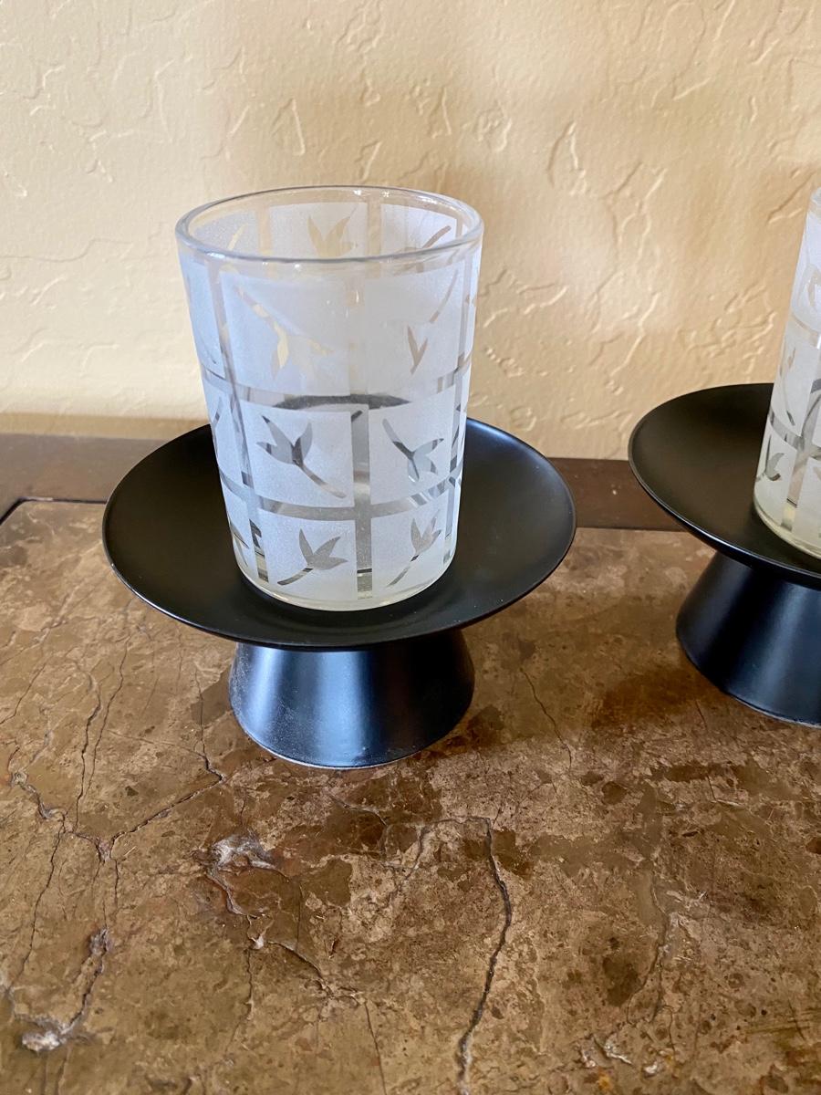 Pair Party Lite Glass Votive Holders and Stands