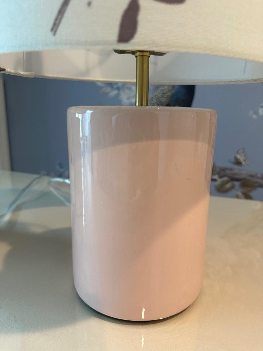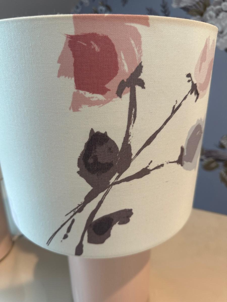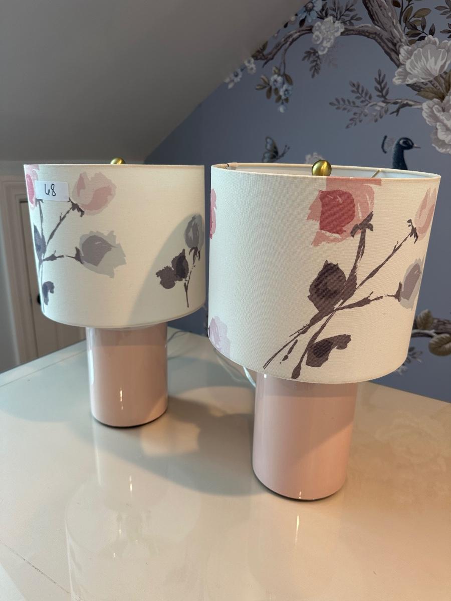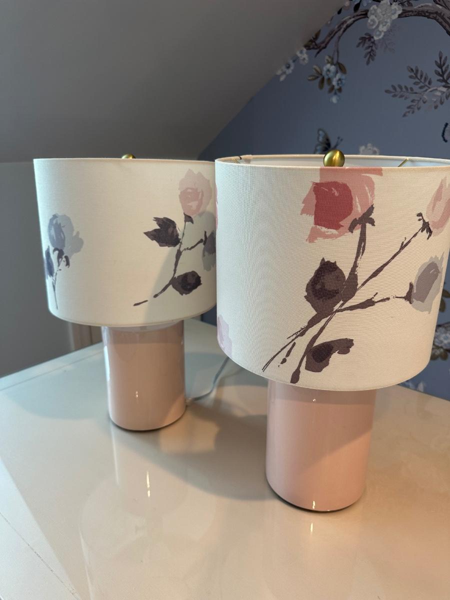 PAIR PINK LAMPS WITH FLORAL SHADES 14"