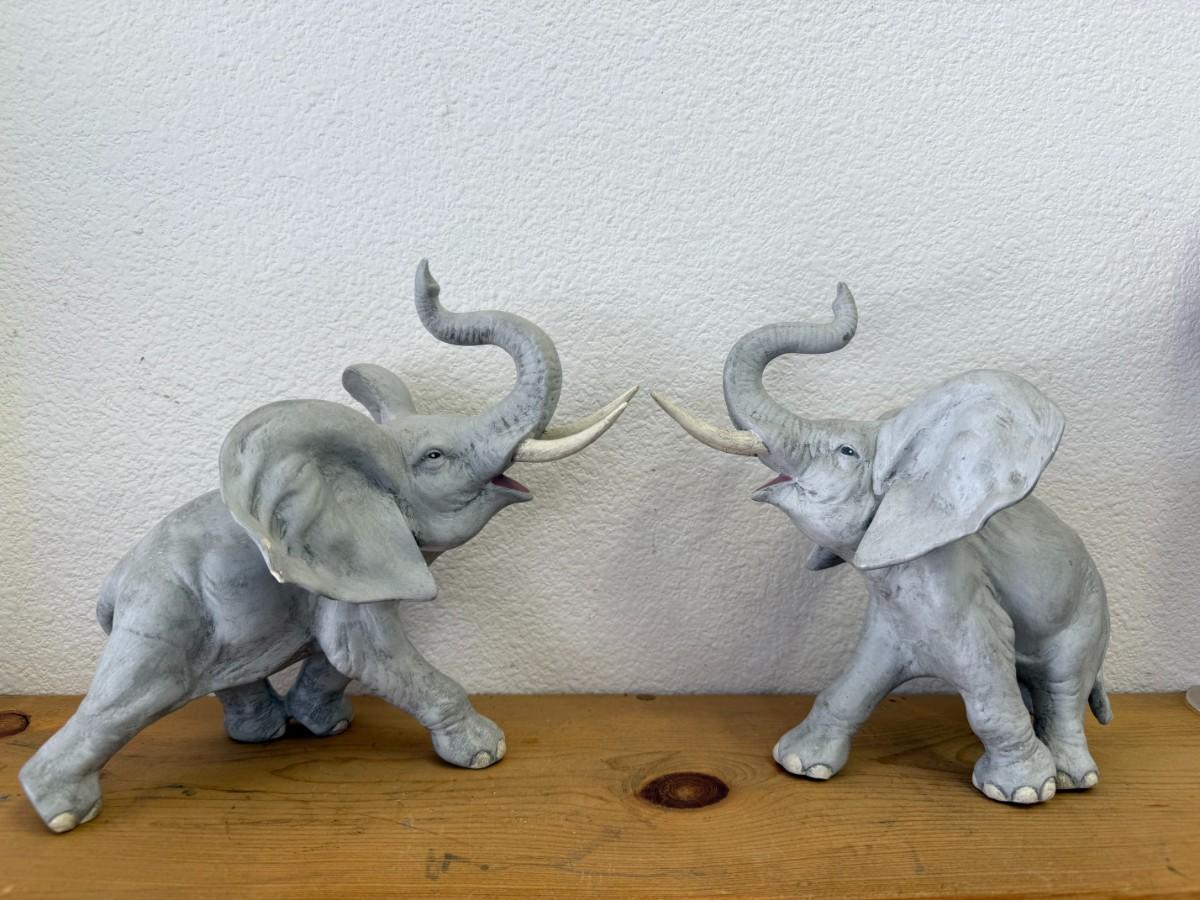 This charming pair of porcelain elephants adds an exotic touch to your decor, perfect for animal lovers and collectors alike.