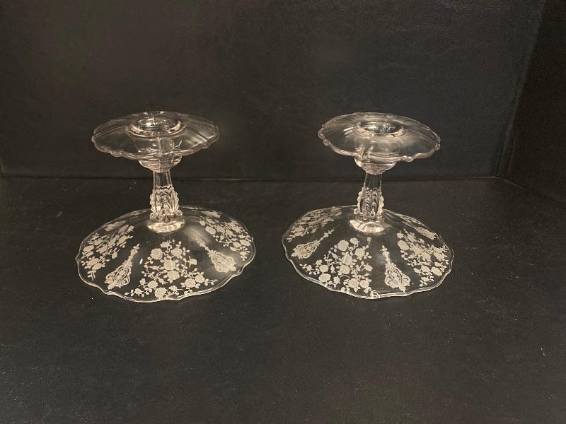 Pair Rosepoint Combo Candlestick & Comport Dish
