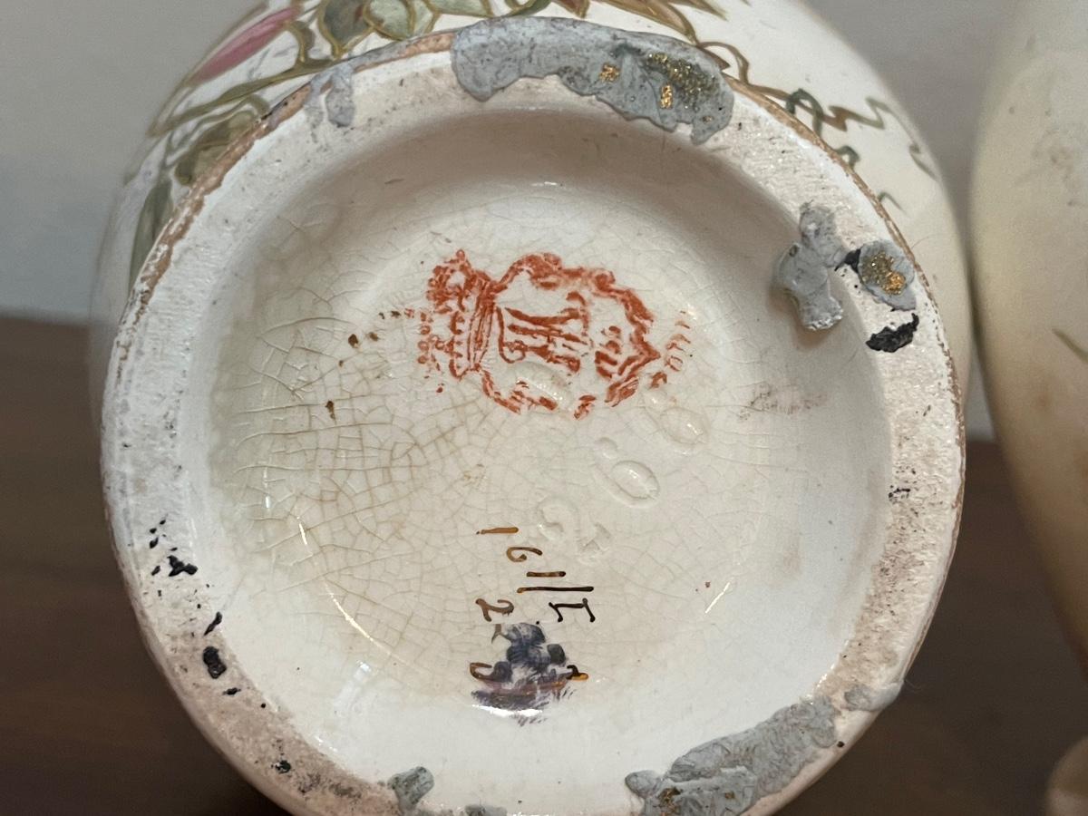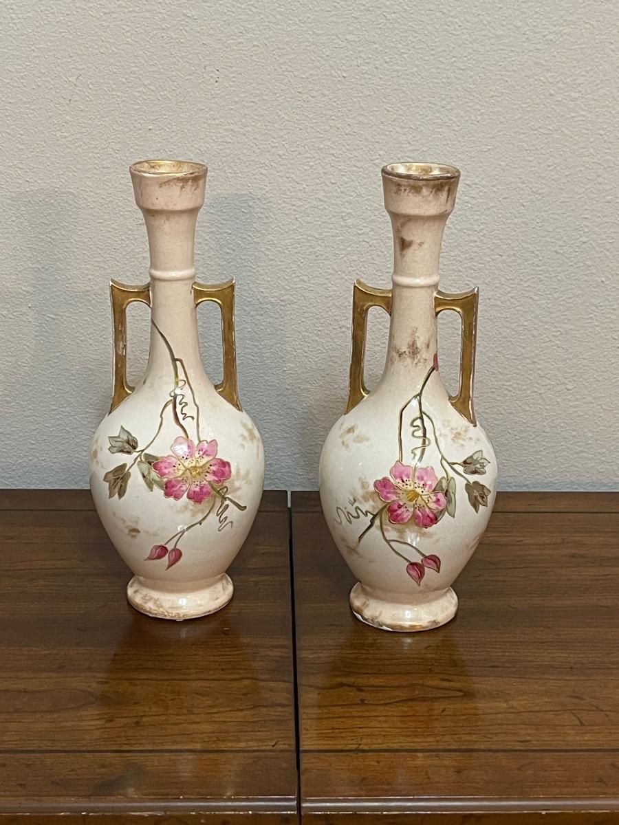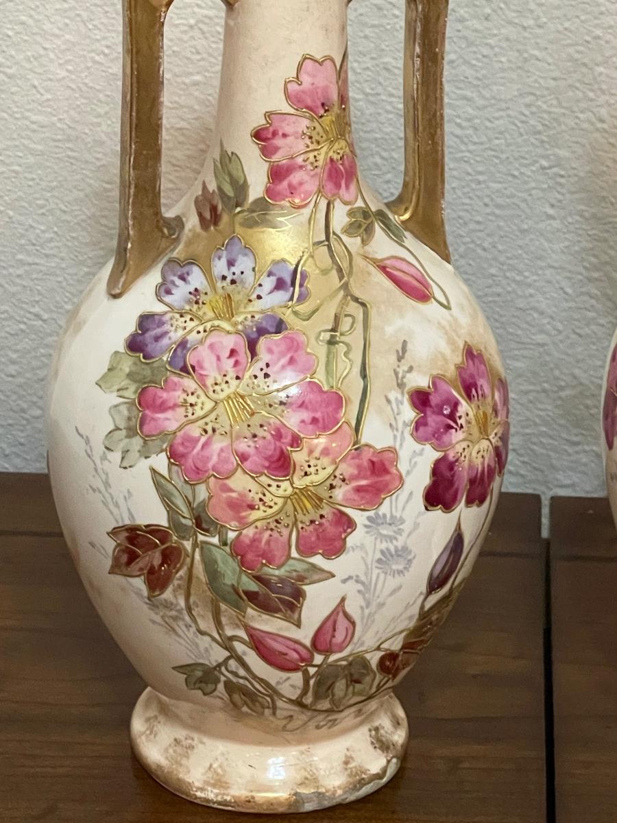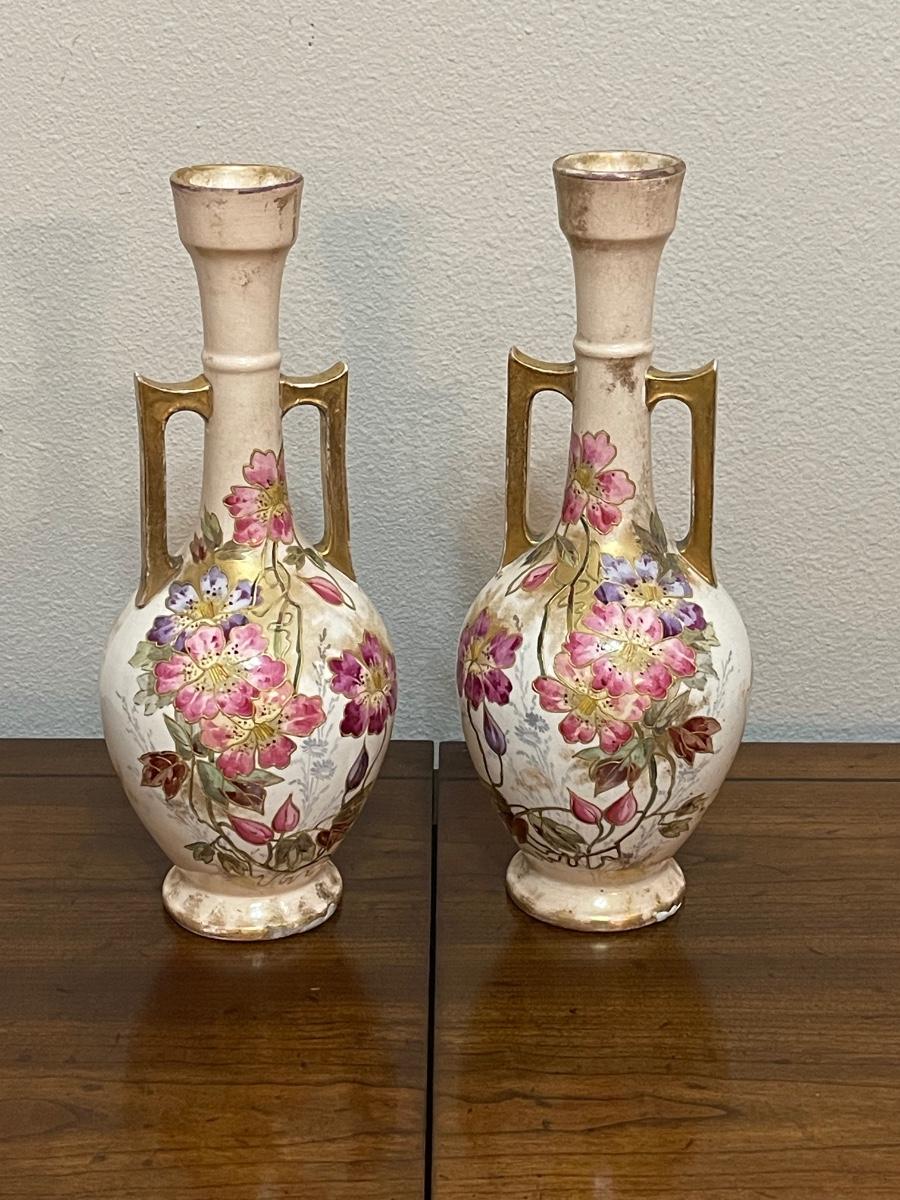 Pair ~ ROYAL BONN ~ Vtg Hand Painted Pink & Lavender Floral Vases