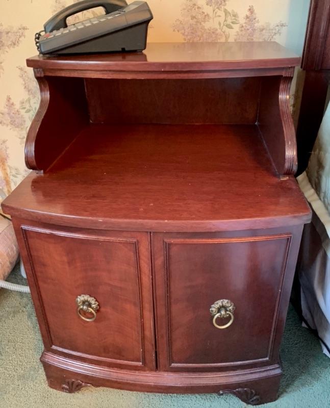 Pair - Set of 2 Mahogany Cherry Wood End Tables / Brass Hardware: