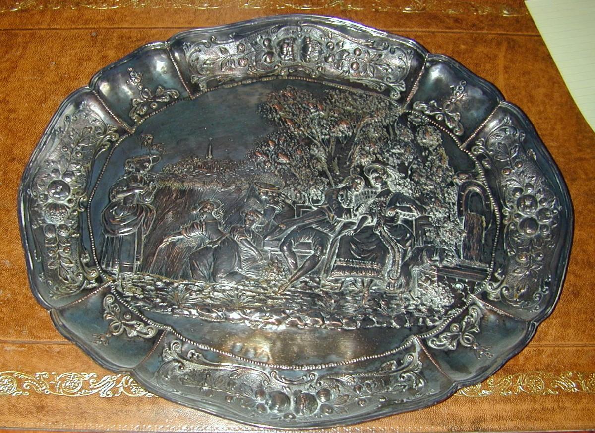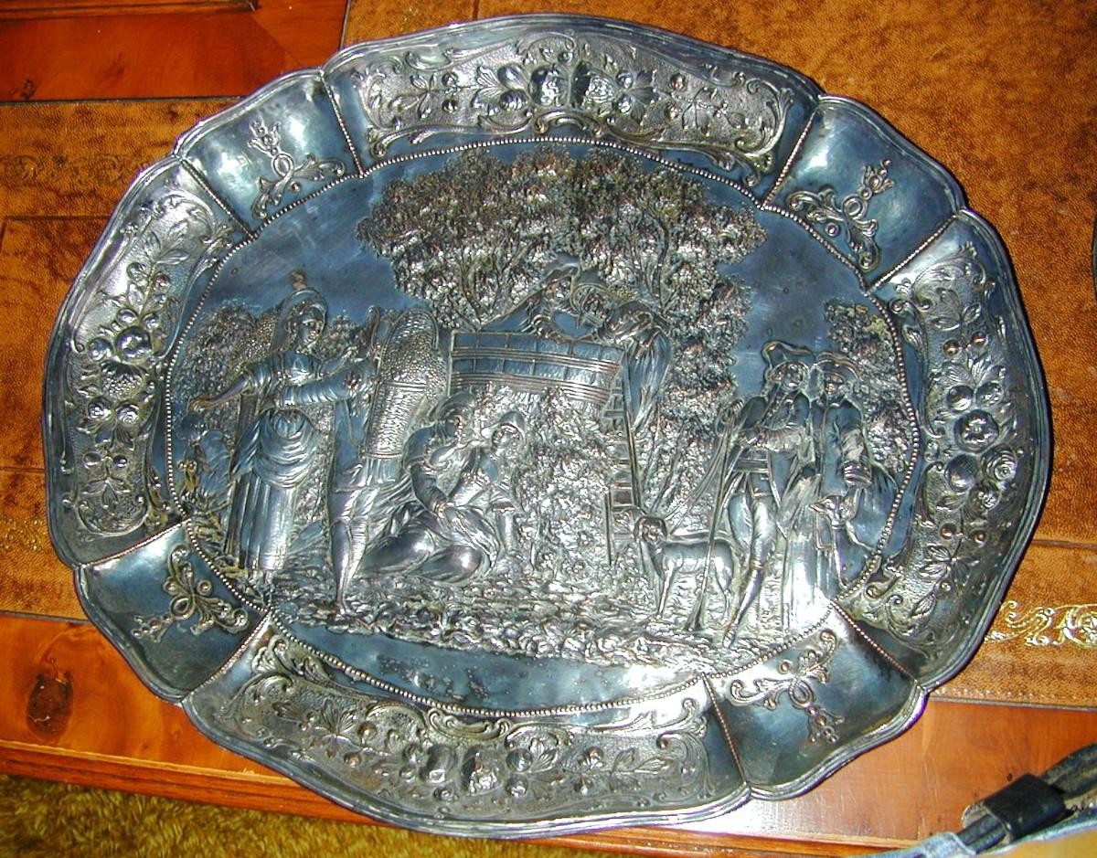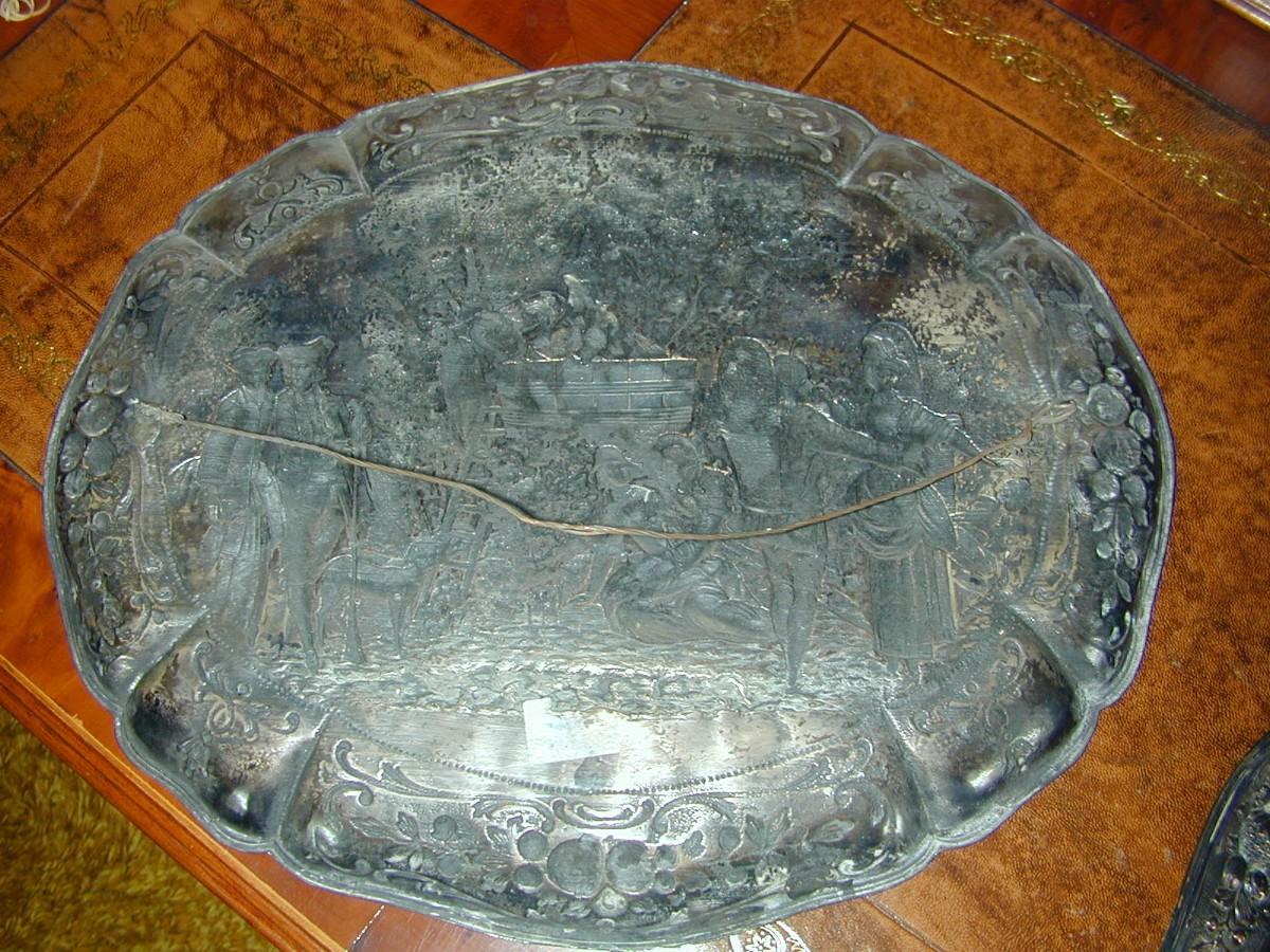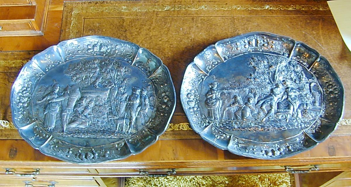 Pair Silver On Copper Scenic Relief Wall Plaques - some wear on the silver