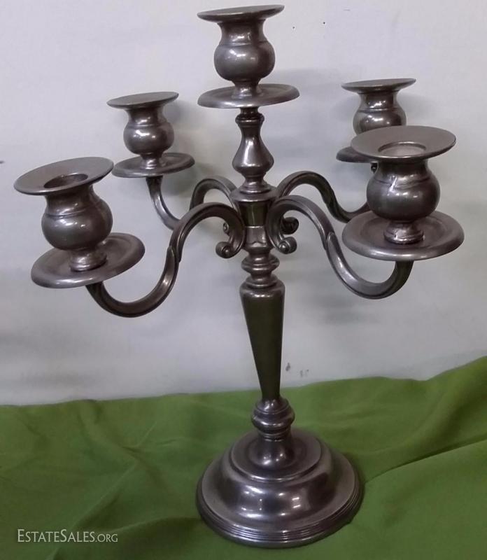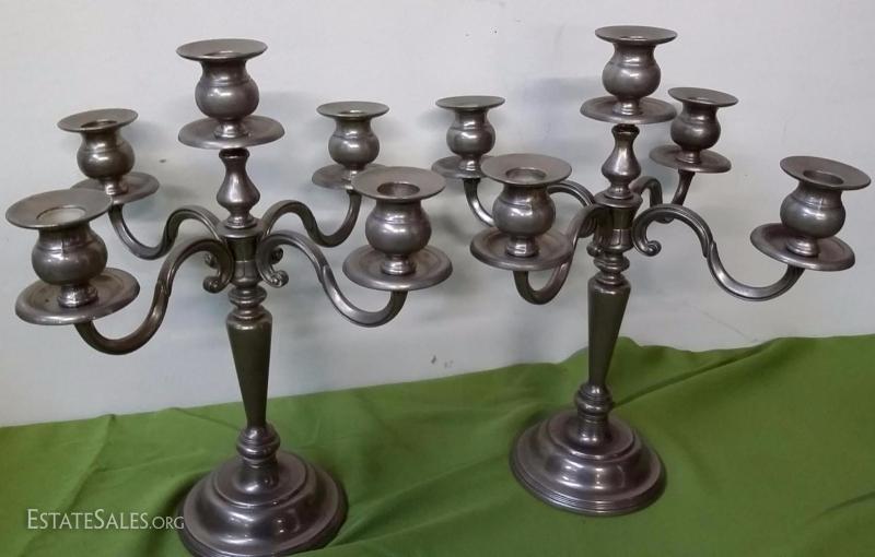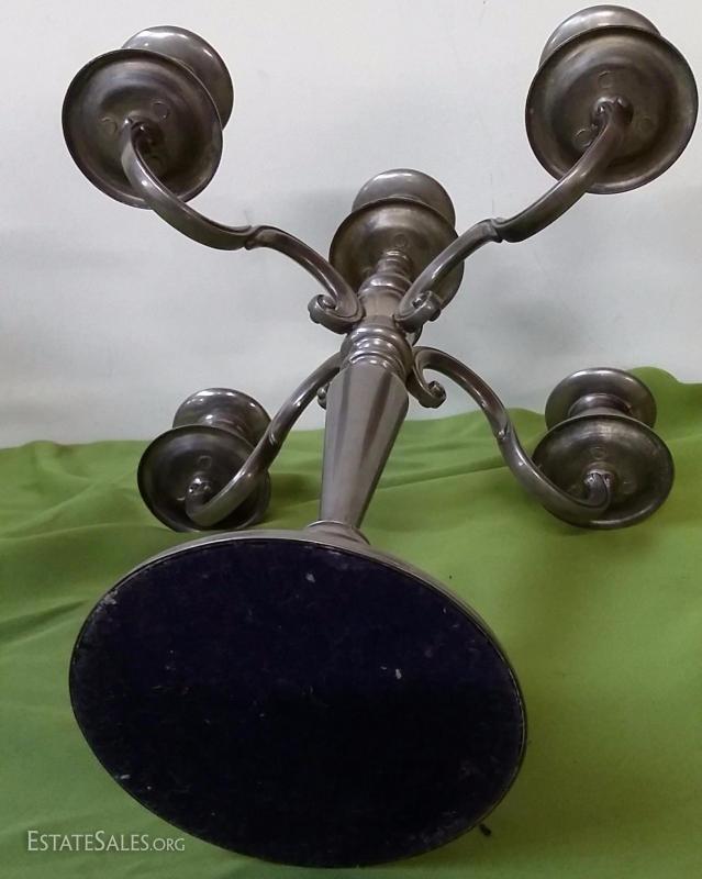 Heavy Silverplate pair candleholders/candelabra, 12" diameter, 15.25" high