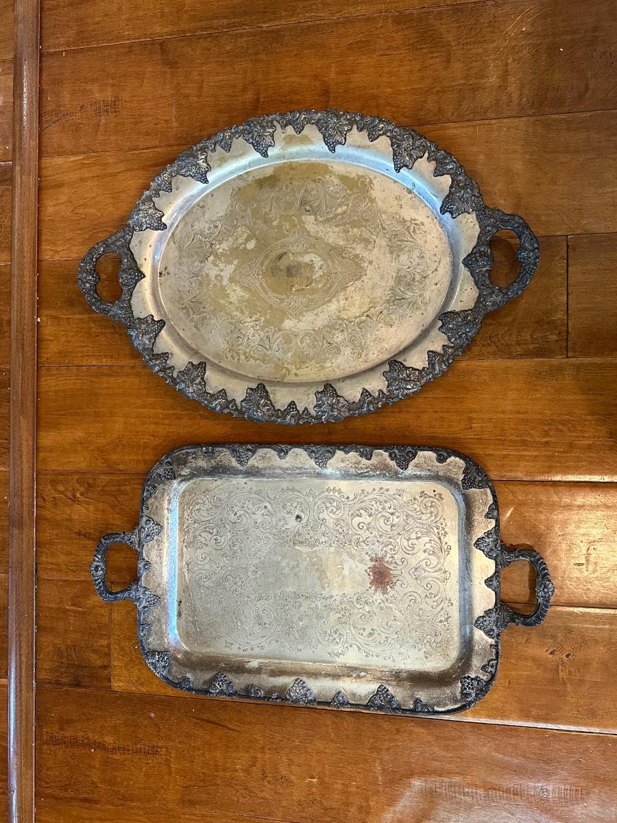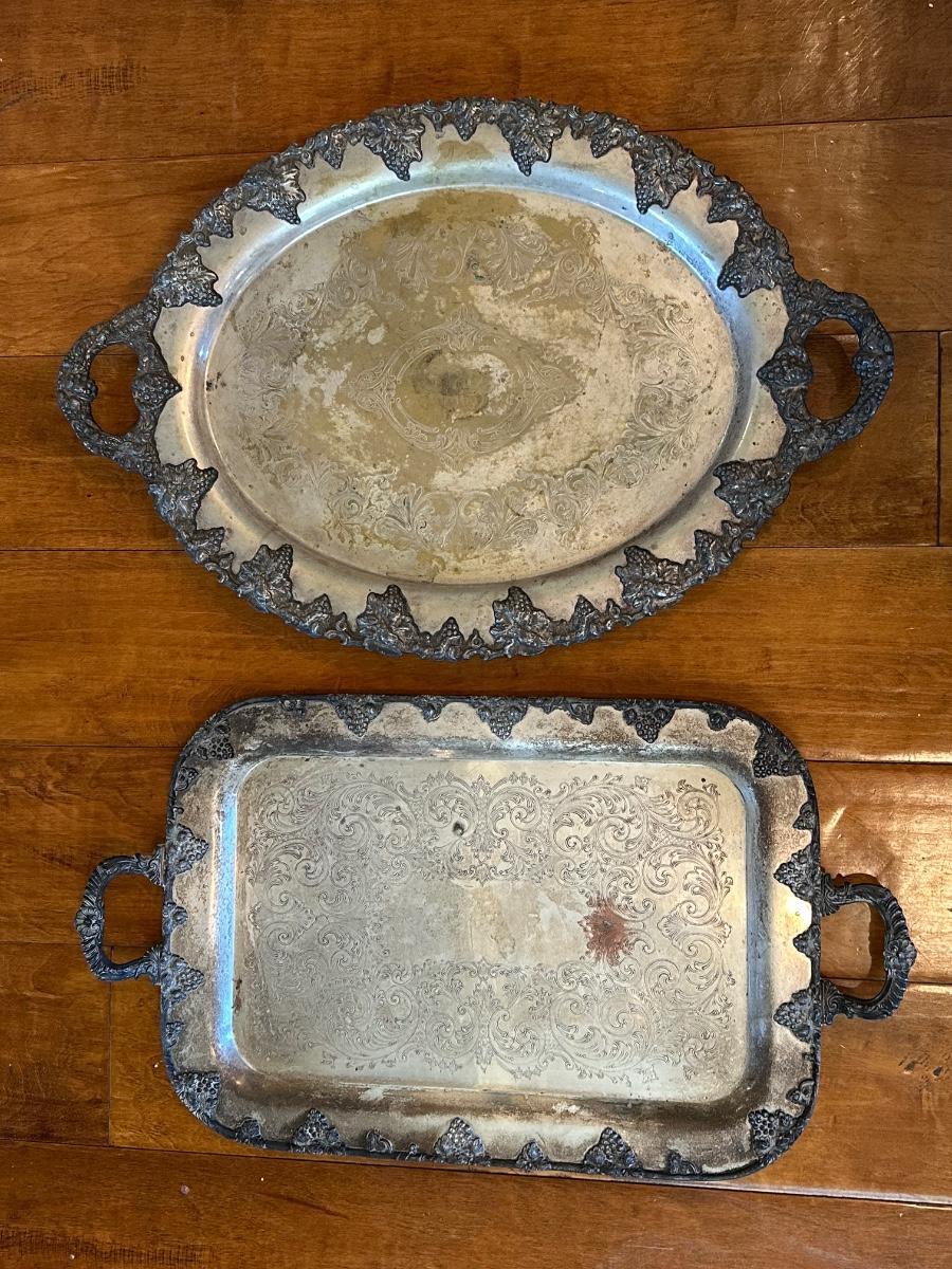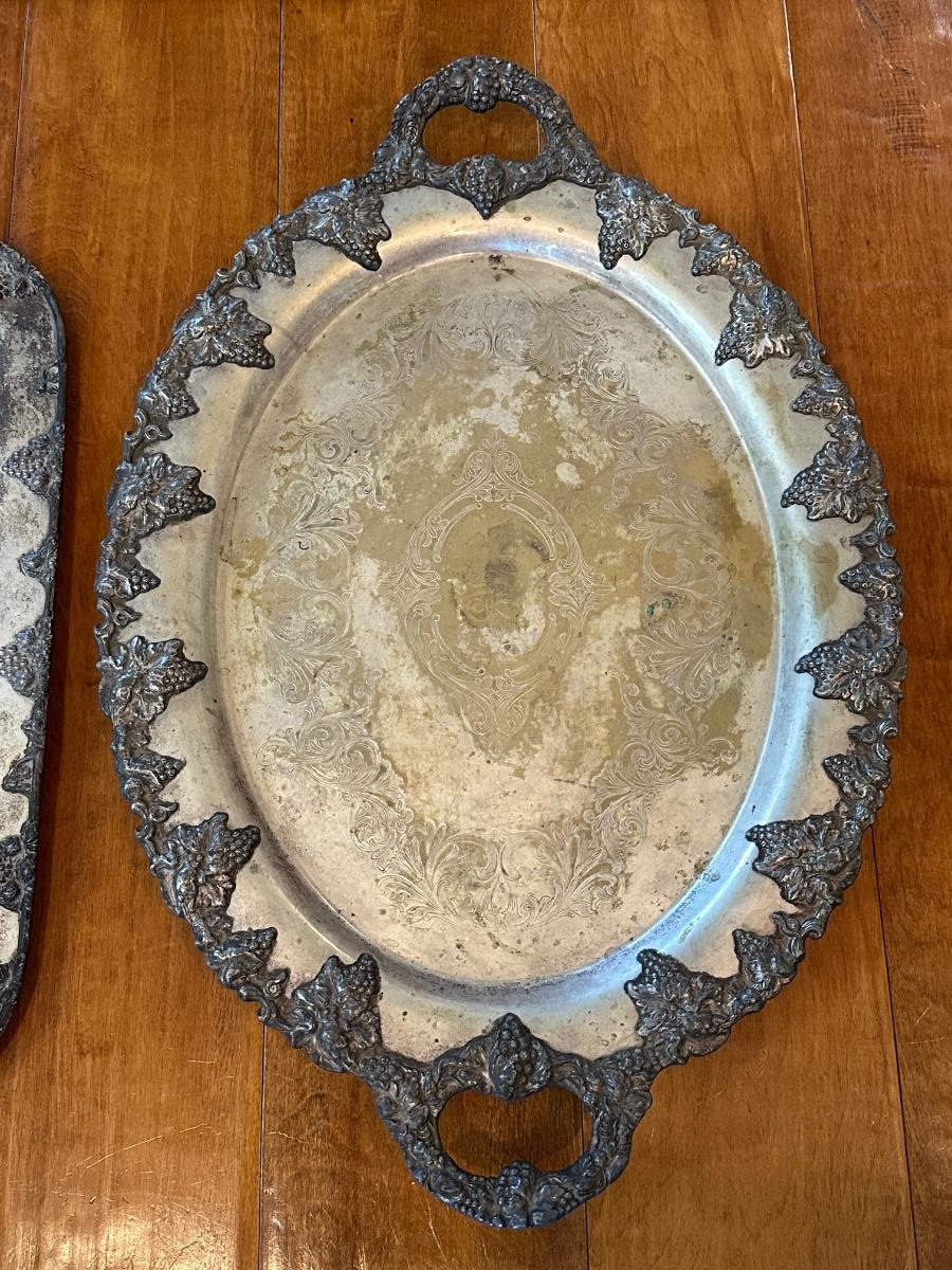 Pair Silverplate Serving Trays – Grape & Leaf Detail